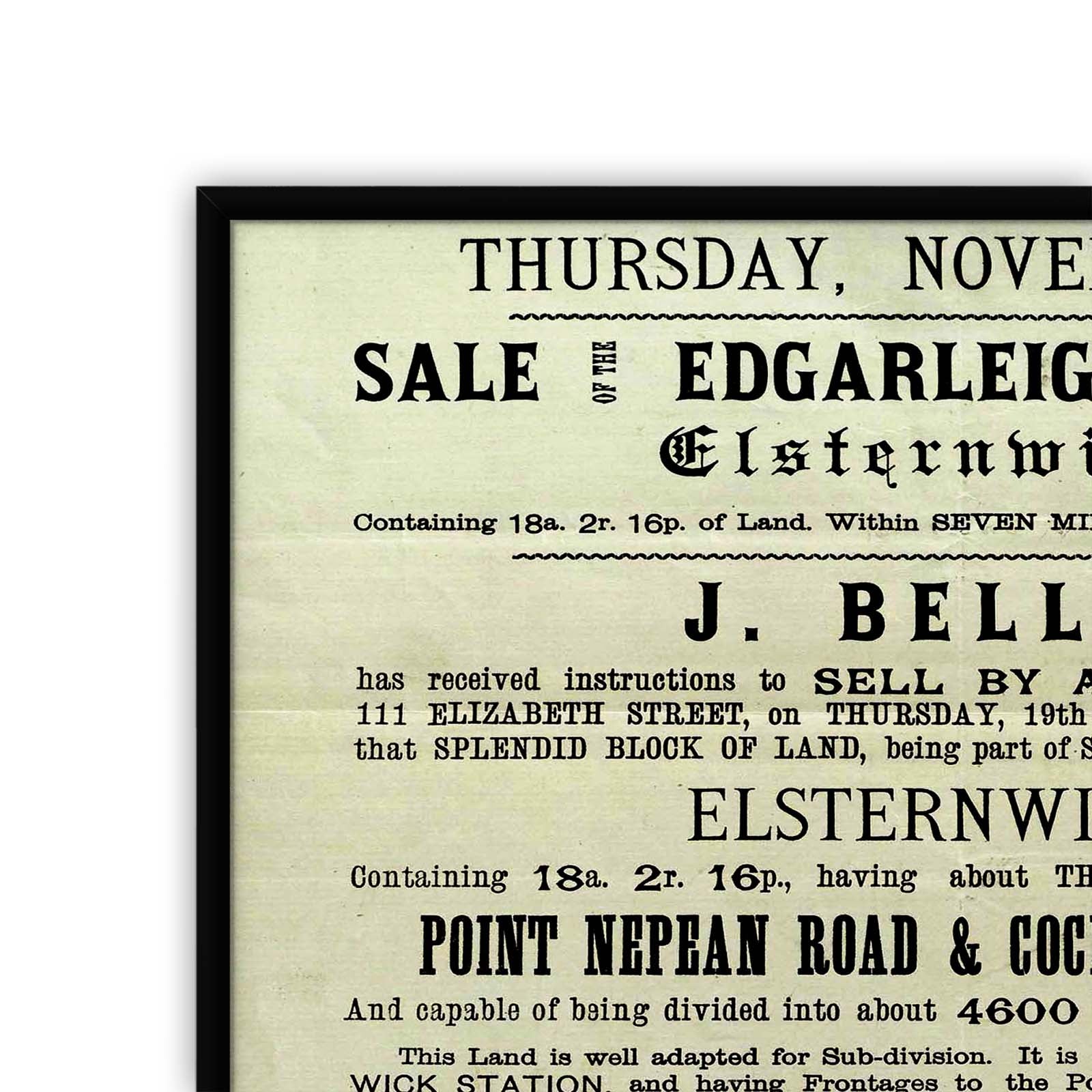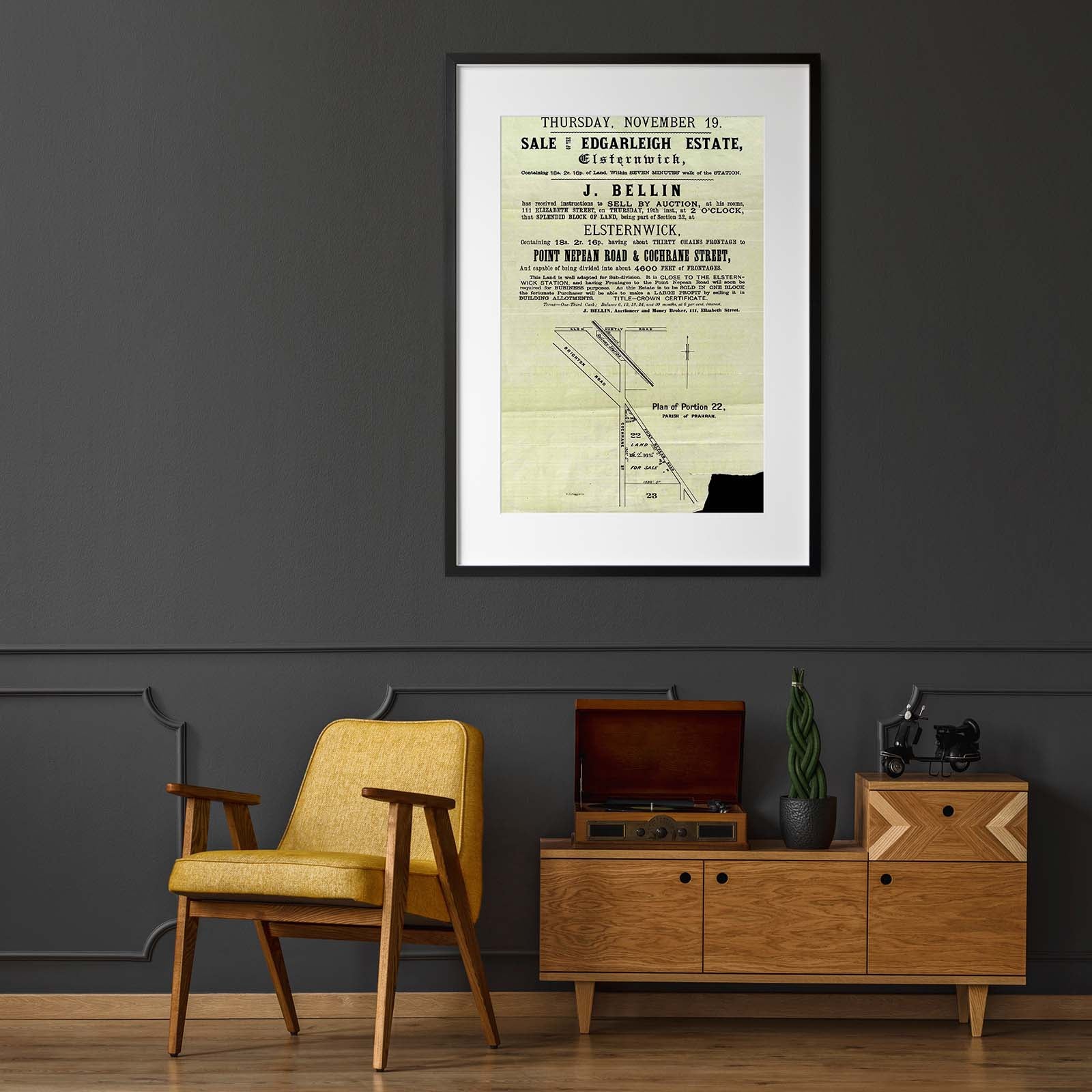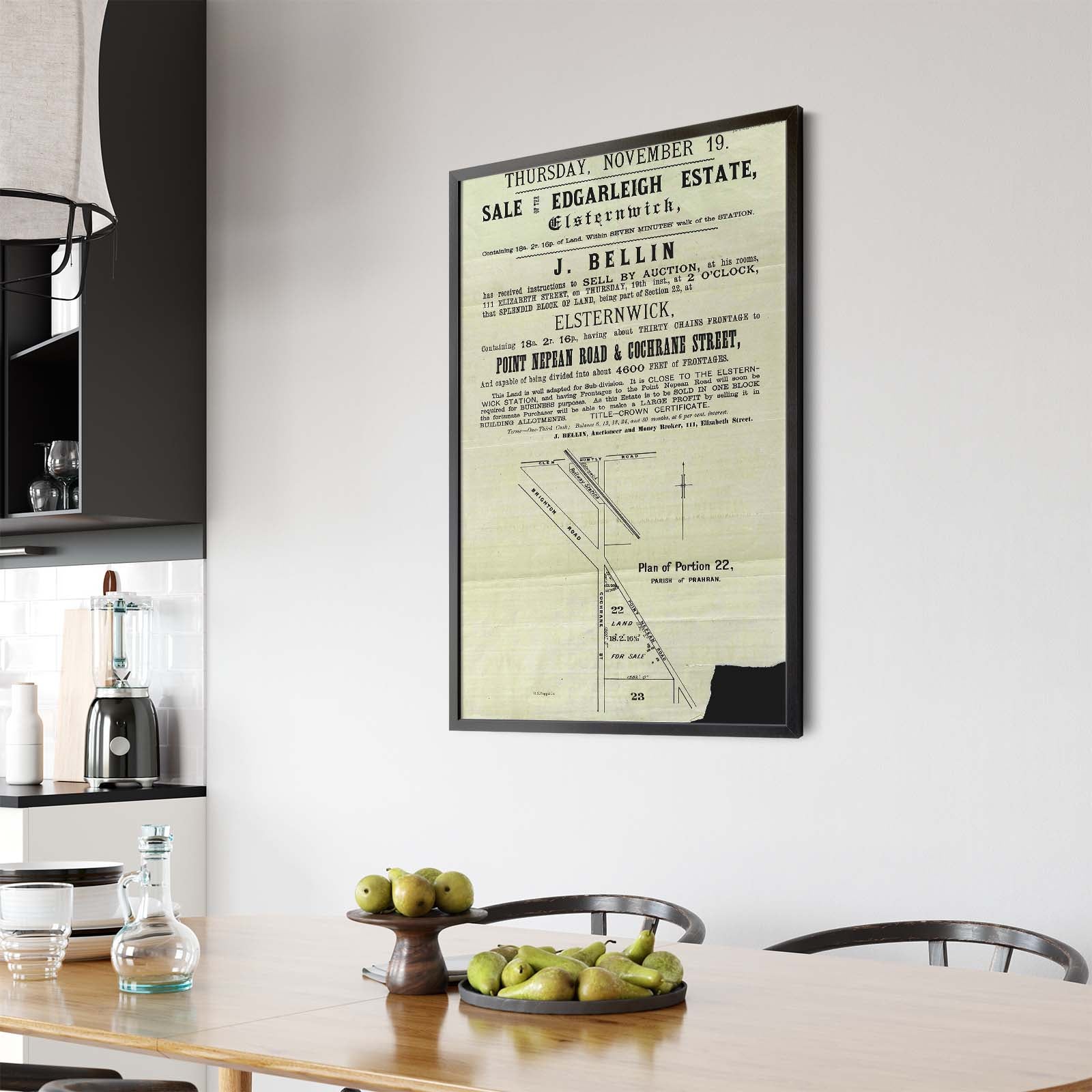 Recently moving to Harcourt and being interested in the history of the area, it seemed fitting to purchase a vintage map of the area which is displayed on our kitchen wall for us to study easily, identifying the block of land we bought. Nicely framed too.