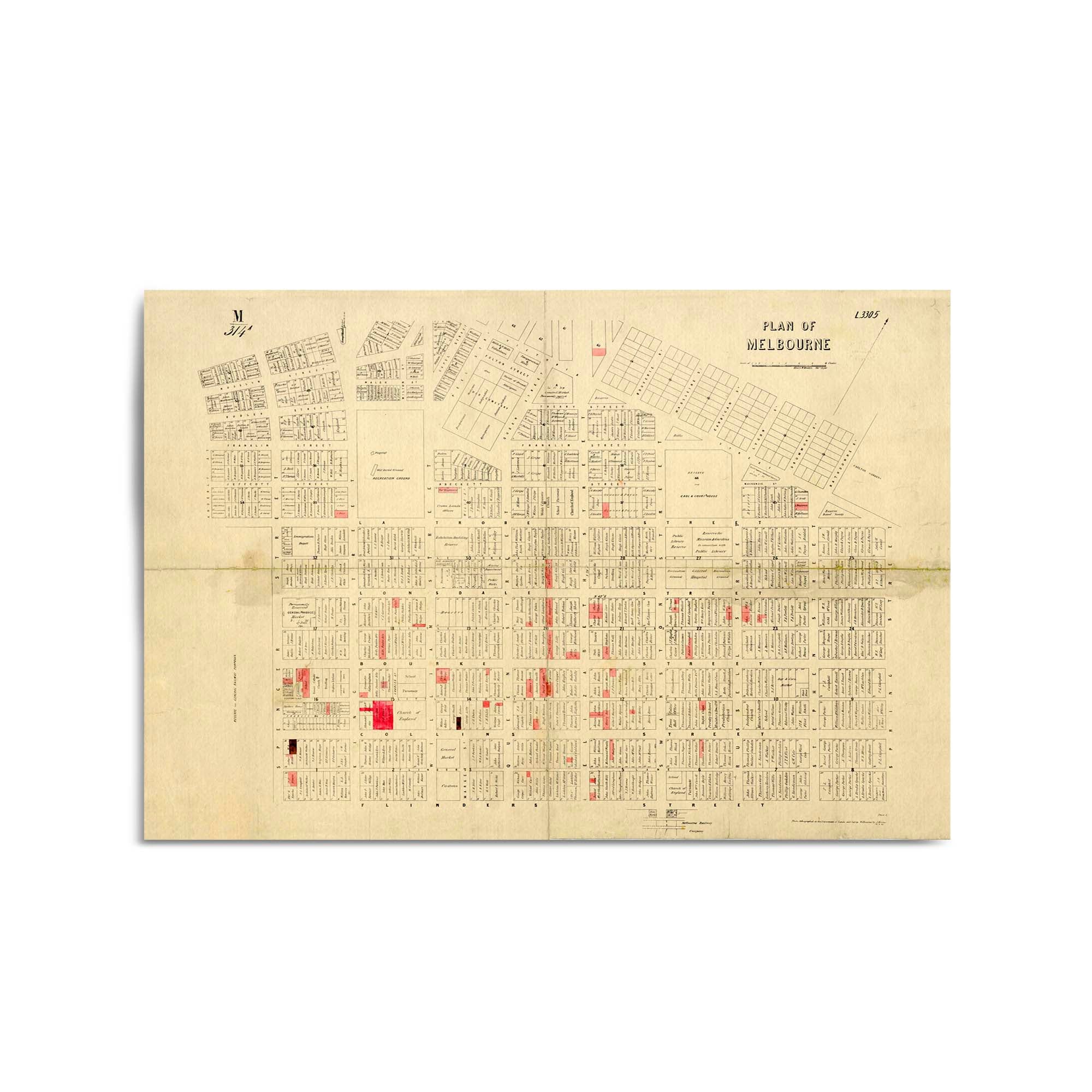 Plan of Melbourne. Henry W. Meakin, Dec. 22 1865. Photo-lithographed at the Department of Lands and Survey, Melbourne by J. Noone.