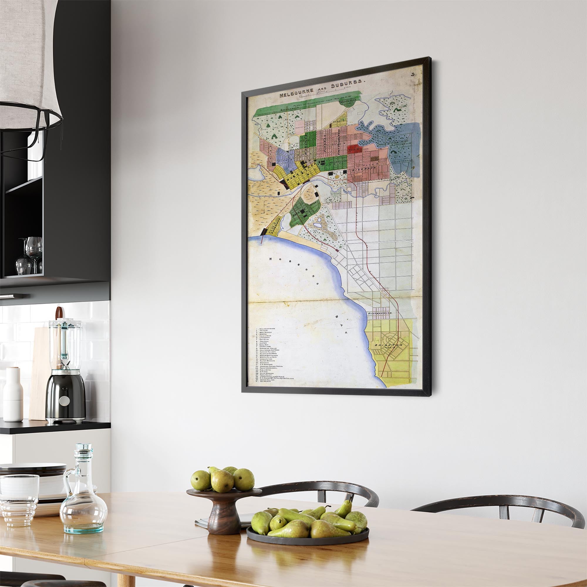Recently moving to Harcourt and being interested in the history of the area, it seemed fitting to purchase a vintage map of the area which is displayed on our kitchen wall for us to study easily, identifying the block of land we bought. Nicely framed too.