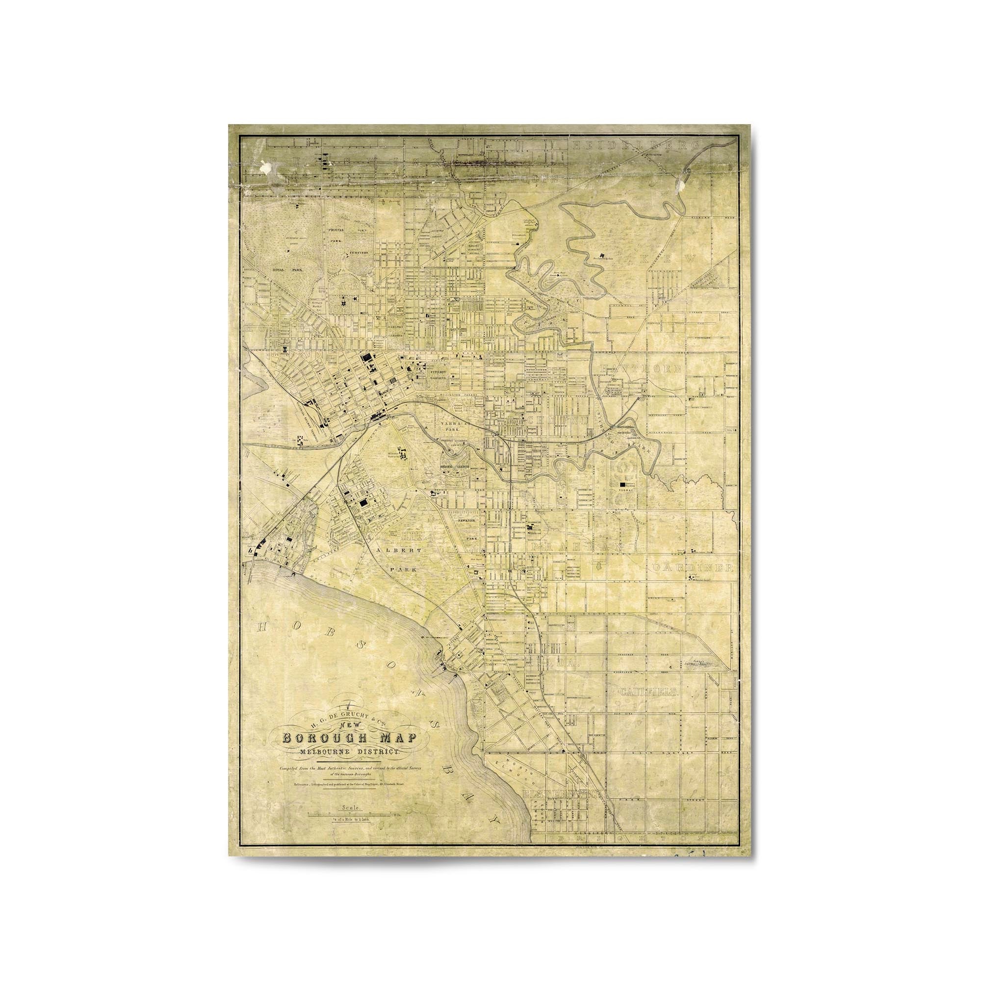 H.G. De Gruchy & Co.'s new borough map, Melbourne district: compiled from the most authentic sources, and revised by the official surveys of the various boroughs.
