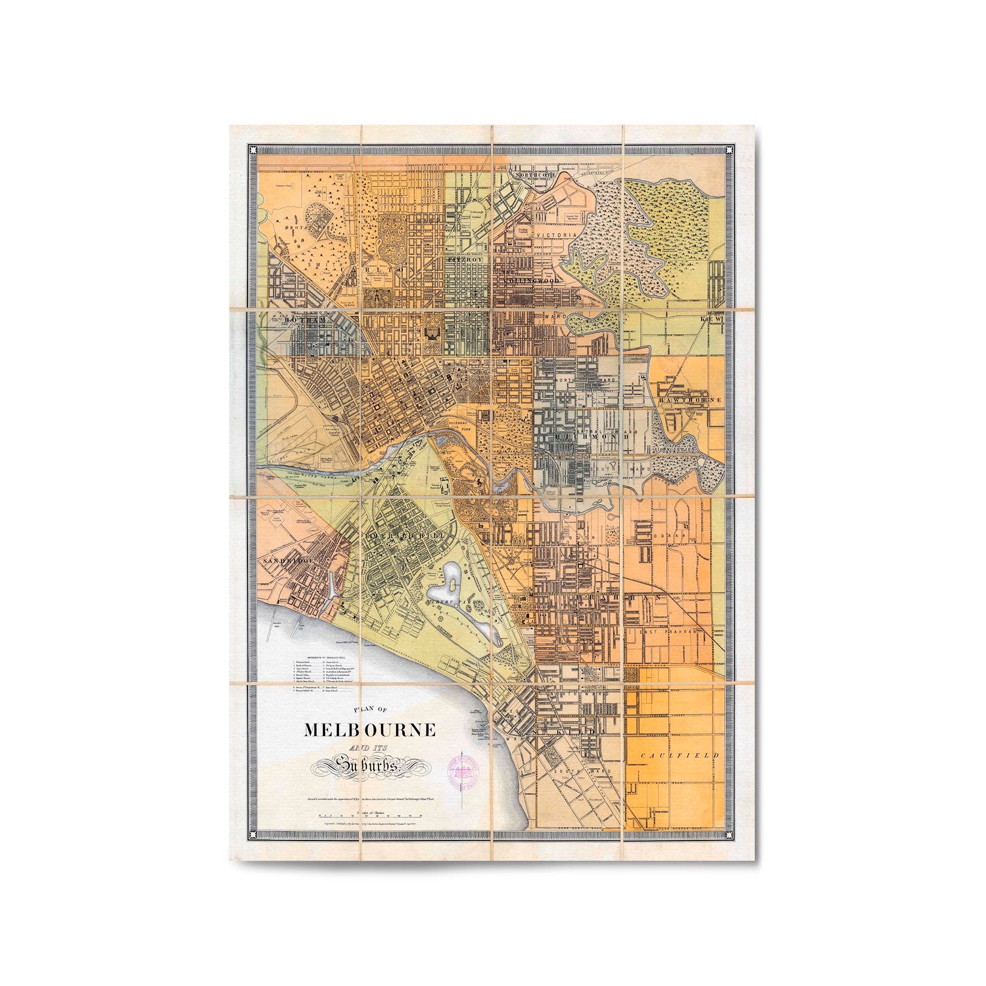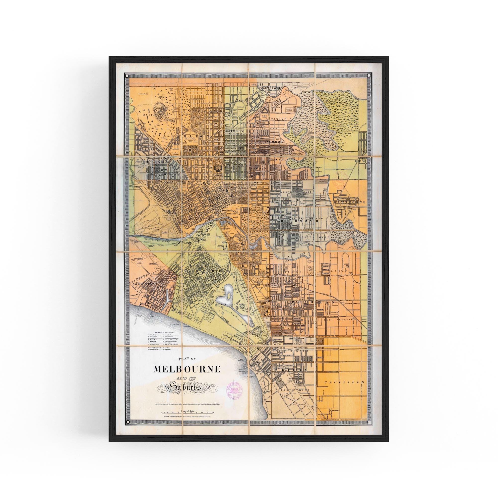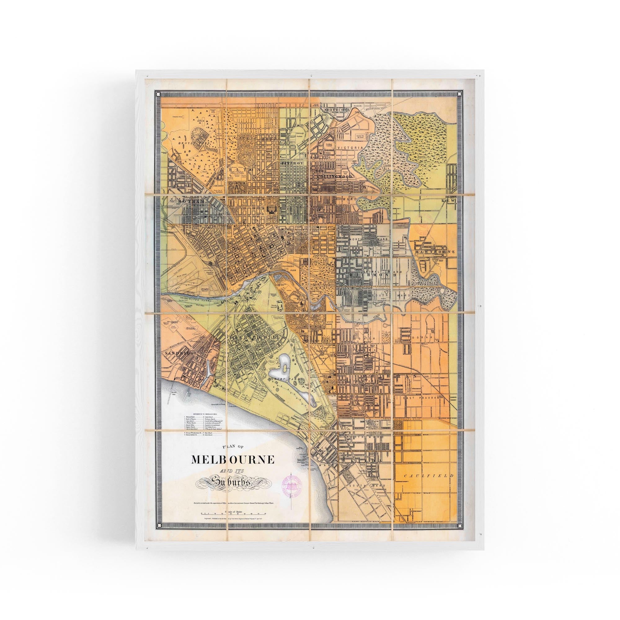1879 Map of Melbourne and Suburbs, Victoria Australia