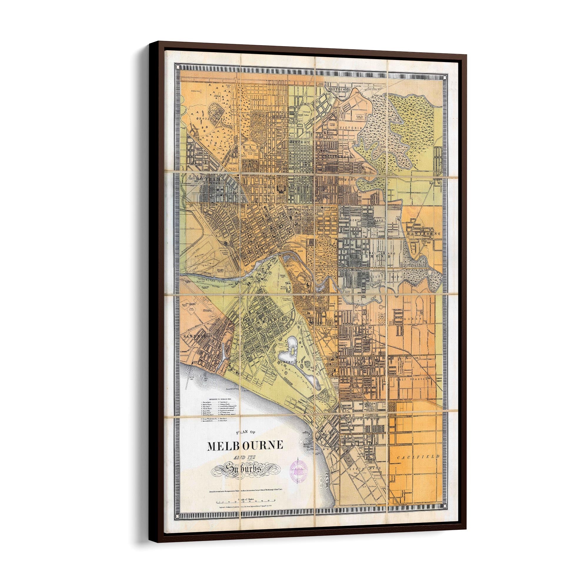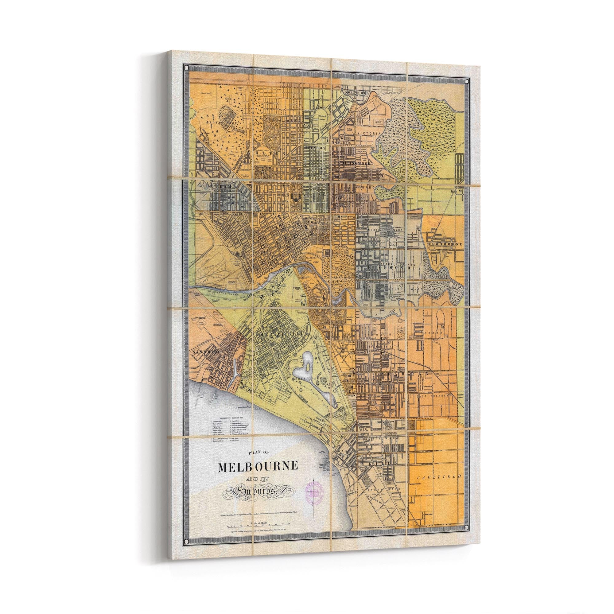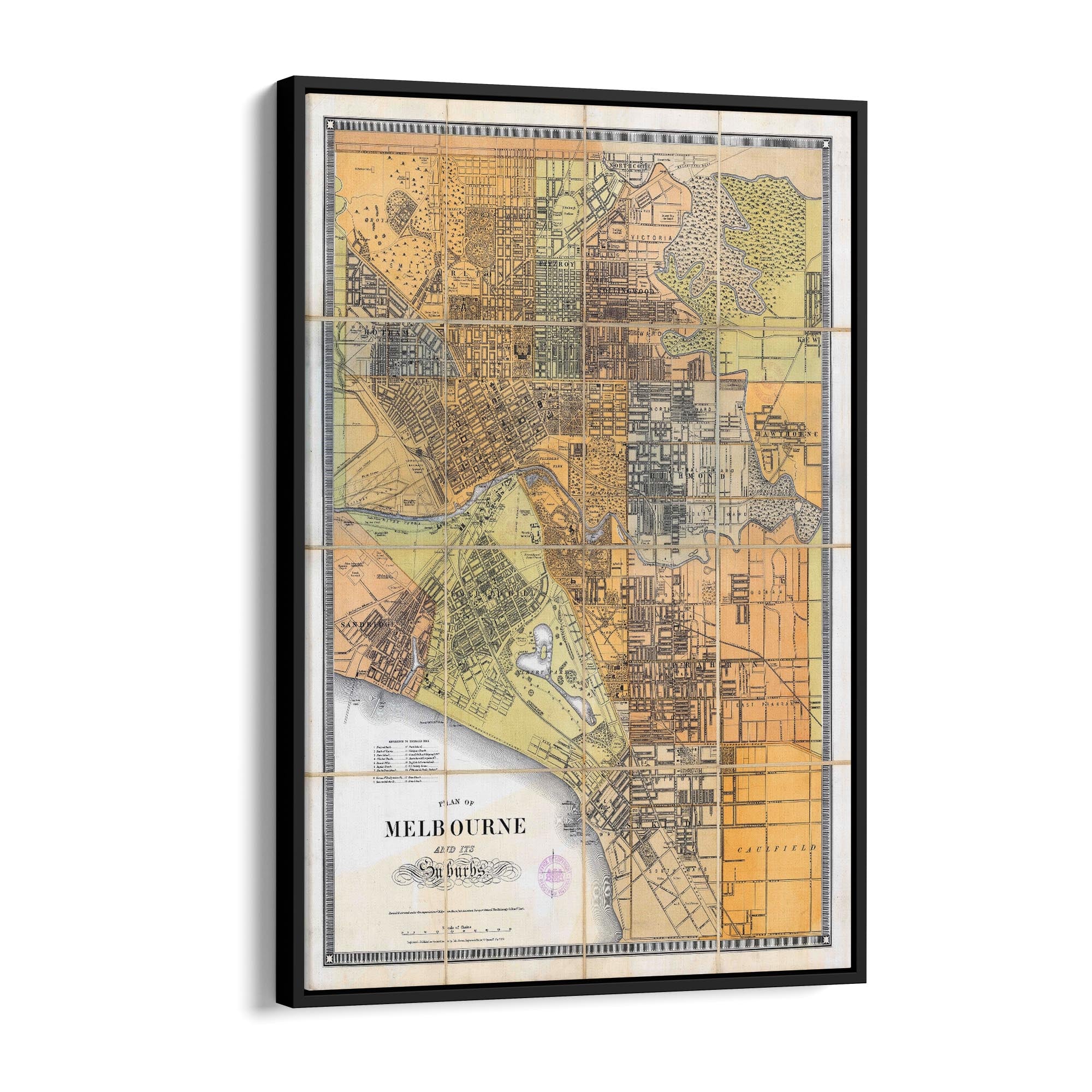 1879 Map of Melbourne and Suburbs, Victoria Australia