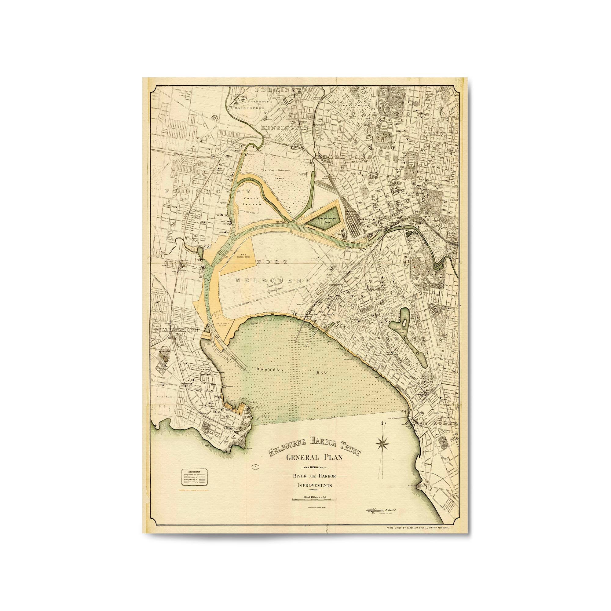 Melbourne Harbor Trust general plan showing river and harbor improvements. Photo lithographed by Sands & McDougall Limited.