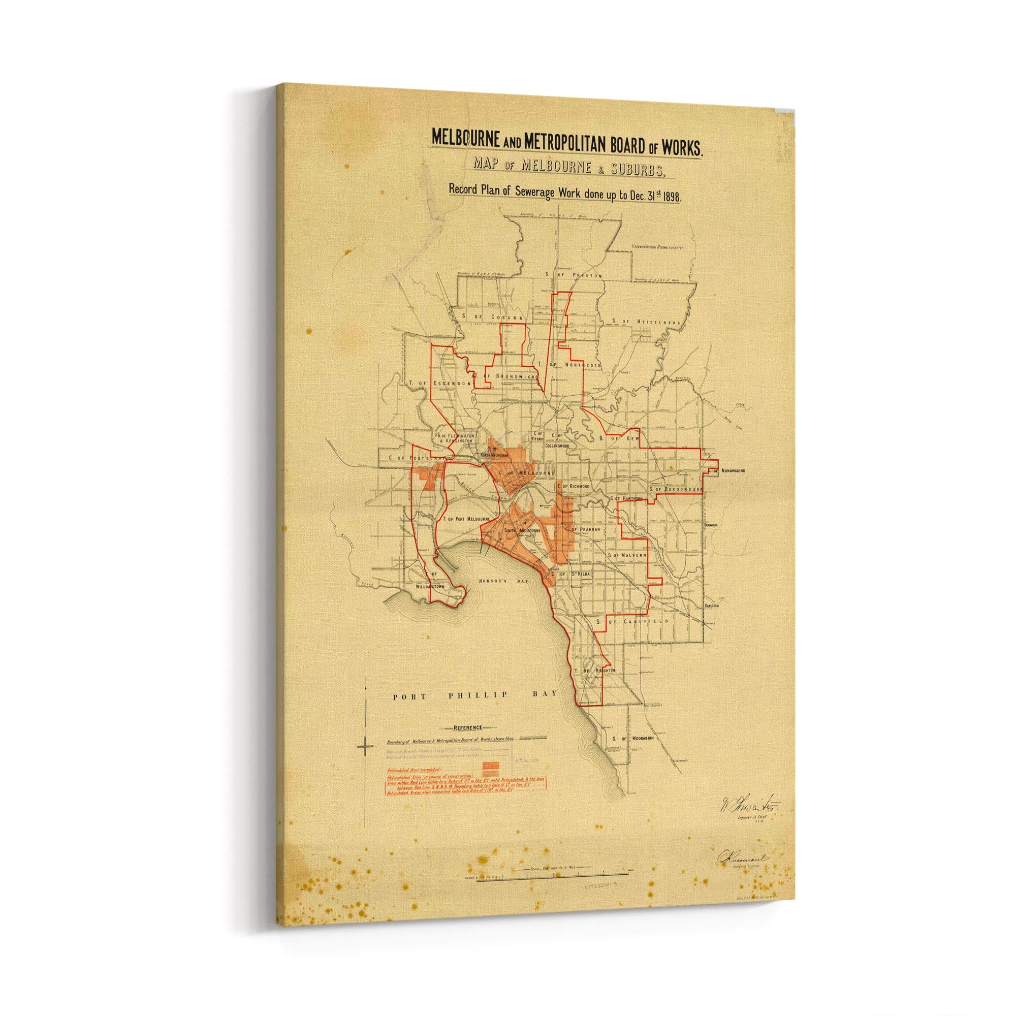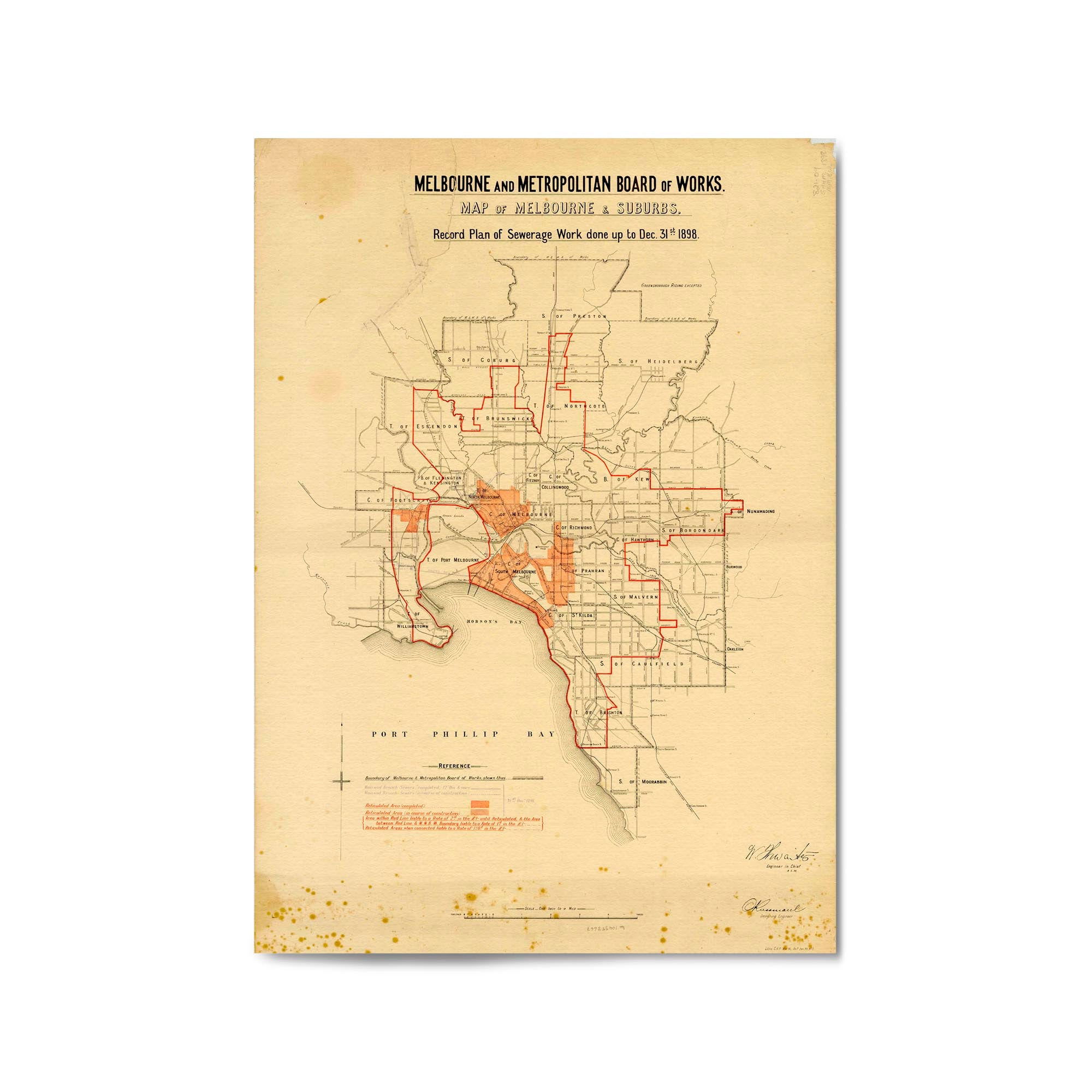 Map of Melbourne & suburbs. Record plan of sewerage work done up to Dec. 31st 1898. W. Thwaites, Engineer in Chief, 19.3.96.
