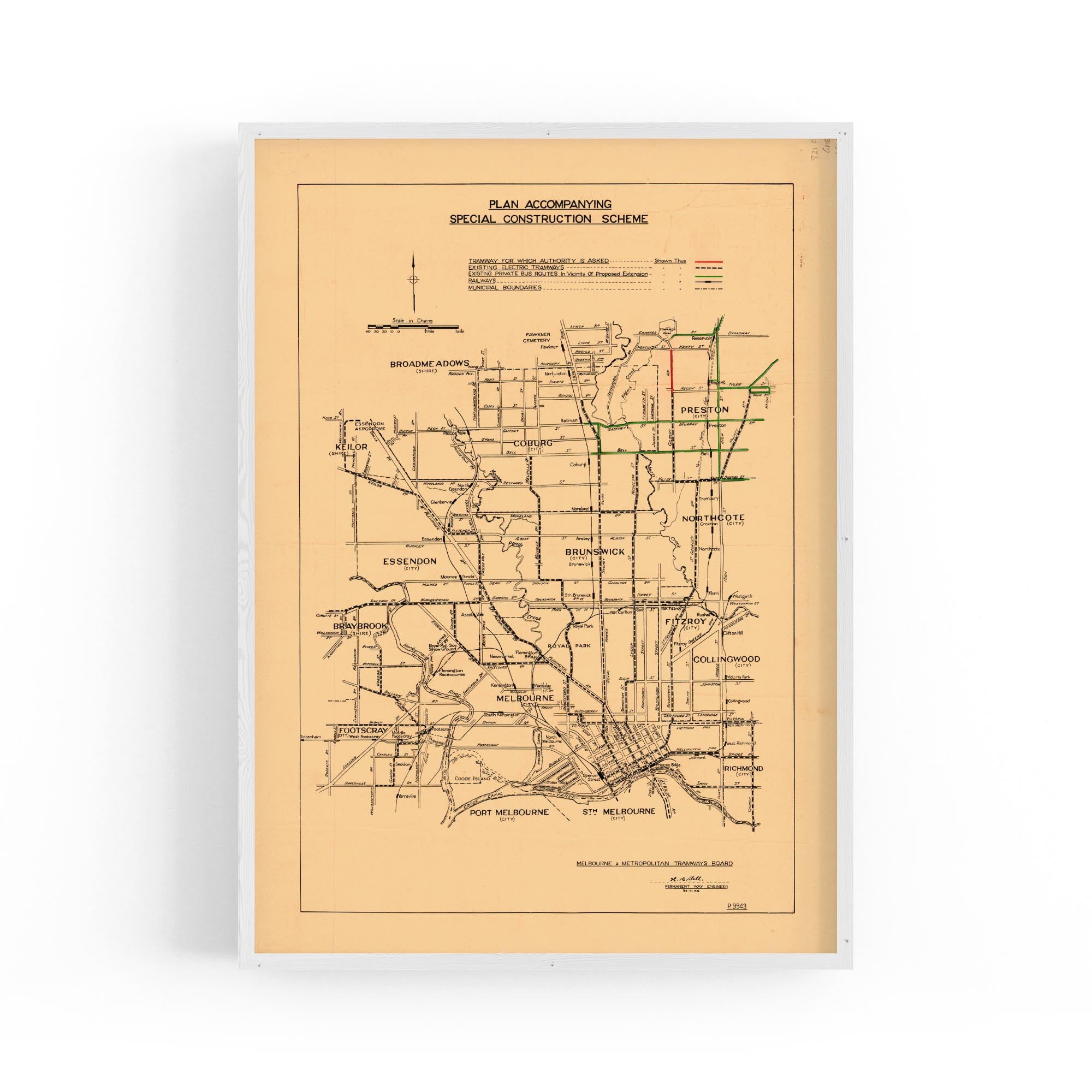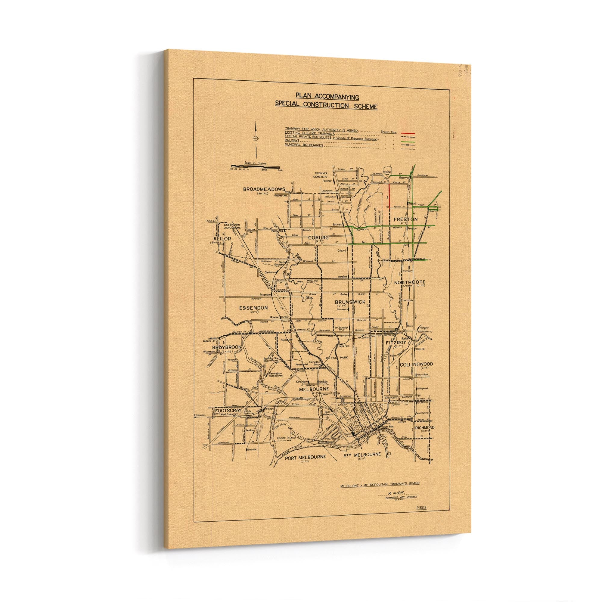 1945 Map of Melbourne and Suburbs, Victoria Australia