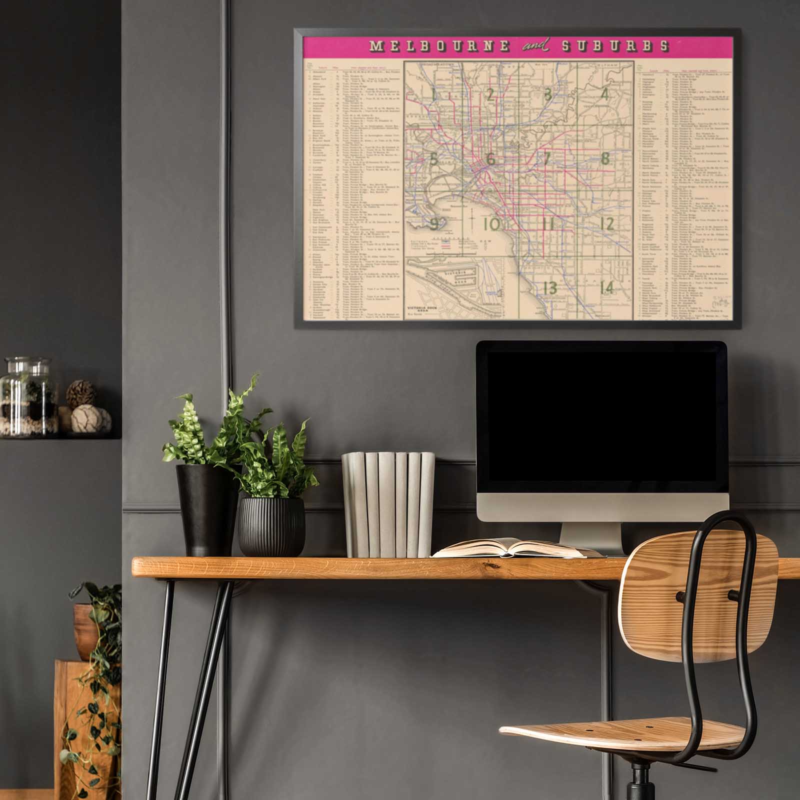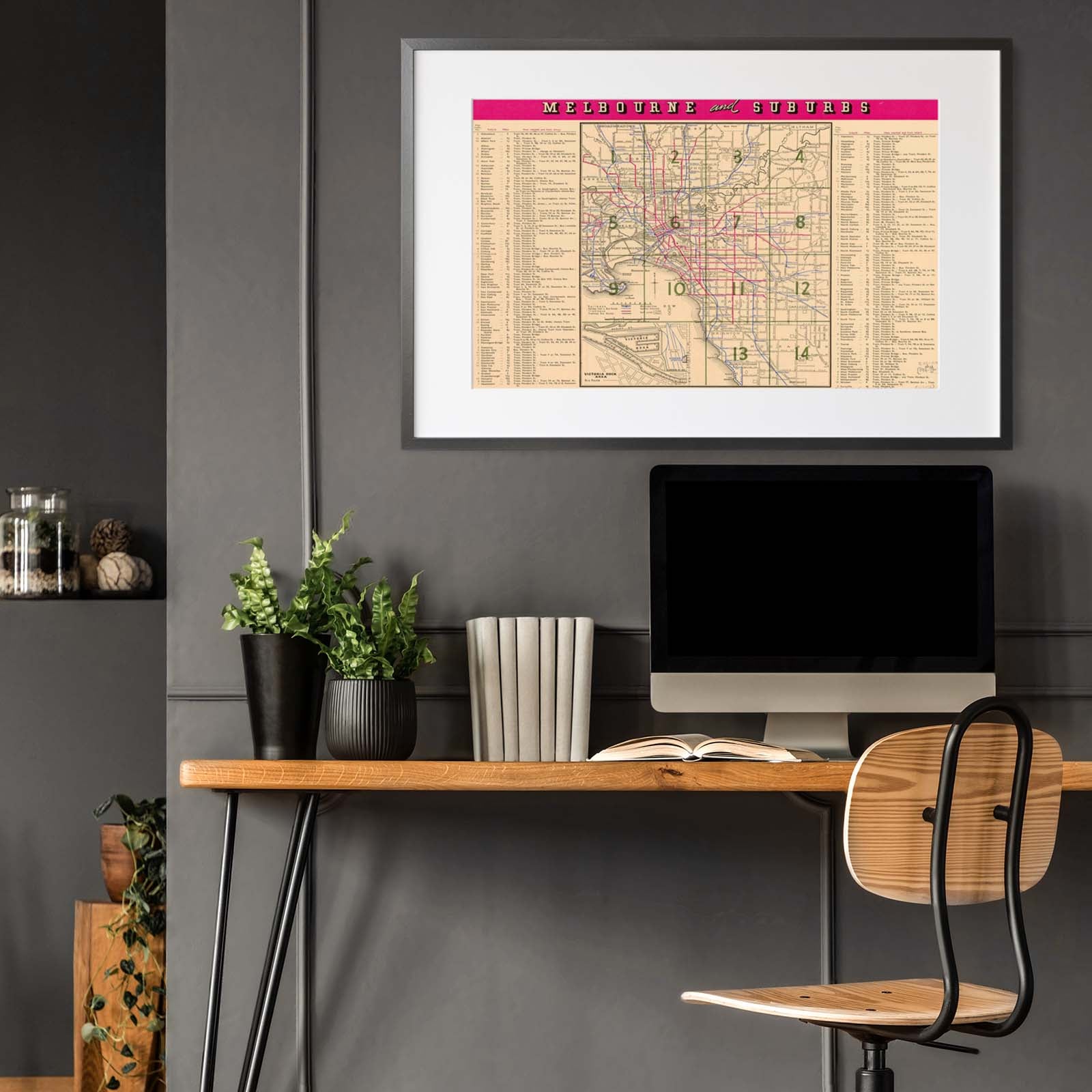 Recently moving to Harcourt and being interested in the history of the area, it seemed fitting to purchase a vintage map of the area which is displayed on our kitchen wall for us to study easily, identifying the block of land we bought. Nicely framed too.