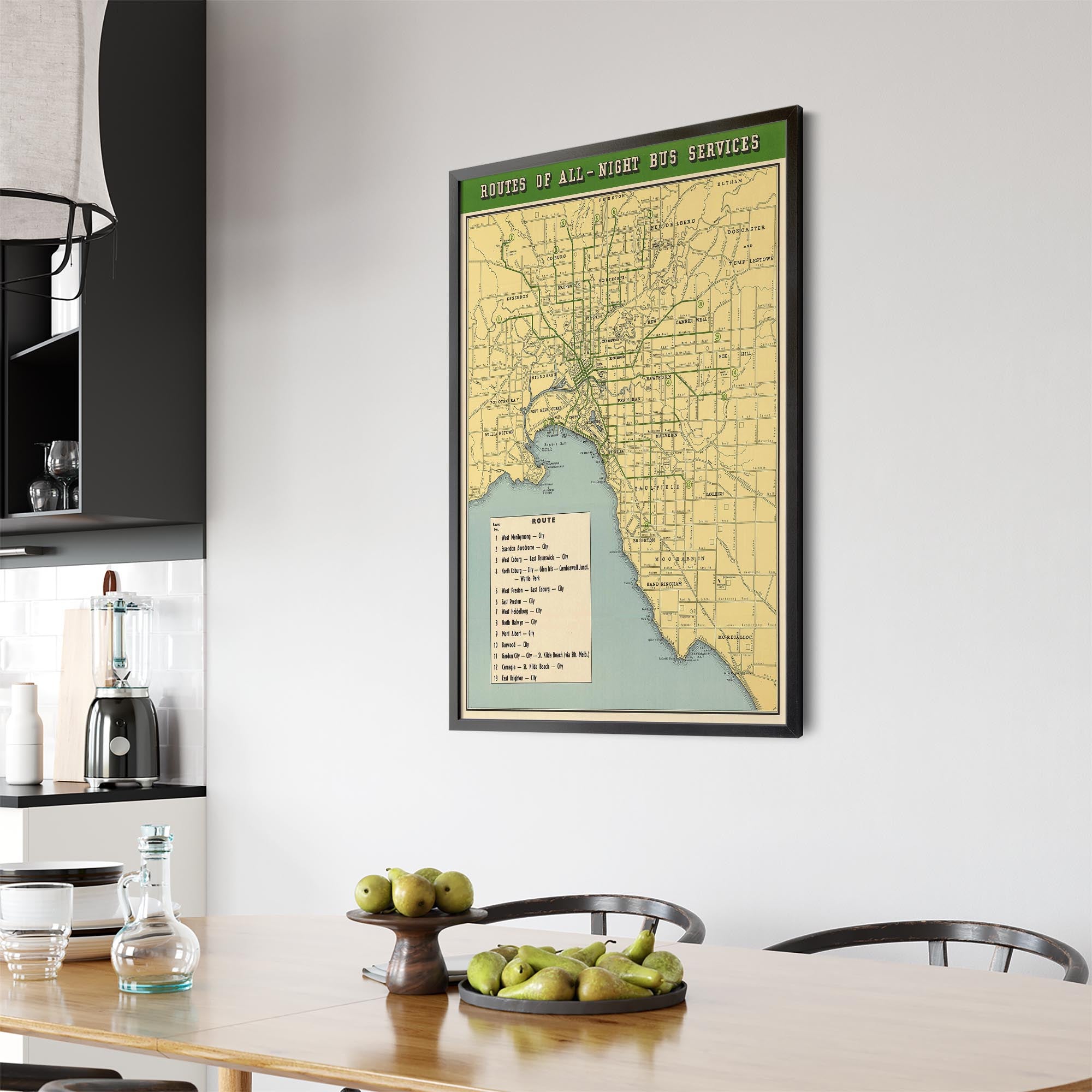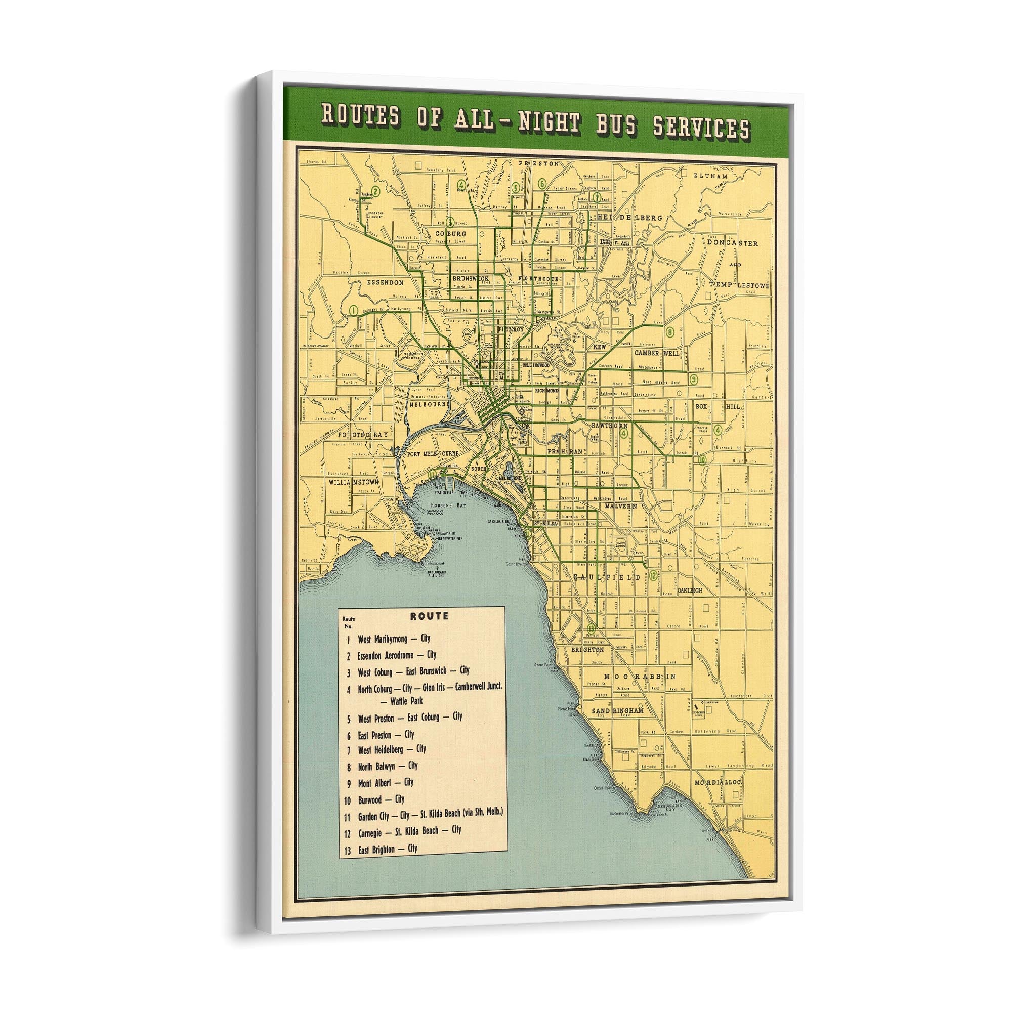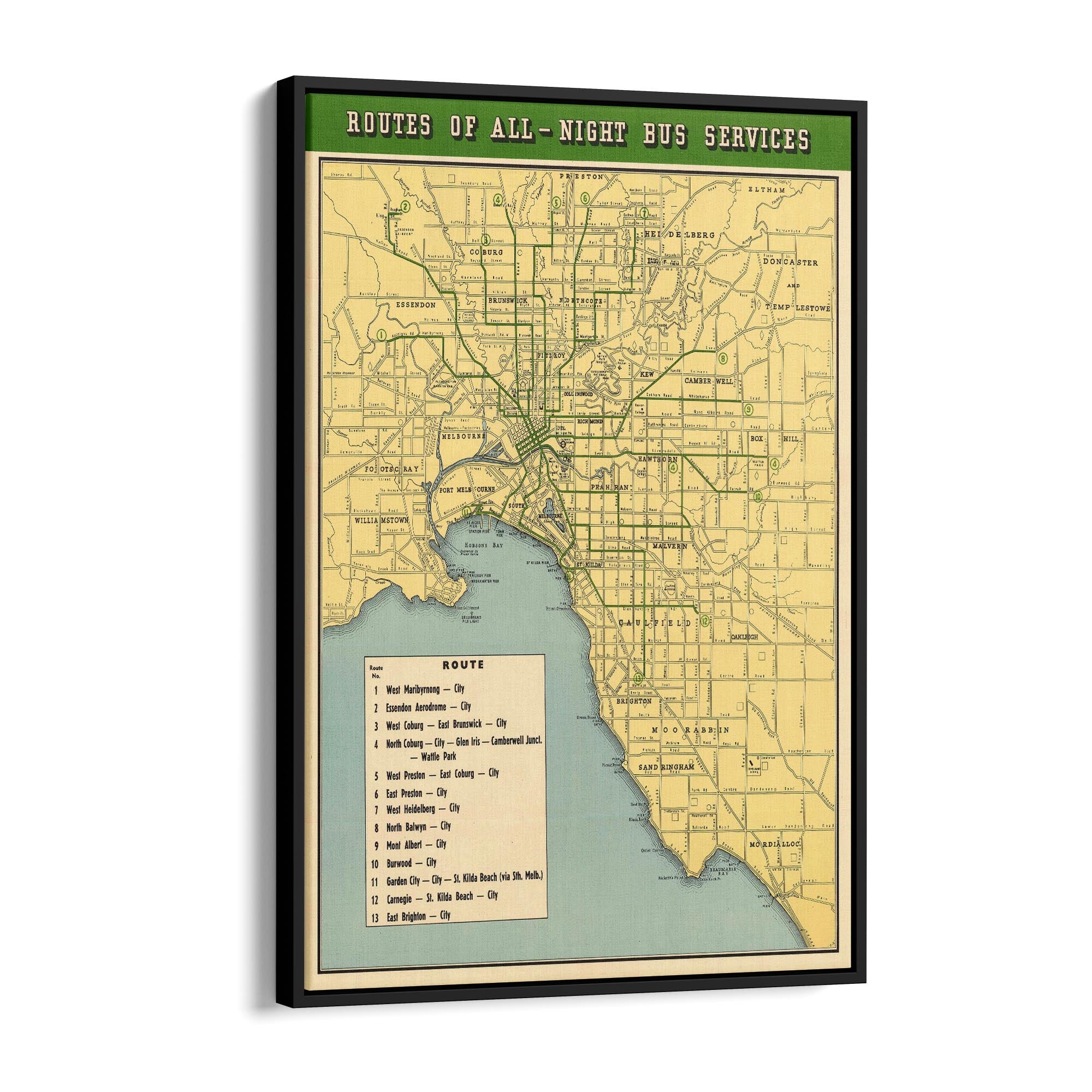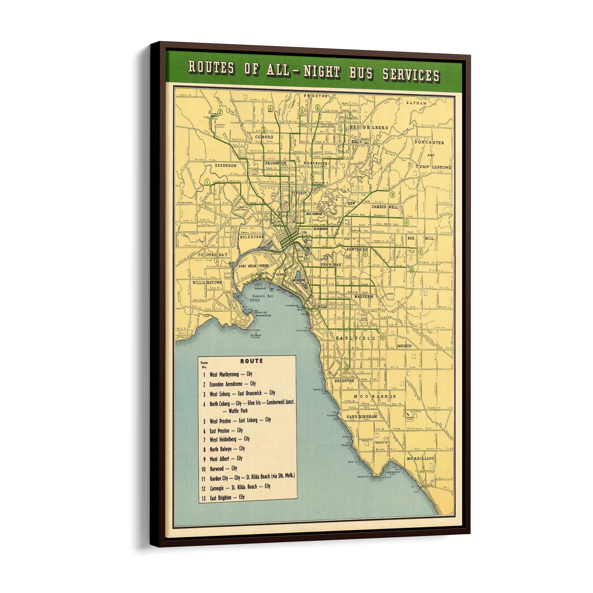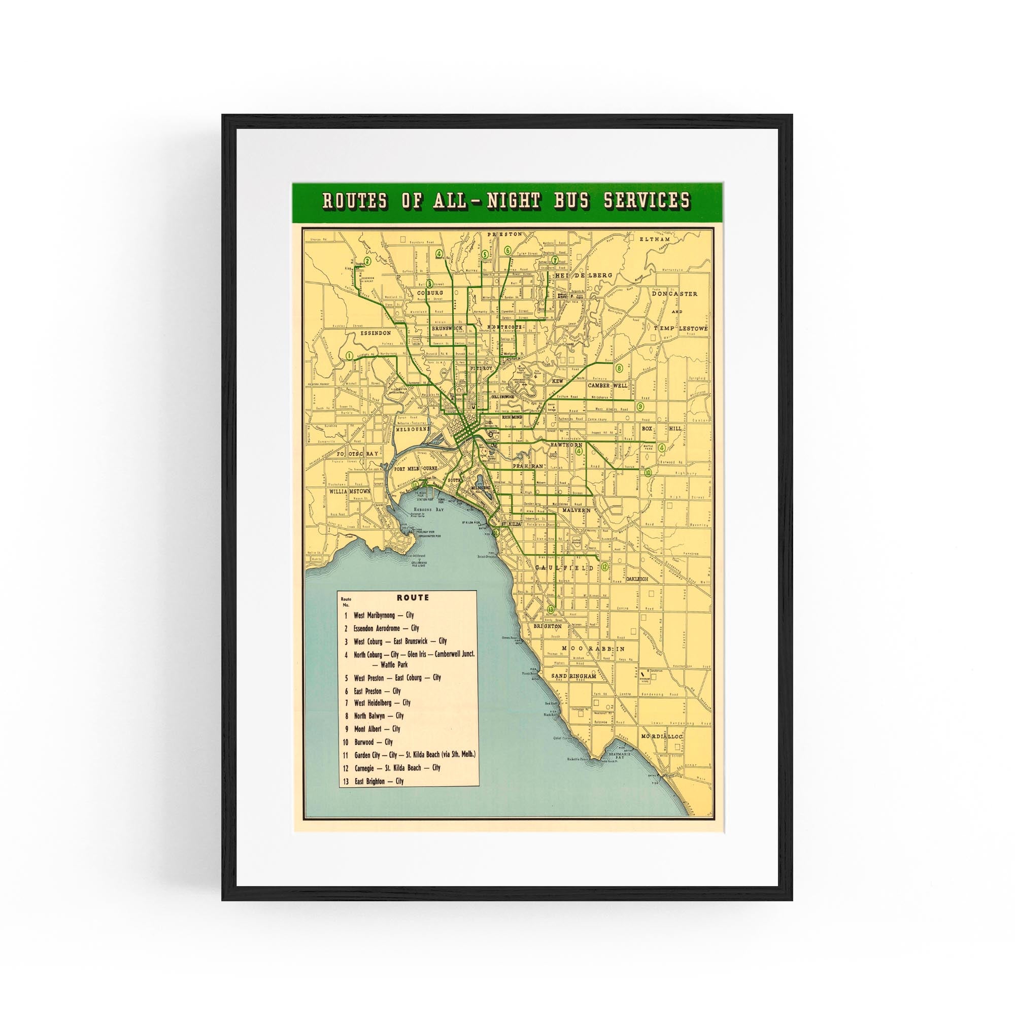 Map and timetable of all-night bus services. Issued by the Melbourne & Metropolitan Tramways Board.