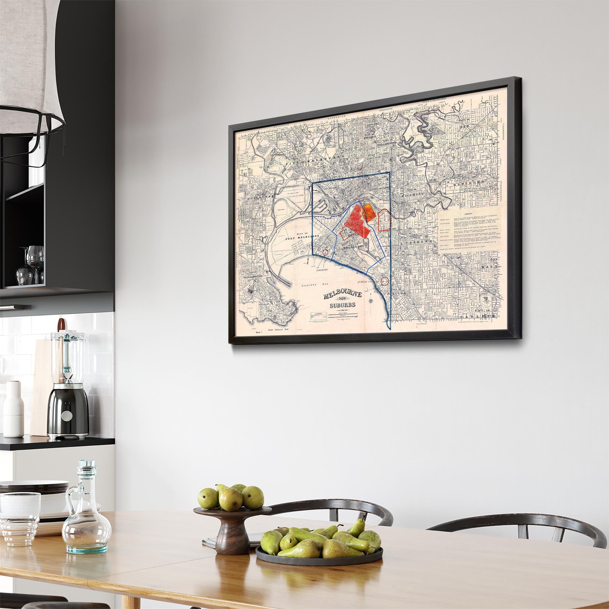 Recently moving to Harcourt and being interested in the history of the area, it seemed fitting to purchase a vintage map of the area which is displayed on our kitchen wall for us to study easily, identifying the block of land we bought. Nicely framed too.