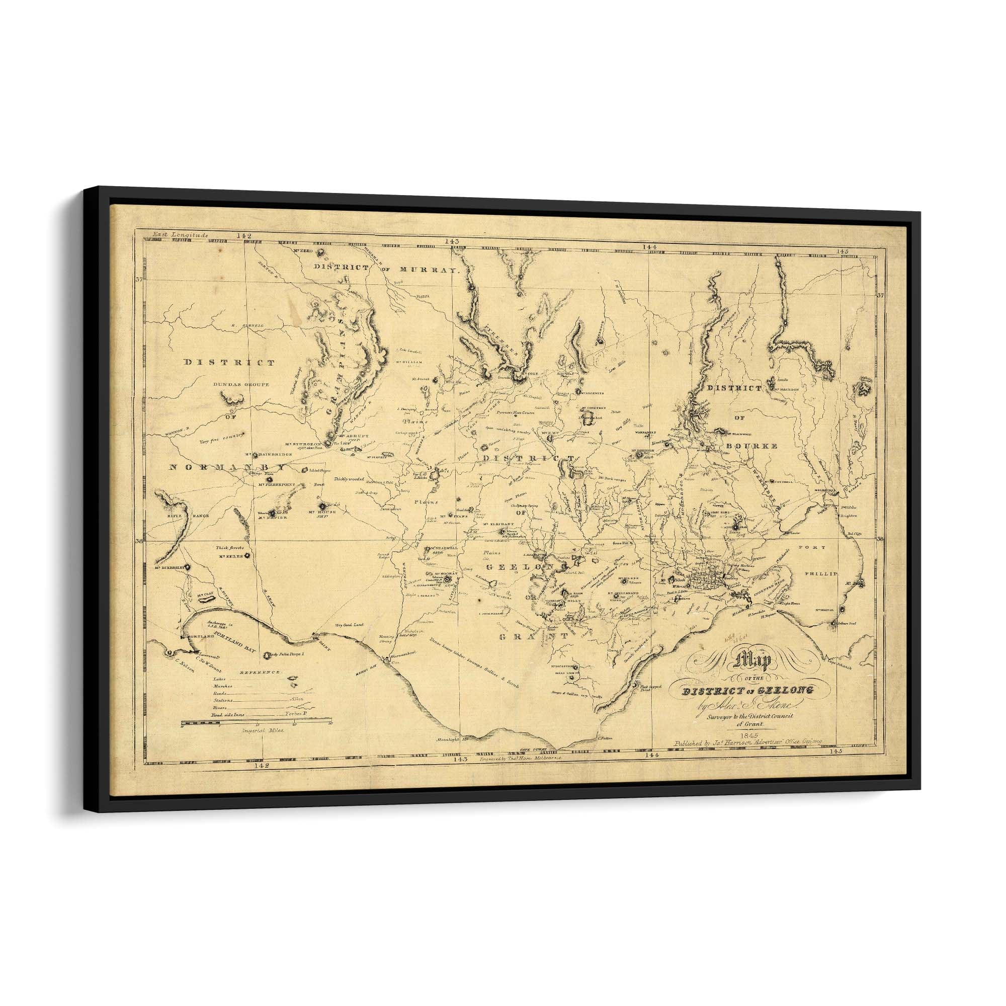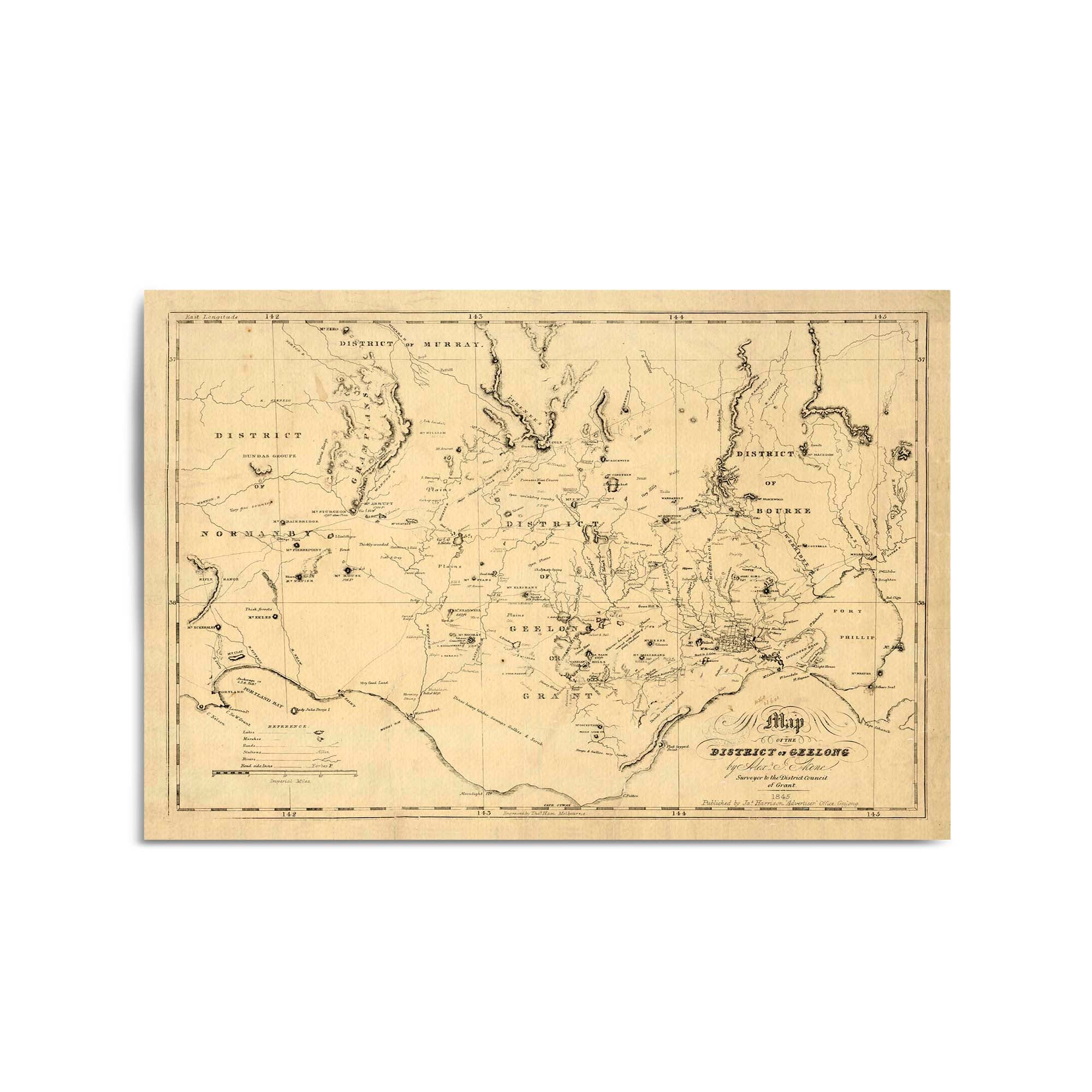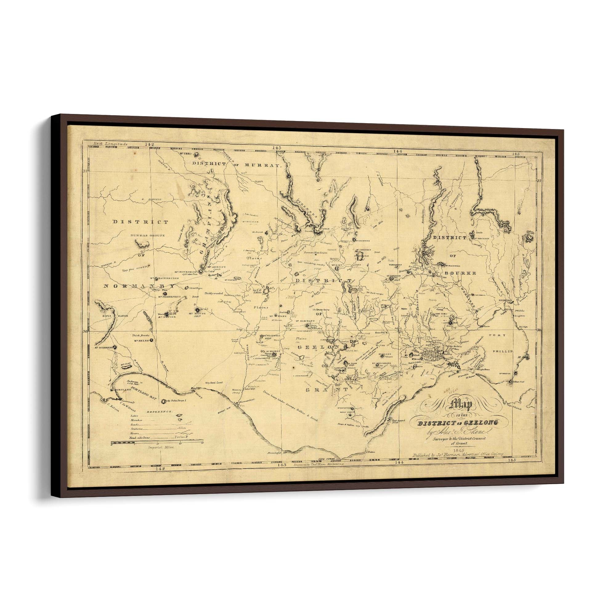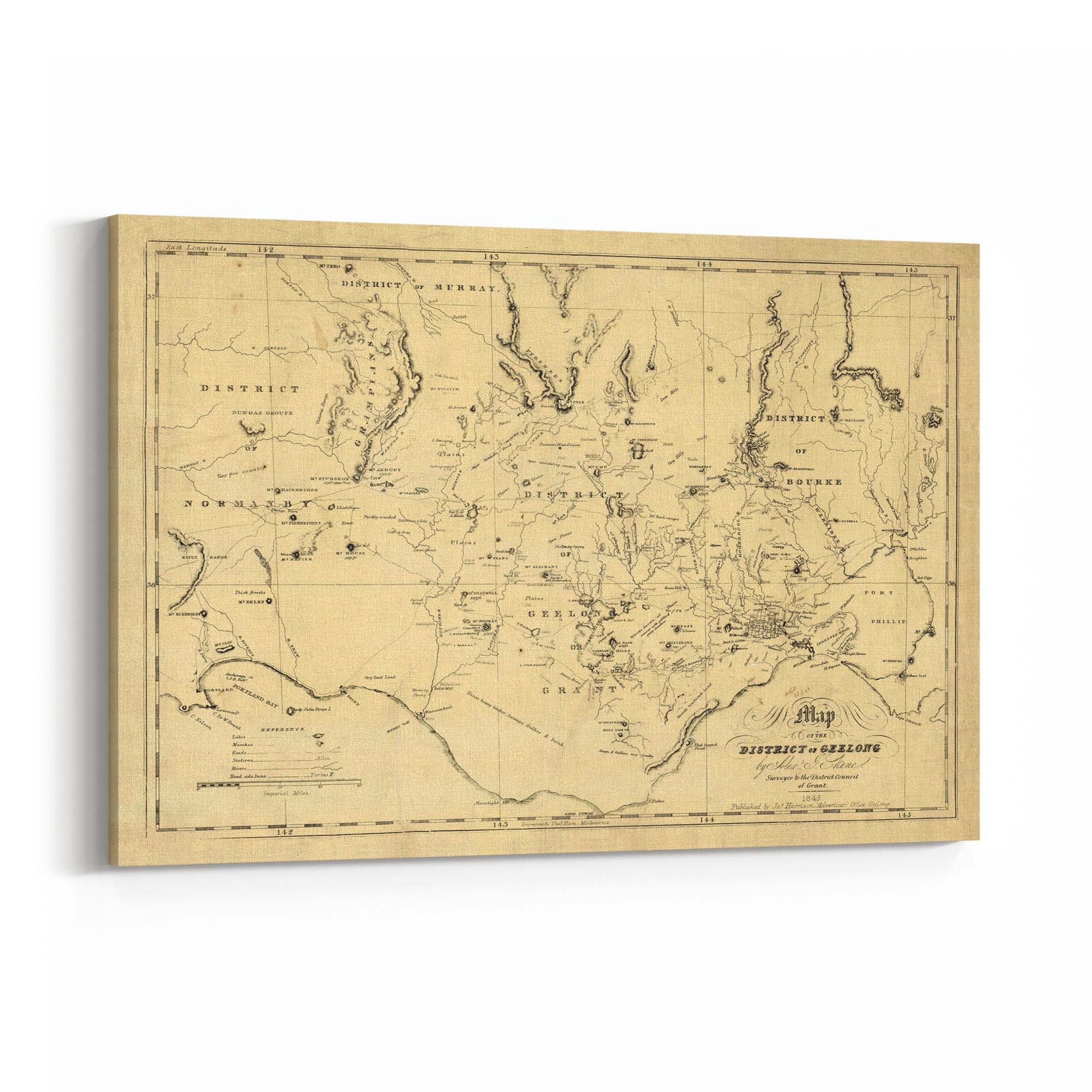 1845 Vintage Map of the District of Geelong