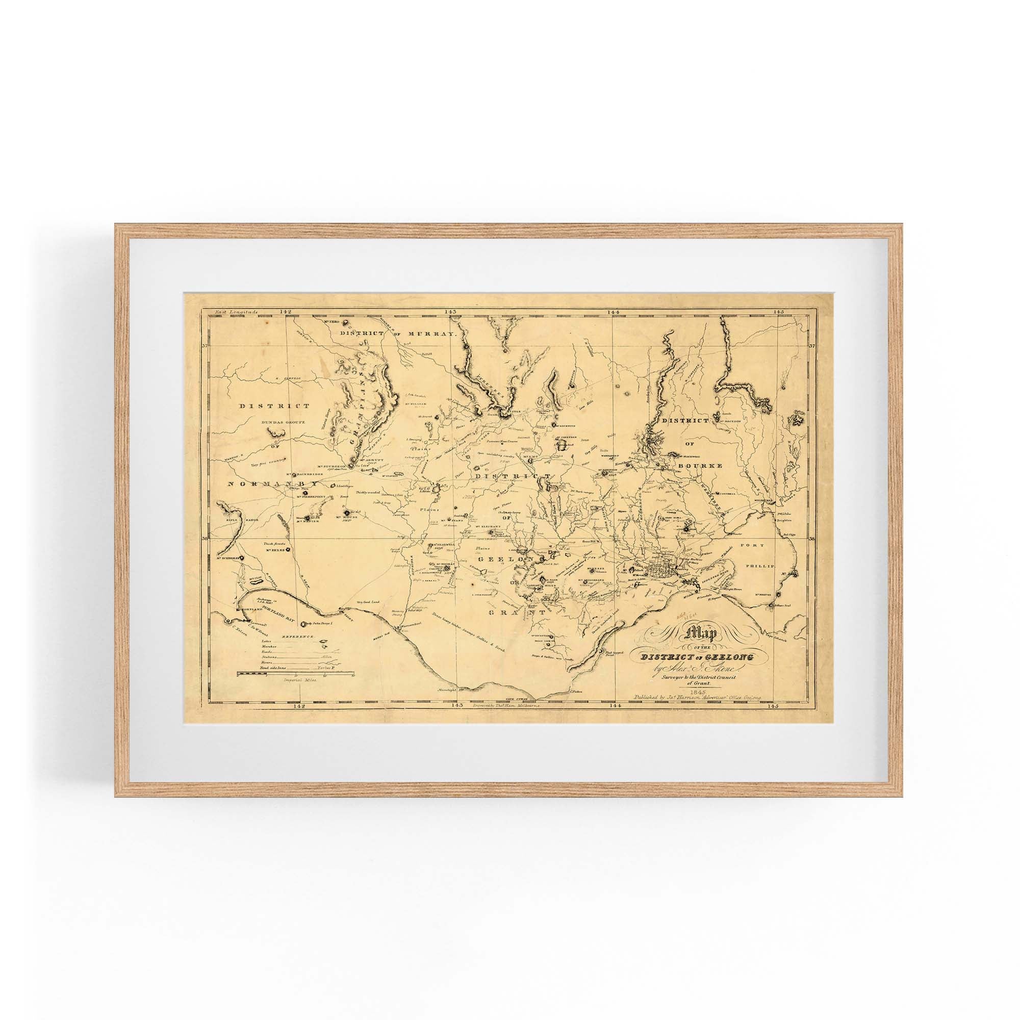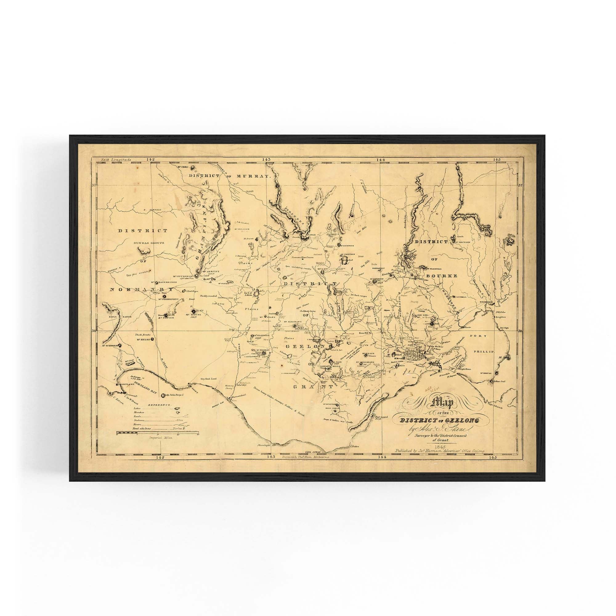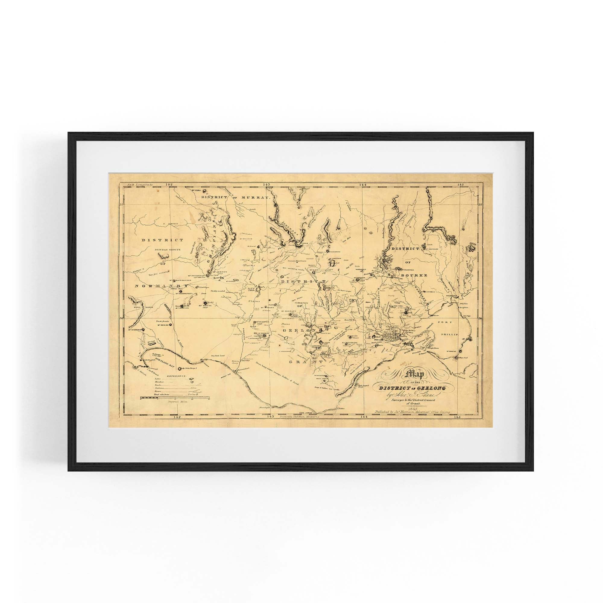 1845 Vintage Map of the District of Geelong