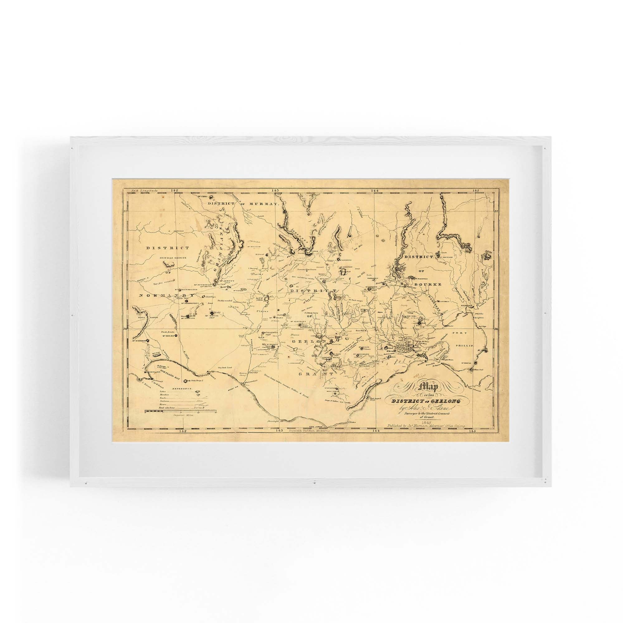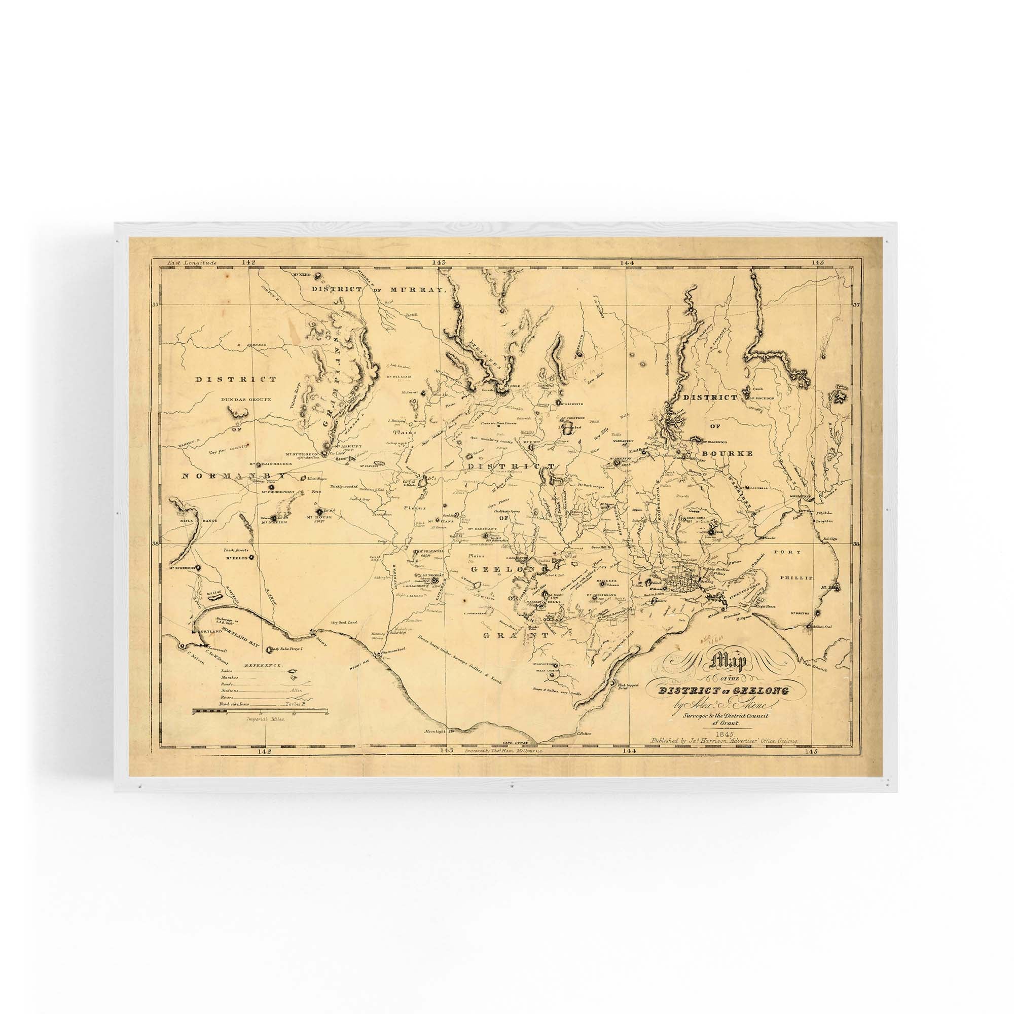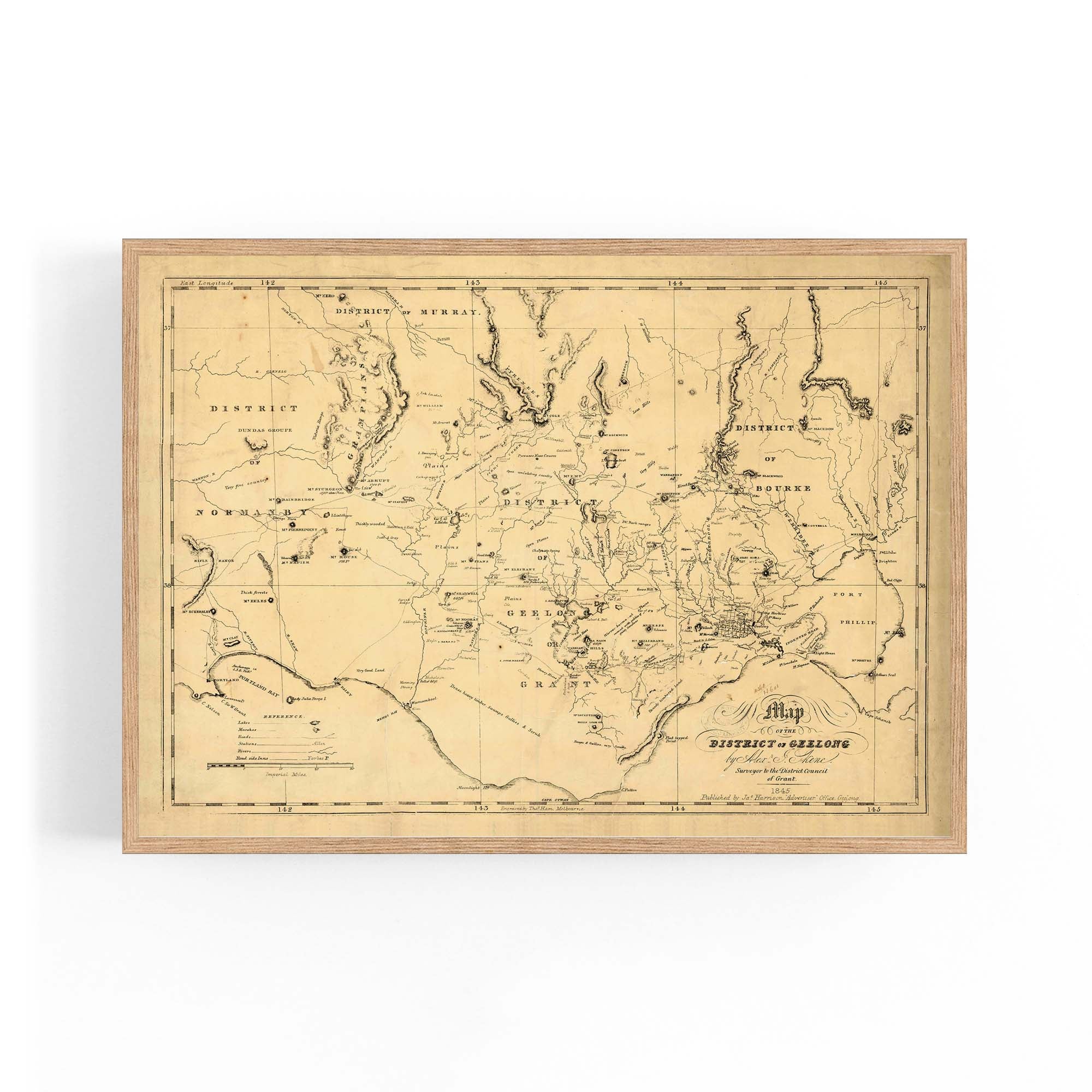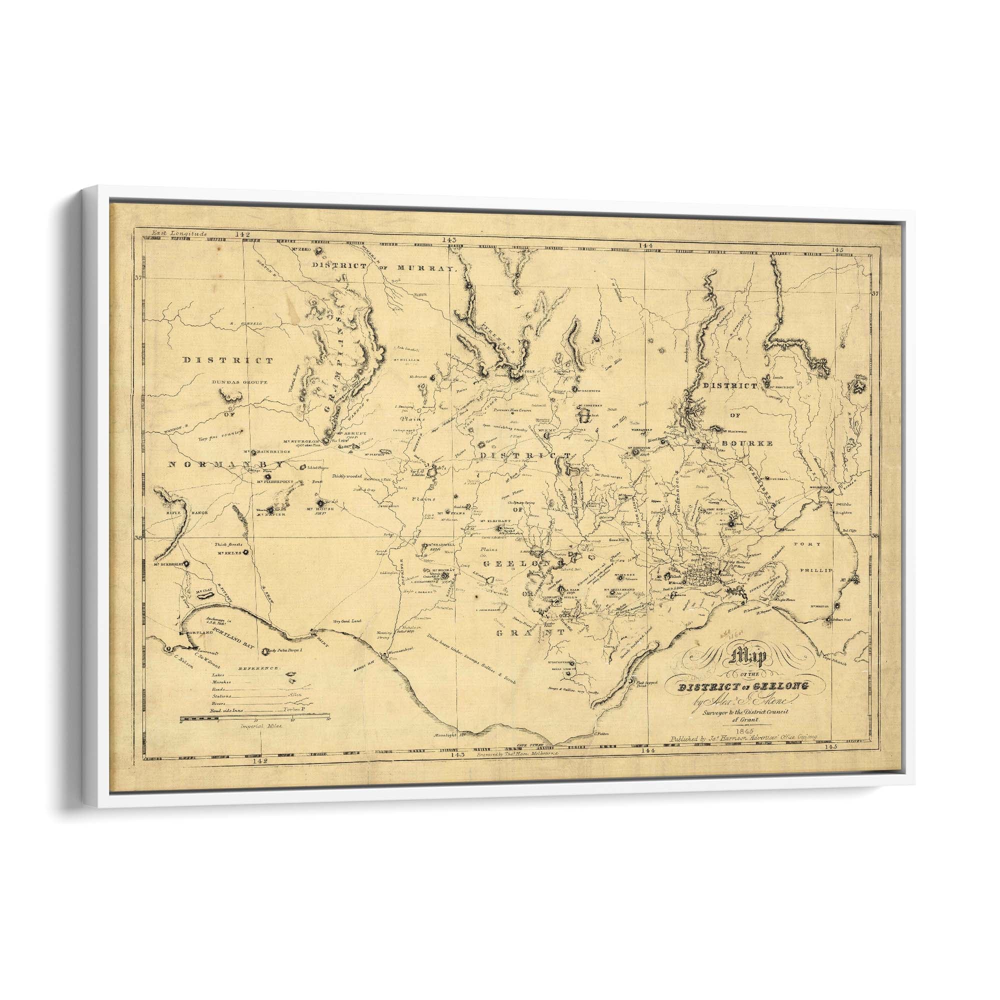 1845 Vintage Map of the District of Geelong