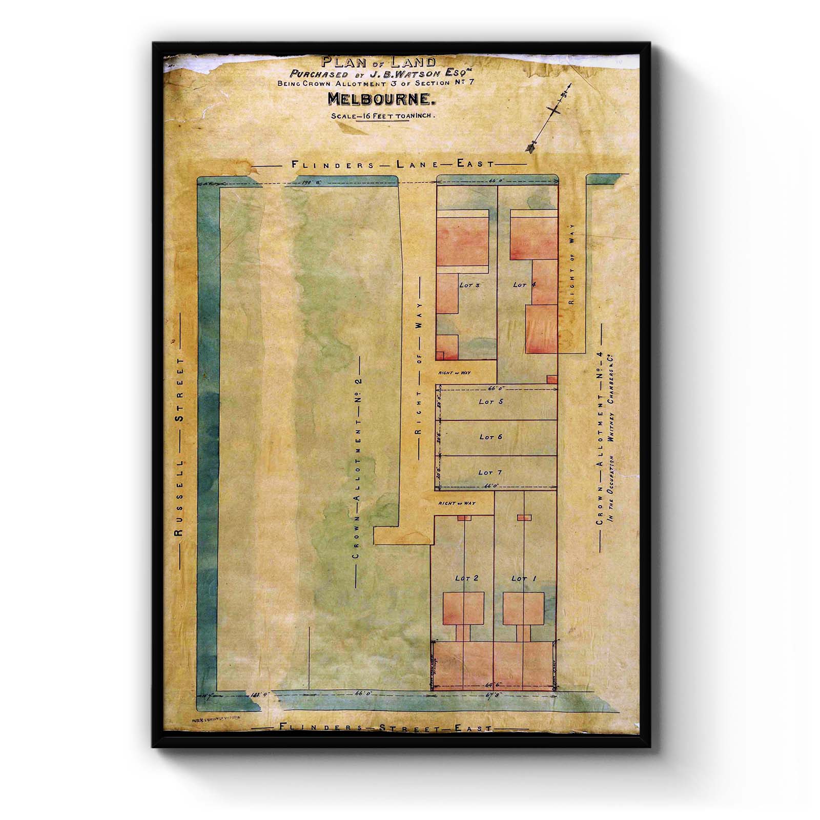 Plan of land purchased by J.B. Watson Esqre. being crown allotment 3 of section no. 7 Melbourne. [between 1860 and 1888]
