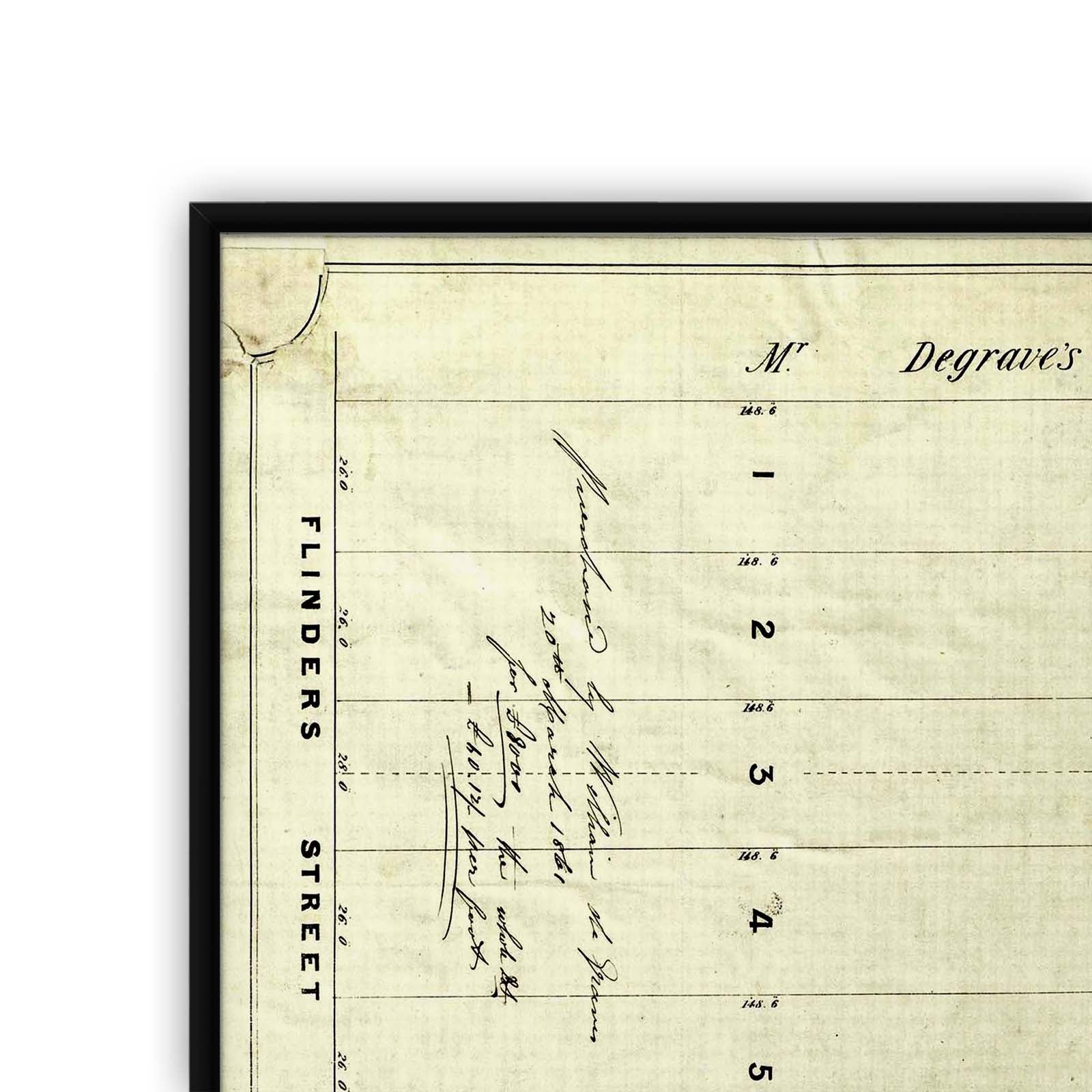 1860 East of Mr. Degraves flour mills and west of Sargood, King & Sargood's store.;