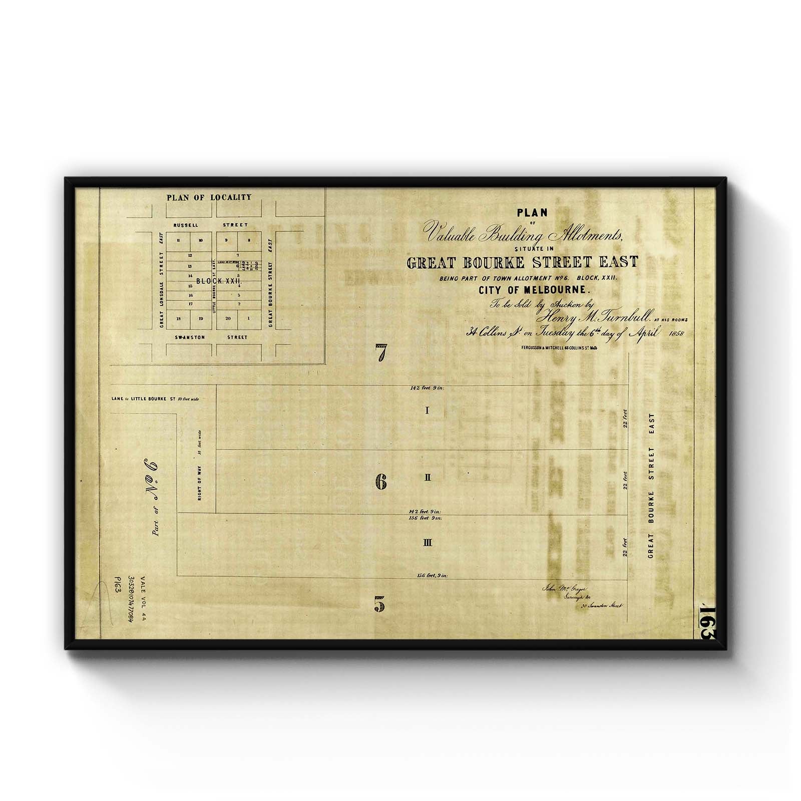 Plan of valuable building allotments, situate in Great Bourke Street East [cartographic material]./ John McGregor, surveyor &c. 1858