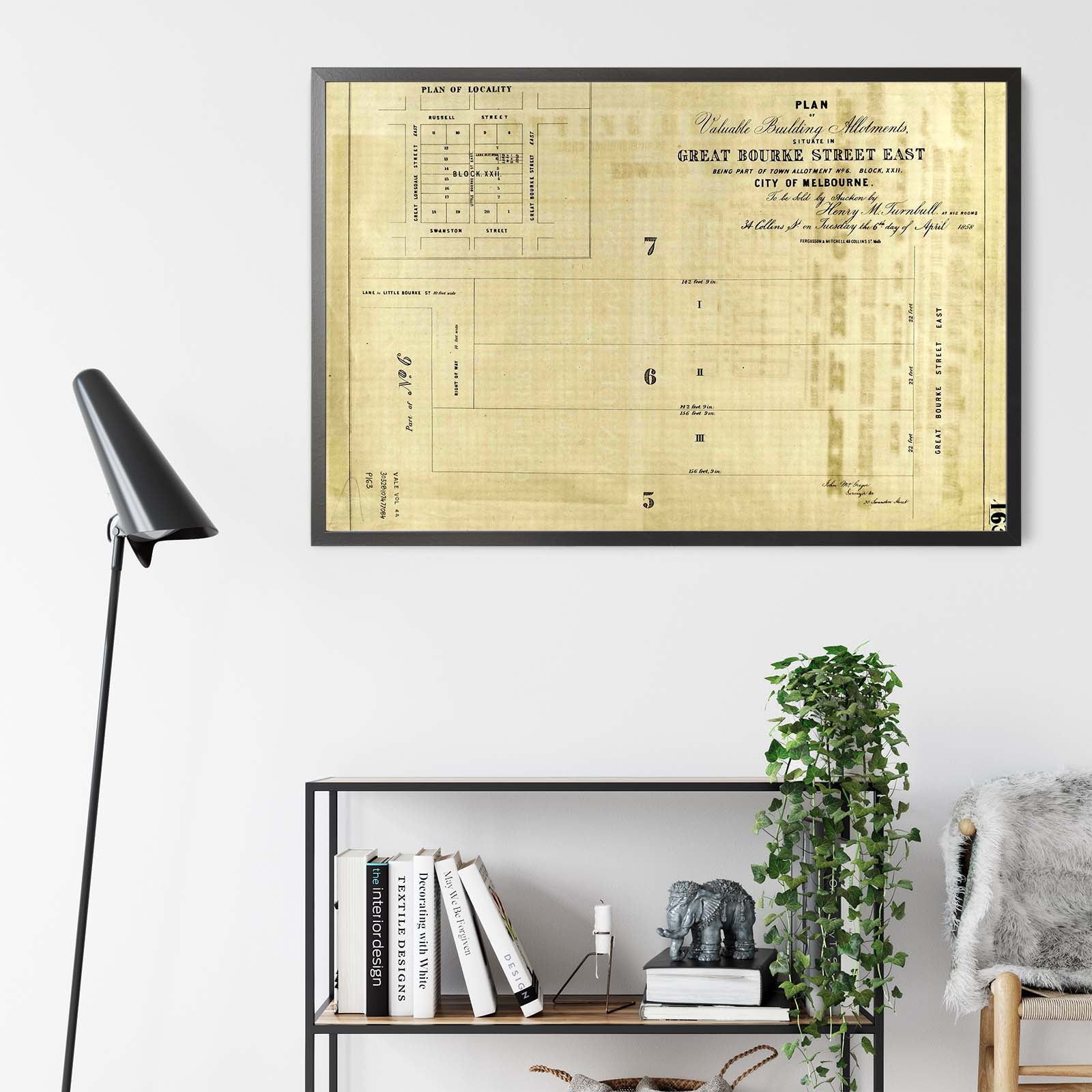 Recently moving to Harcourt and being interested in the history of the area, it seemed fitting to purchase a vintage map of the area which is displayed on our kitchen wall for us to study easily, identifying the block of land we bought. Nicely framed too.