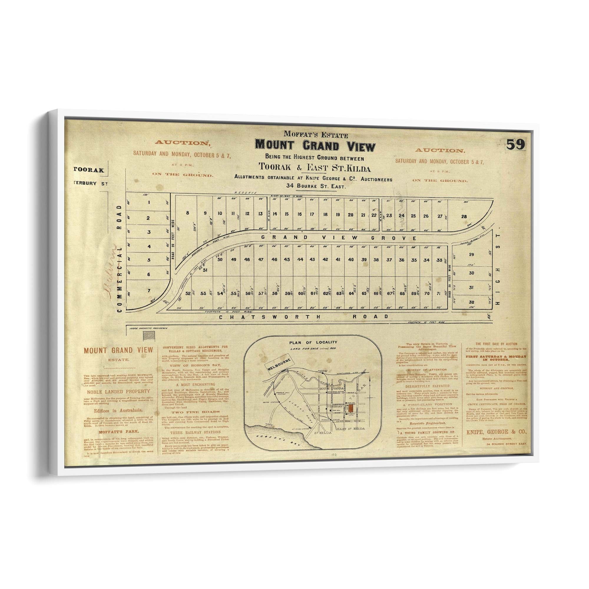 "Auction Saturday and Mondya, October 5 & 7 at 3 pm. on the ground".; Includes a locality plan coloured red to indicate area for sale.