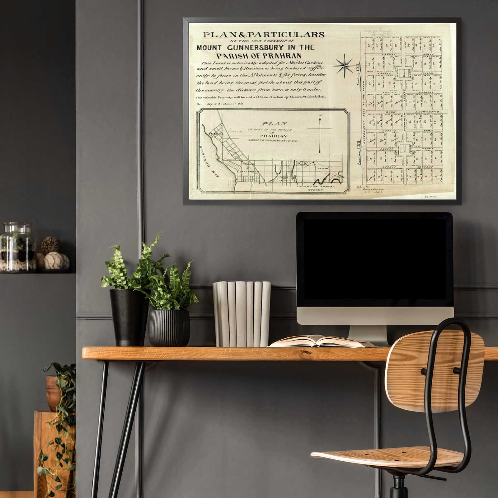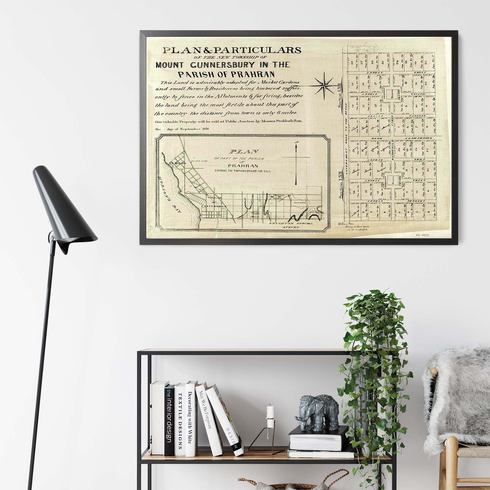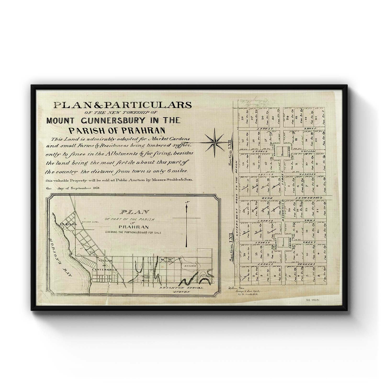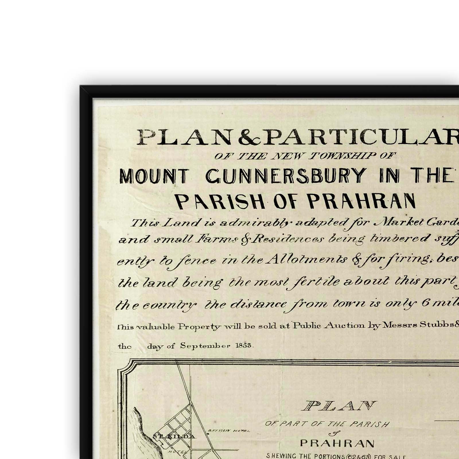 Plan & particulars of the new township of Mount Gunnersbury in the parish of Prahran [cartographic material]. 1853