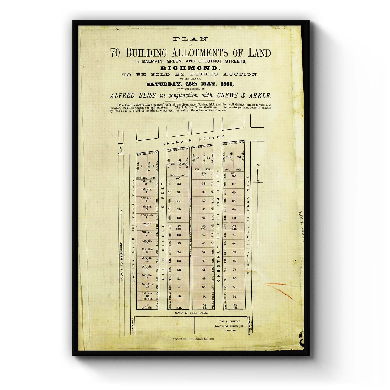 Plan of 70 building allotments of land [...] Richmond [cartographic material]. 1881