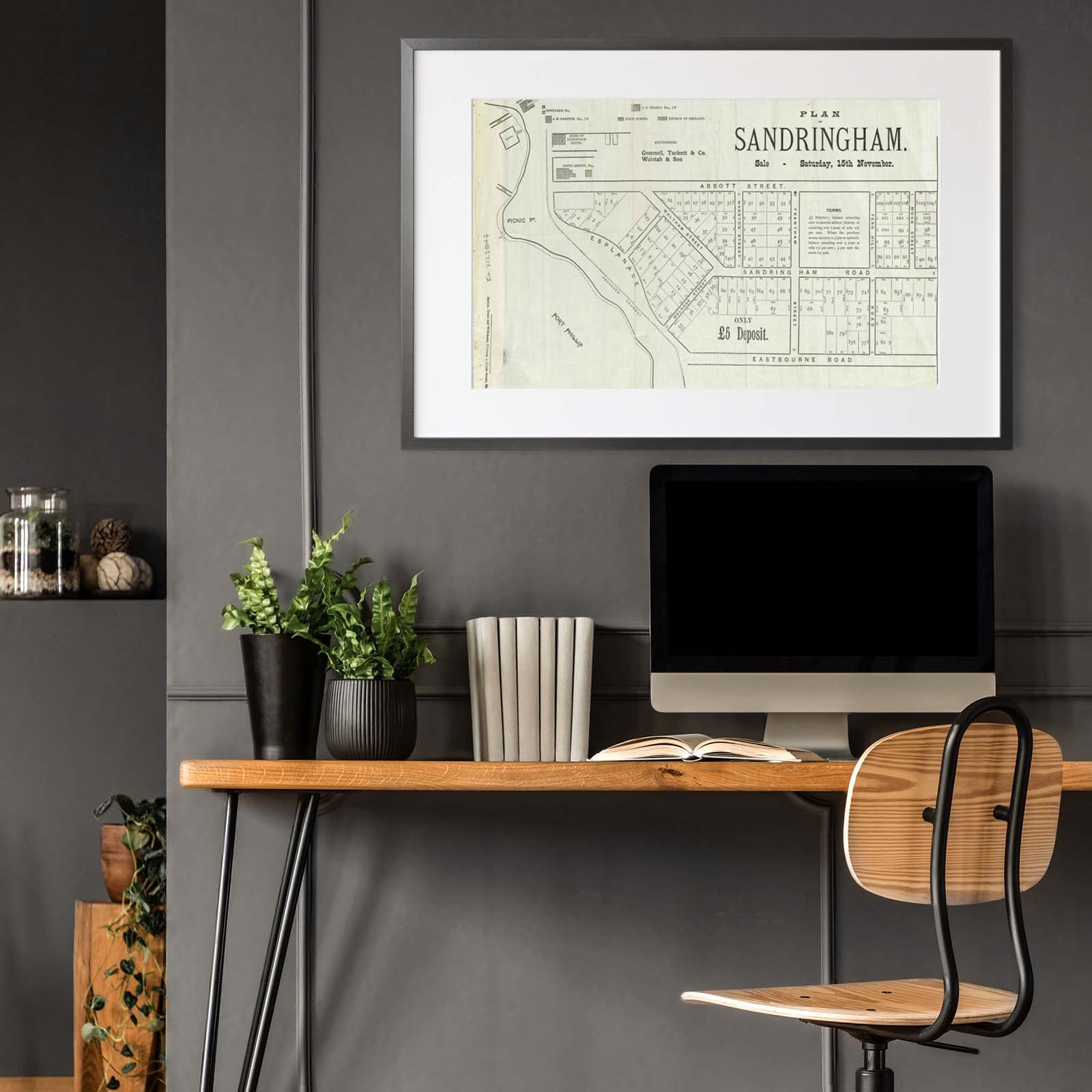 Recently moving to Harcourt and being interested in the history of the area, it seemed fitting to purchase a vintage map of the area which is displayed on our kitchen wall for us to study easily, identifying the block of land we bought. Nicely framed too.
