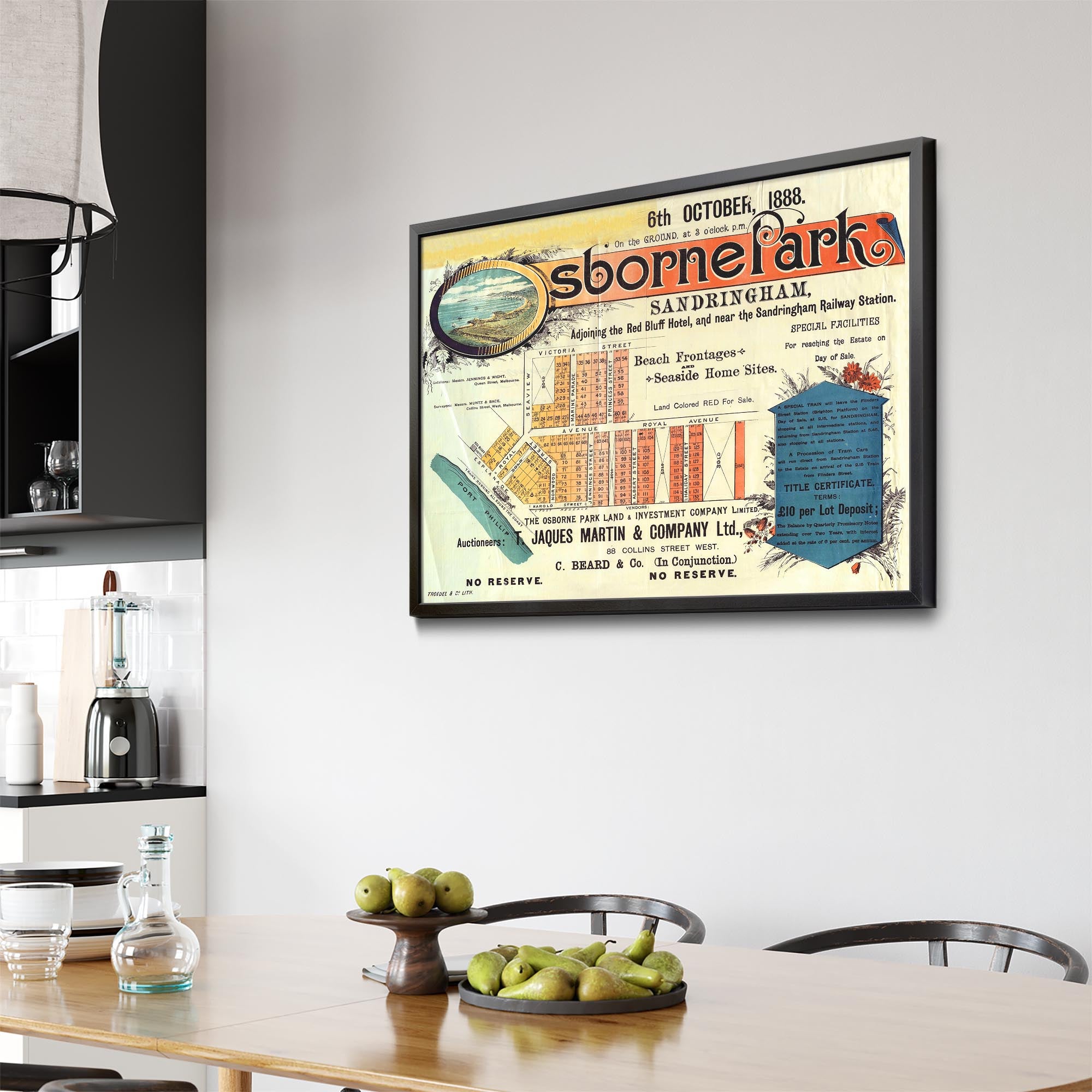 Recently moving to Harcourt and being interested in the history of the area, it seemed fitting to purchase a vintage map of the area which is displayed on our kitchen wall for us to study easily, identifying the block of land we bought. Nicely framed too.
