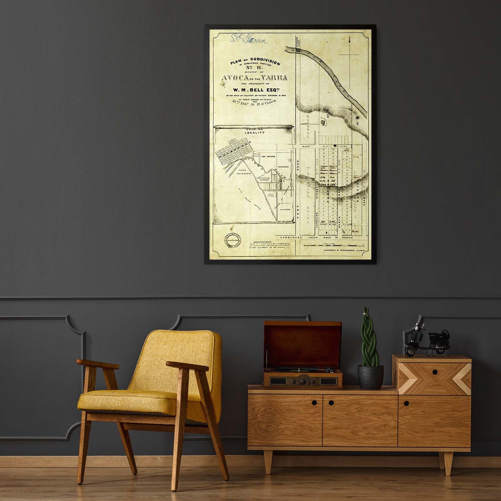 Recently moving to Harcourt and being interested in the history of the area, it seemed fitting to purchase a vintage map of the area which is displayed on our kitchen wall for us to study easily, identifying the block of land we bought. Nicely framed too.