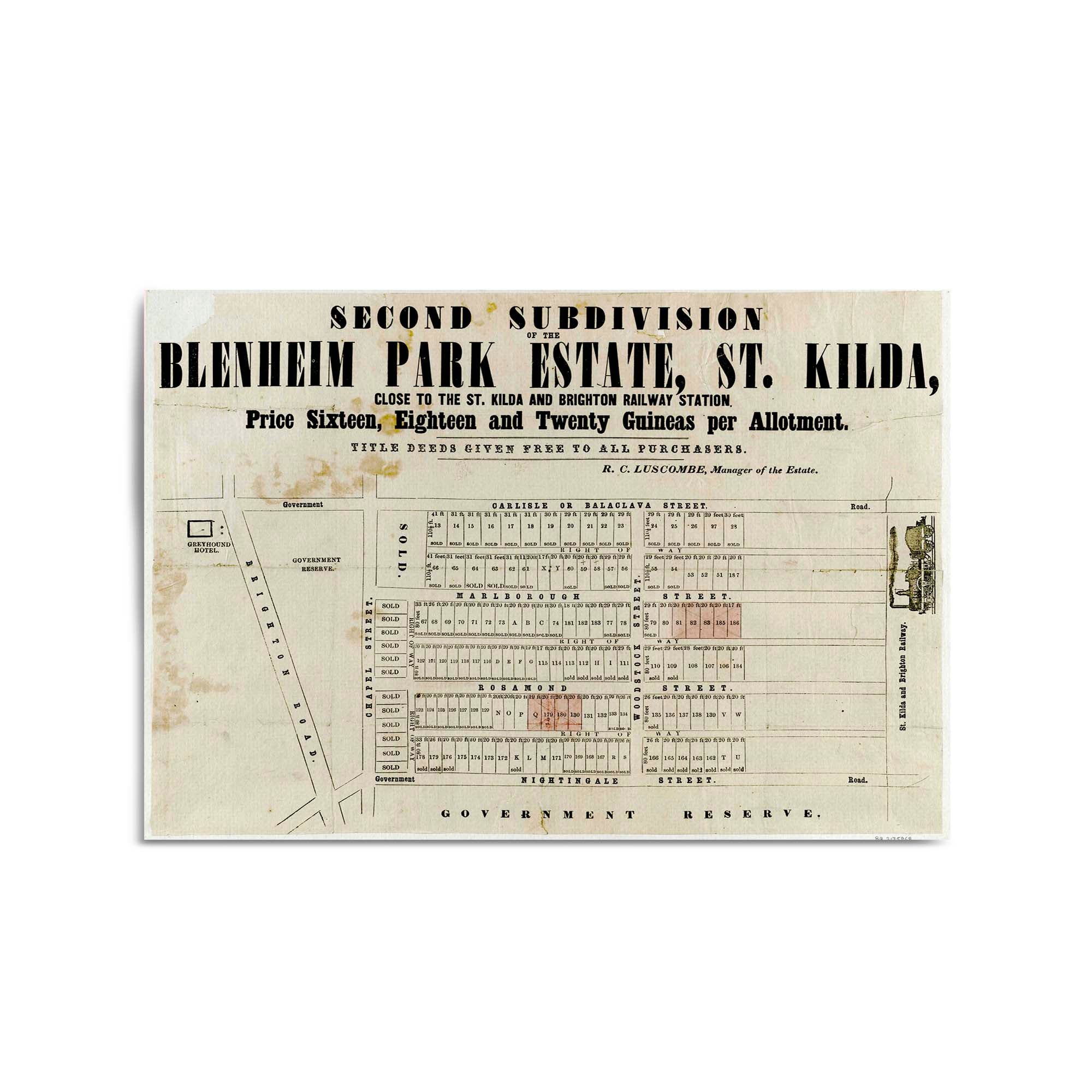 Second subdivision of the Blenheim Park Estate, St. Kilda. Late 1800's.