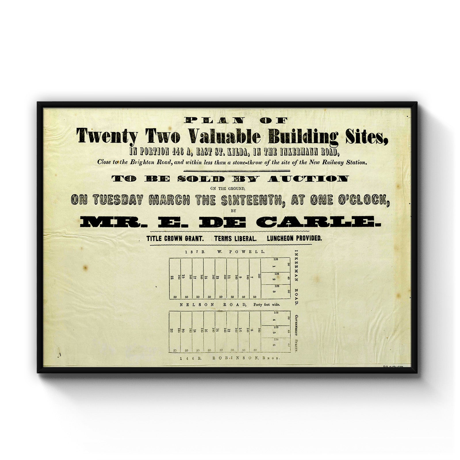 Plan of twenty two valuable building sites, in portion 146A, East St. Kilda, in the Inkerman Road [cartographic material]. 18--?]