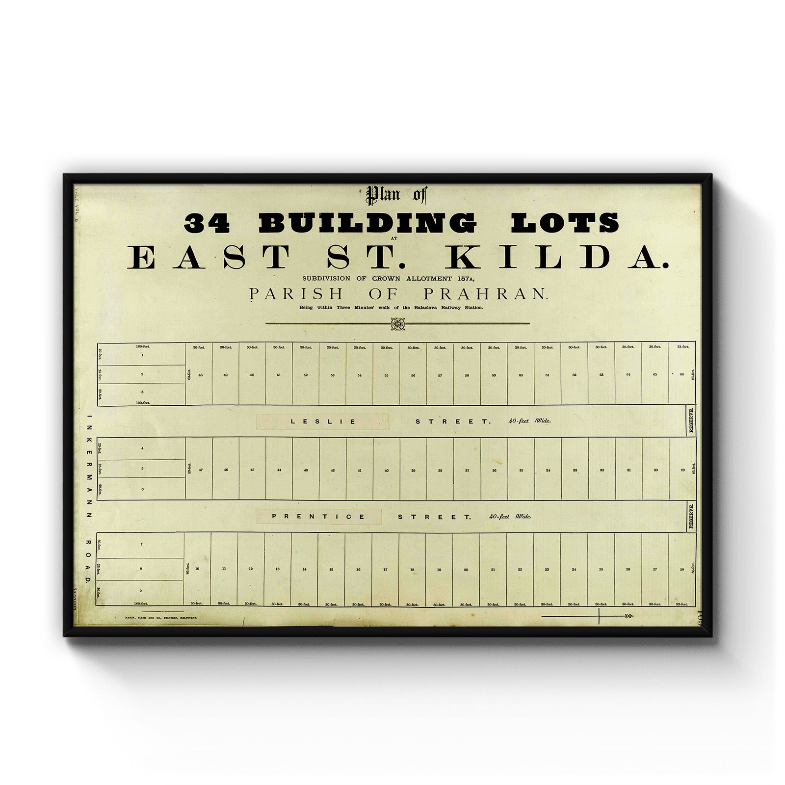 "Subdivision of crown allotment 157A, Parish of Prahran."