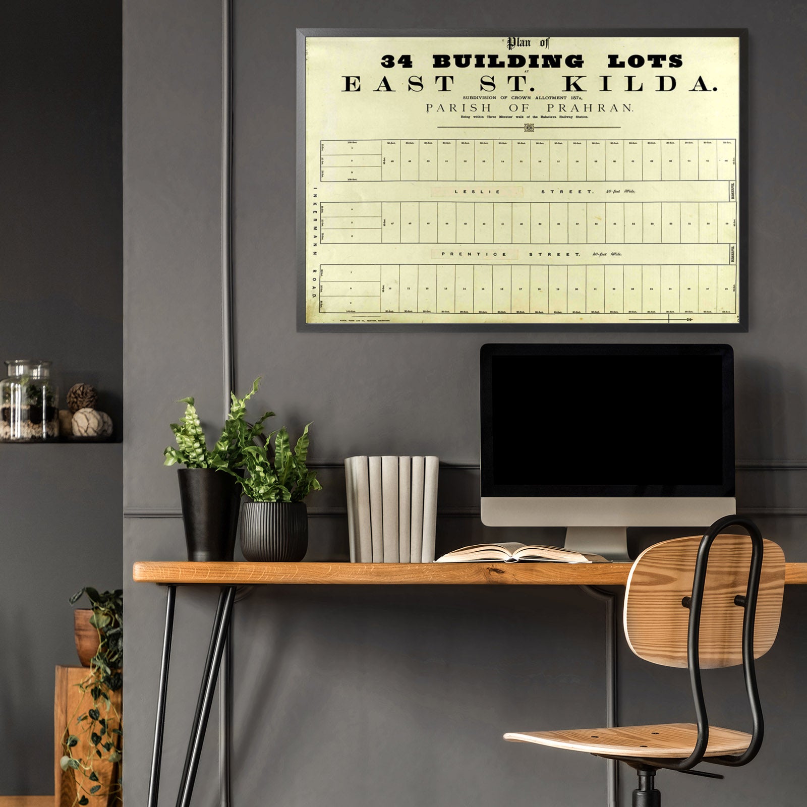 Recently moving to Harcourt and being interested in the history of the area, it seemed fitting to purchase a vintage map of the area which is displayed on our kitchen wall for us to study easily, identifying the block of land we bought. Nicely framed too.