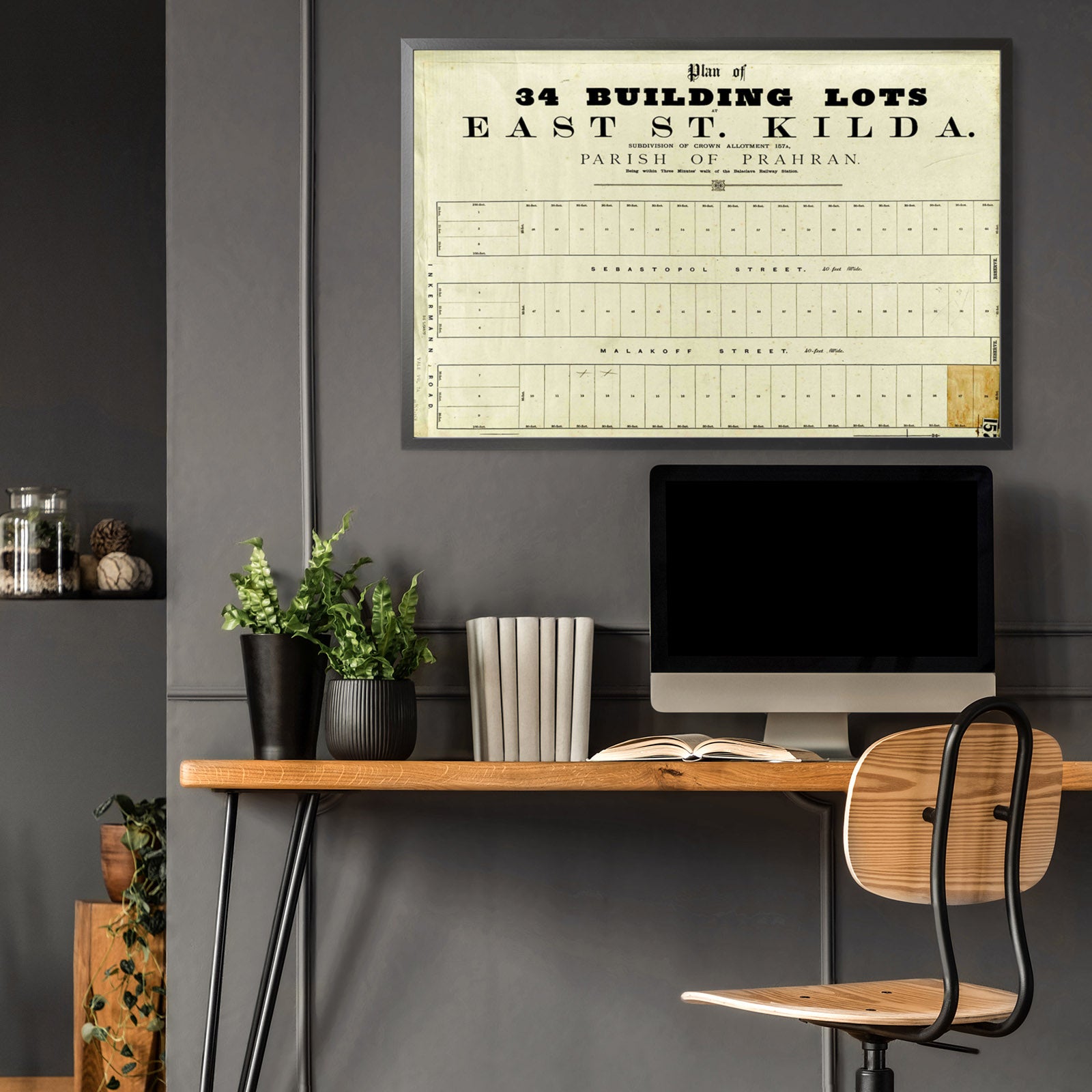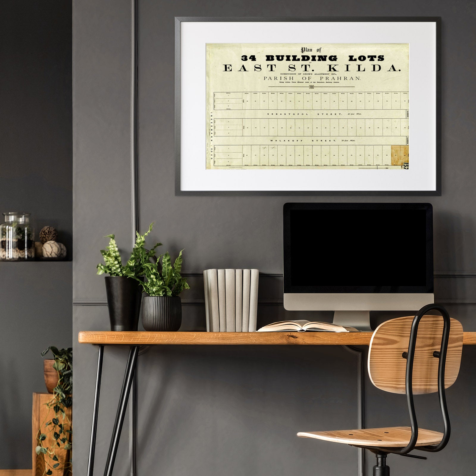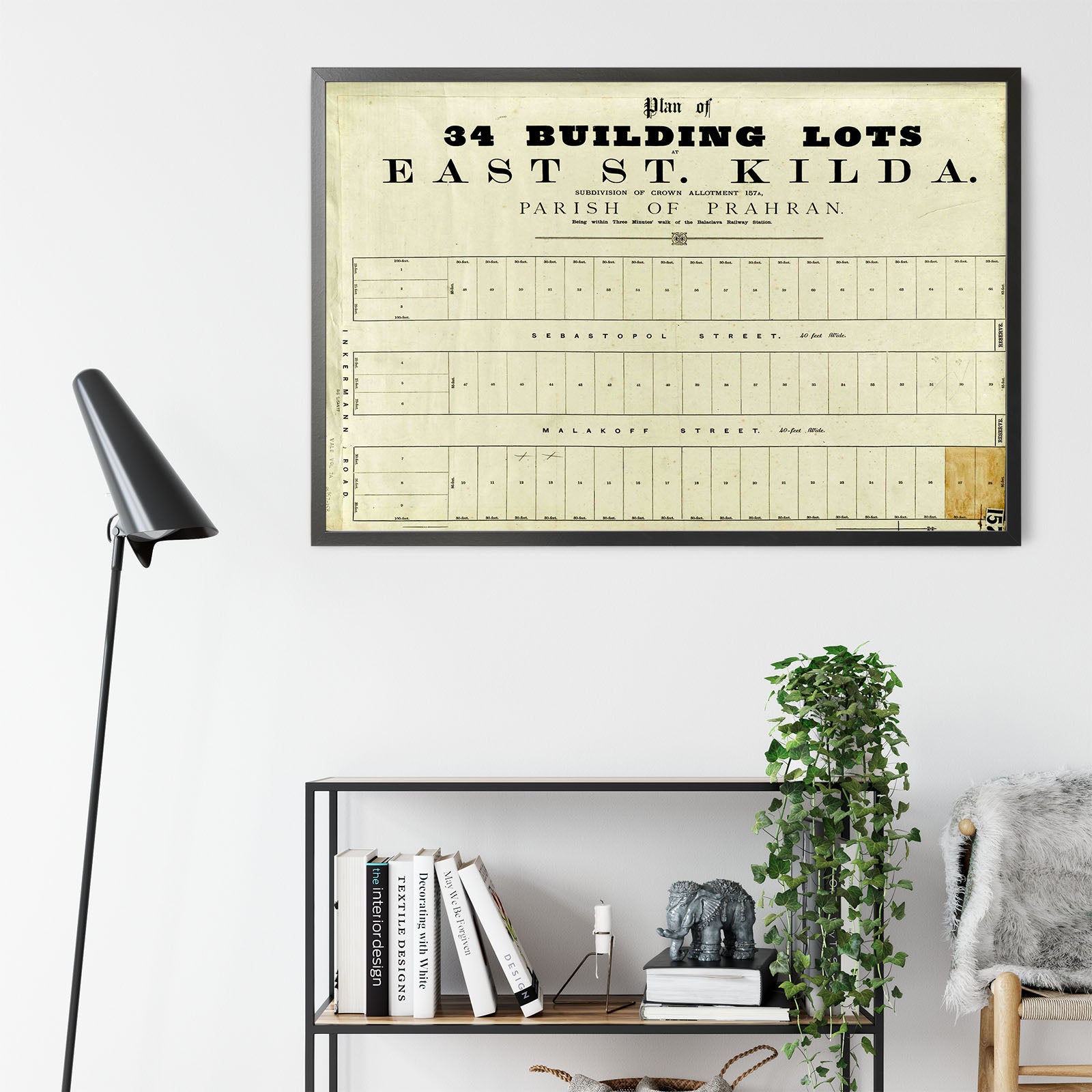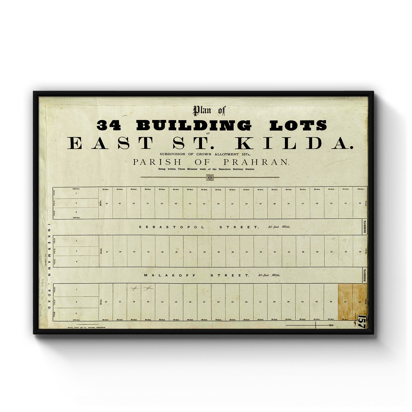 Plan of 34 buidling lots, East St. Kilda [cartographic material]. 185-?] "Subdivision of crown allotment 157A".