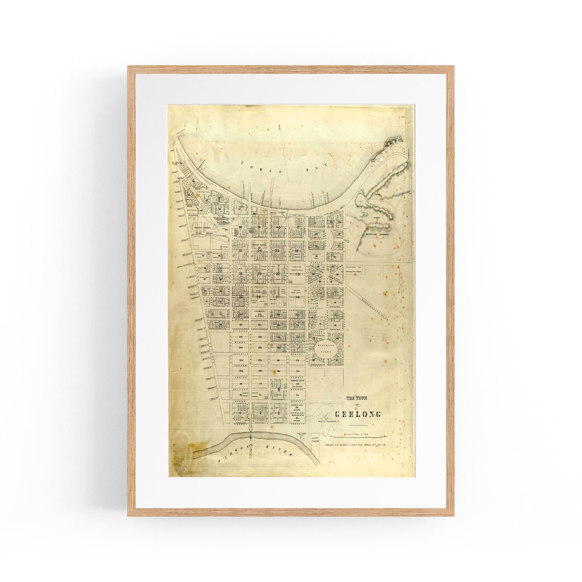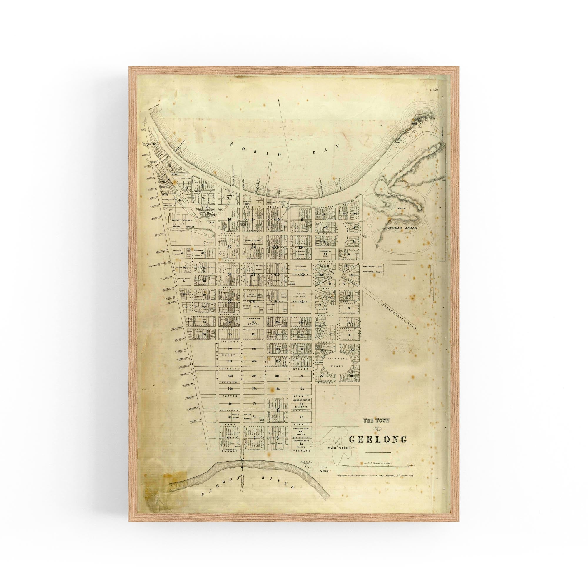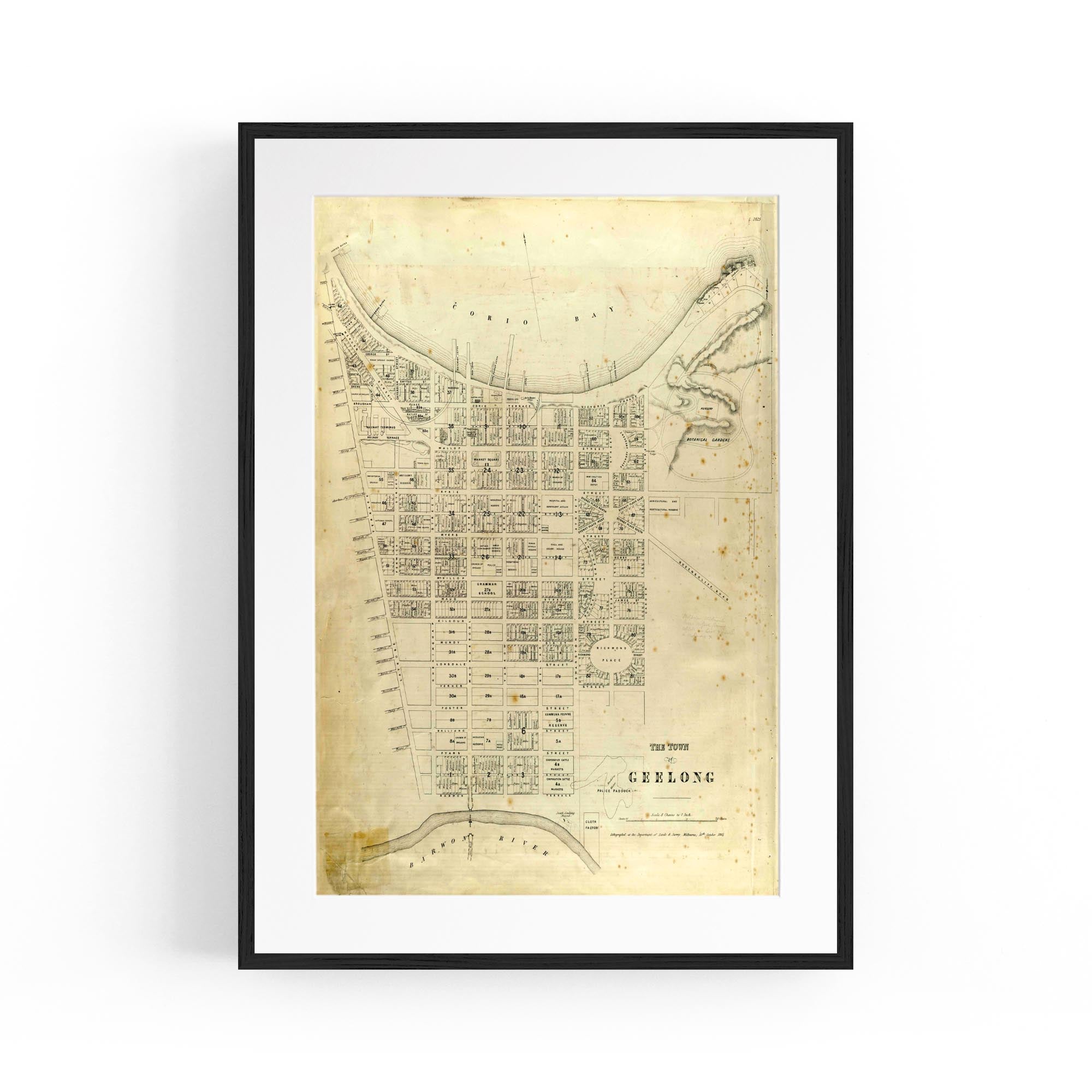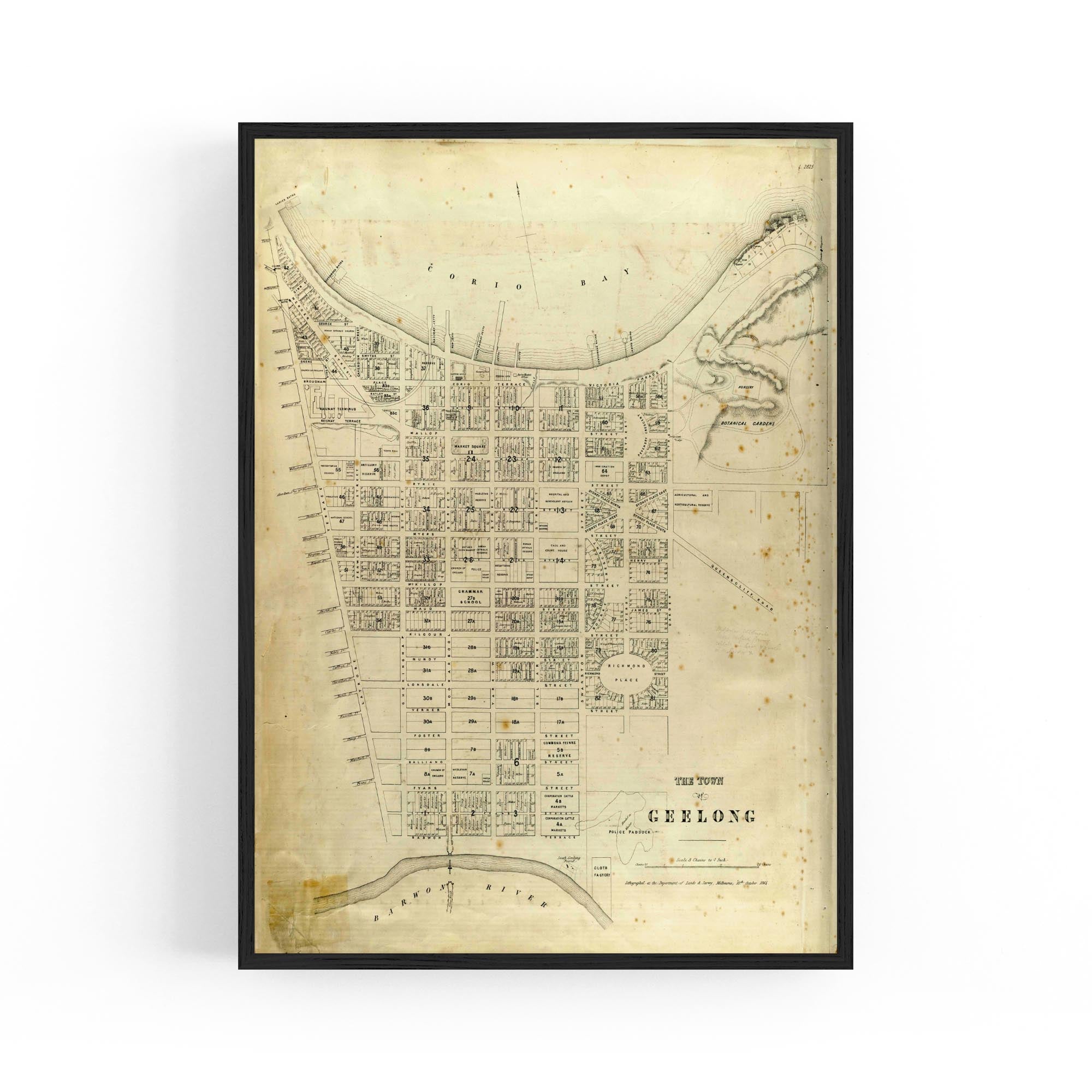 1865 Vintage Map of Geelong, Victoria