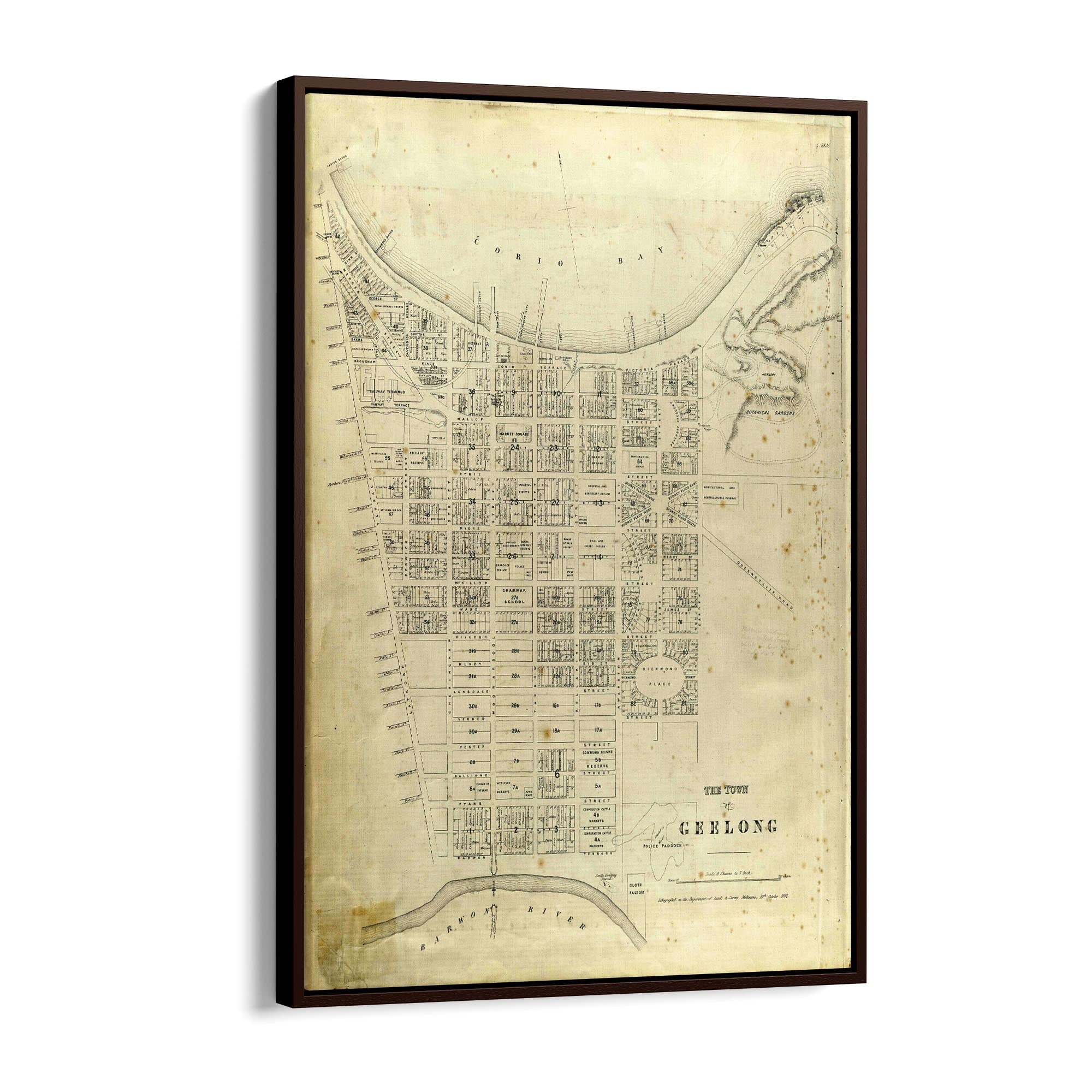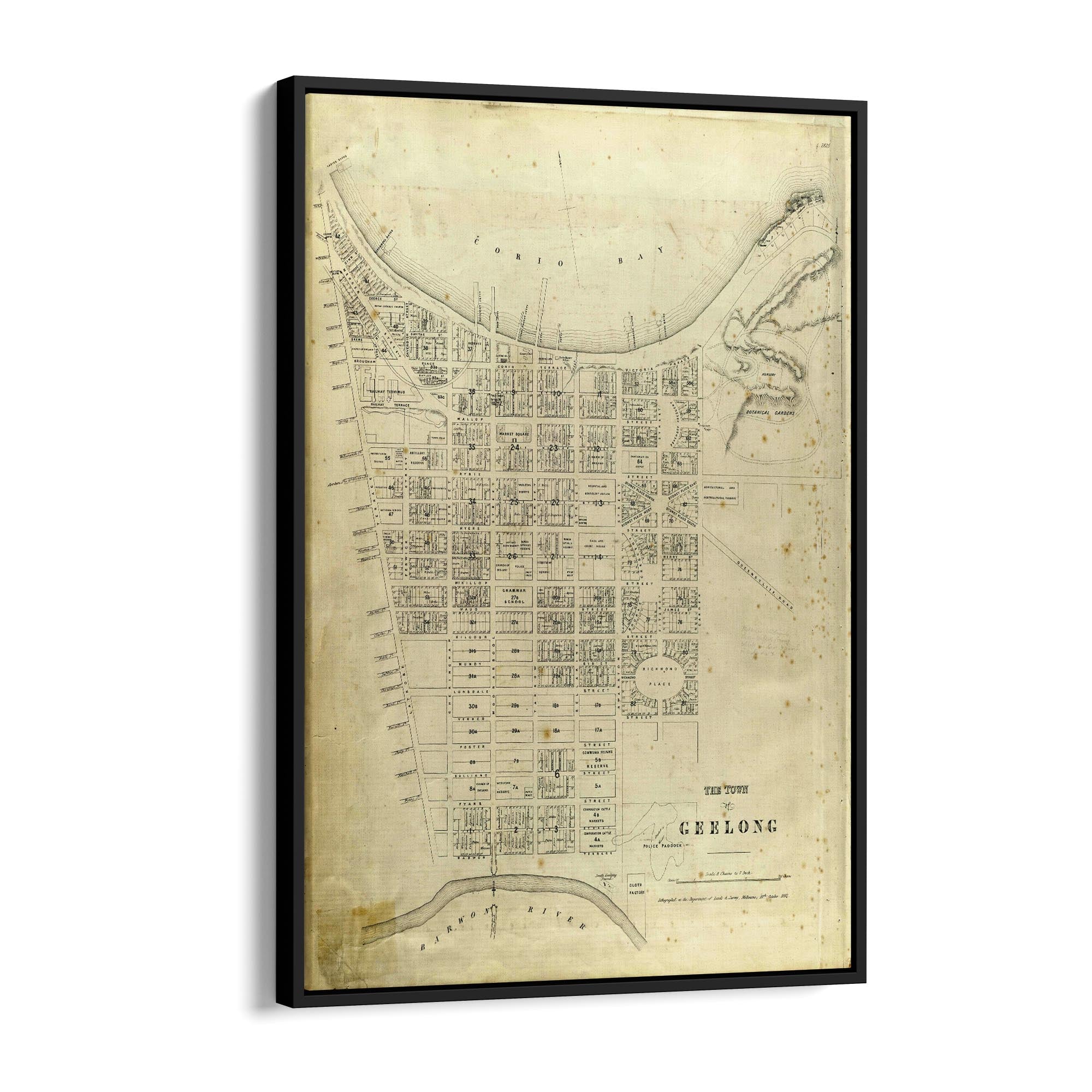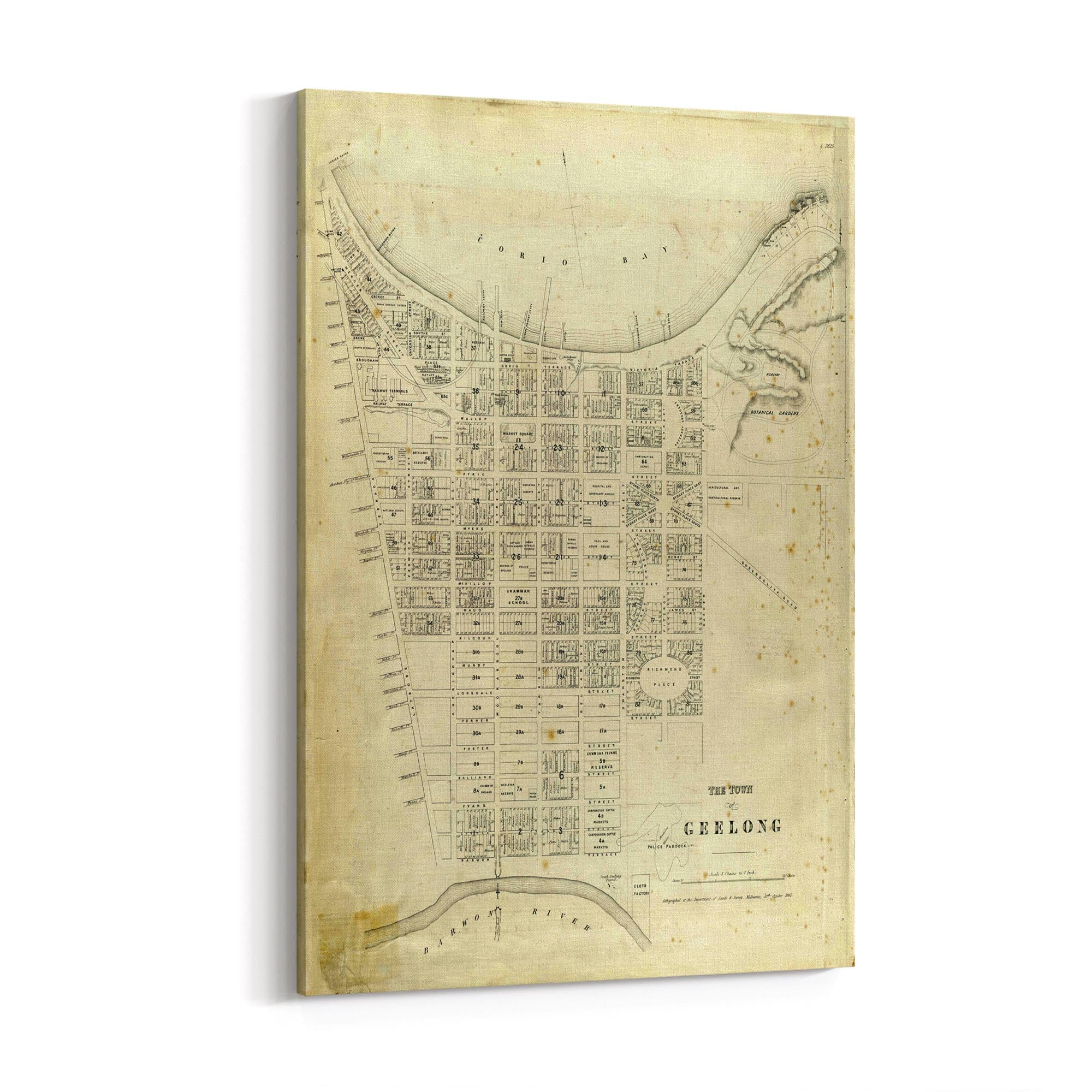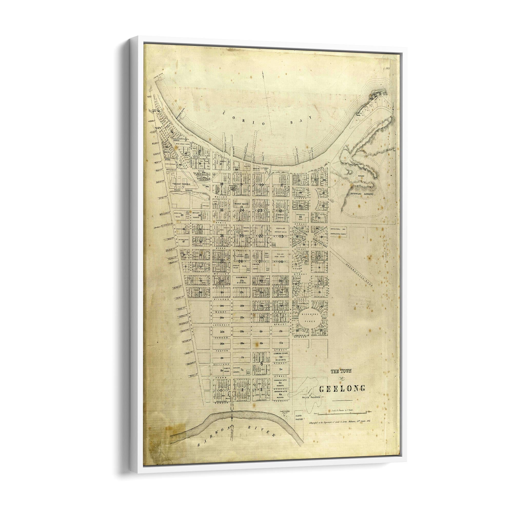 1865 Vintage Map of Geelong, Victoria