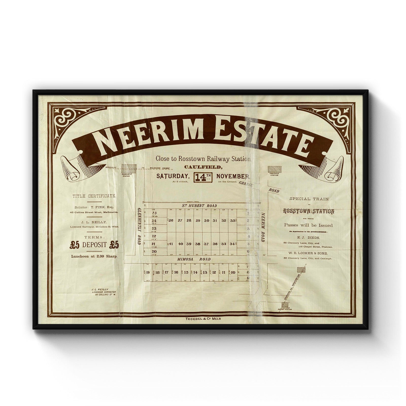 Neerim estate [cartographic material]. 1885 "Close to Rosstown Railway Station".