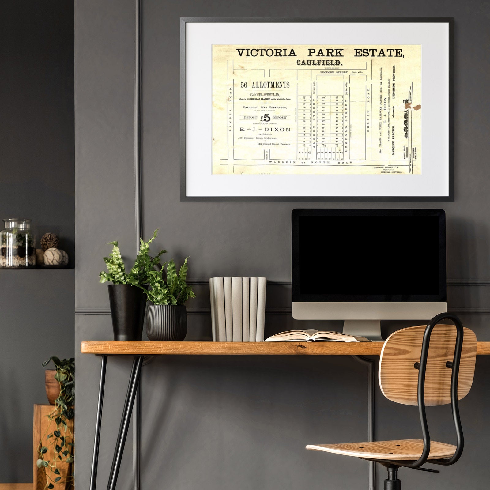 Recently moving to Harcourt and being interested in the history of the area, it seemed fitting to purchase a vintage map of the area which is displayed on our kitchen wall for us to study easily, identifying the block of land we bought. Nicely framed too.