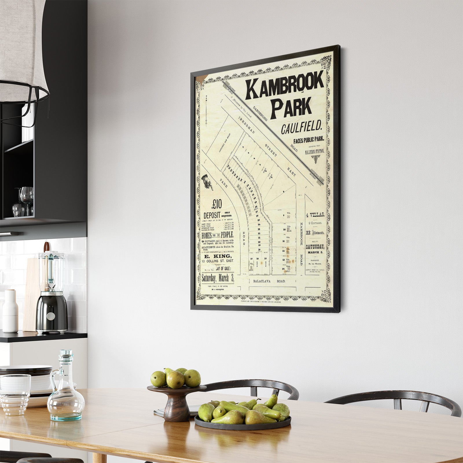 Recently moving to Harcourt and being interested in the history of the area, it seemed fitting to purchase a vintage map of the area which is displayed on our kitchen wall for us to study easily, identifying the block of land we bought. Nicely framed too.