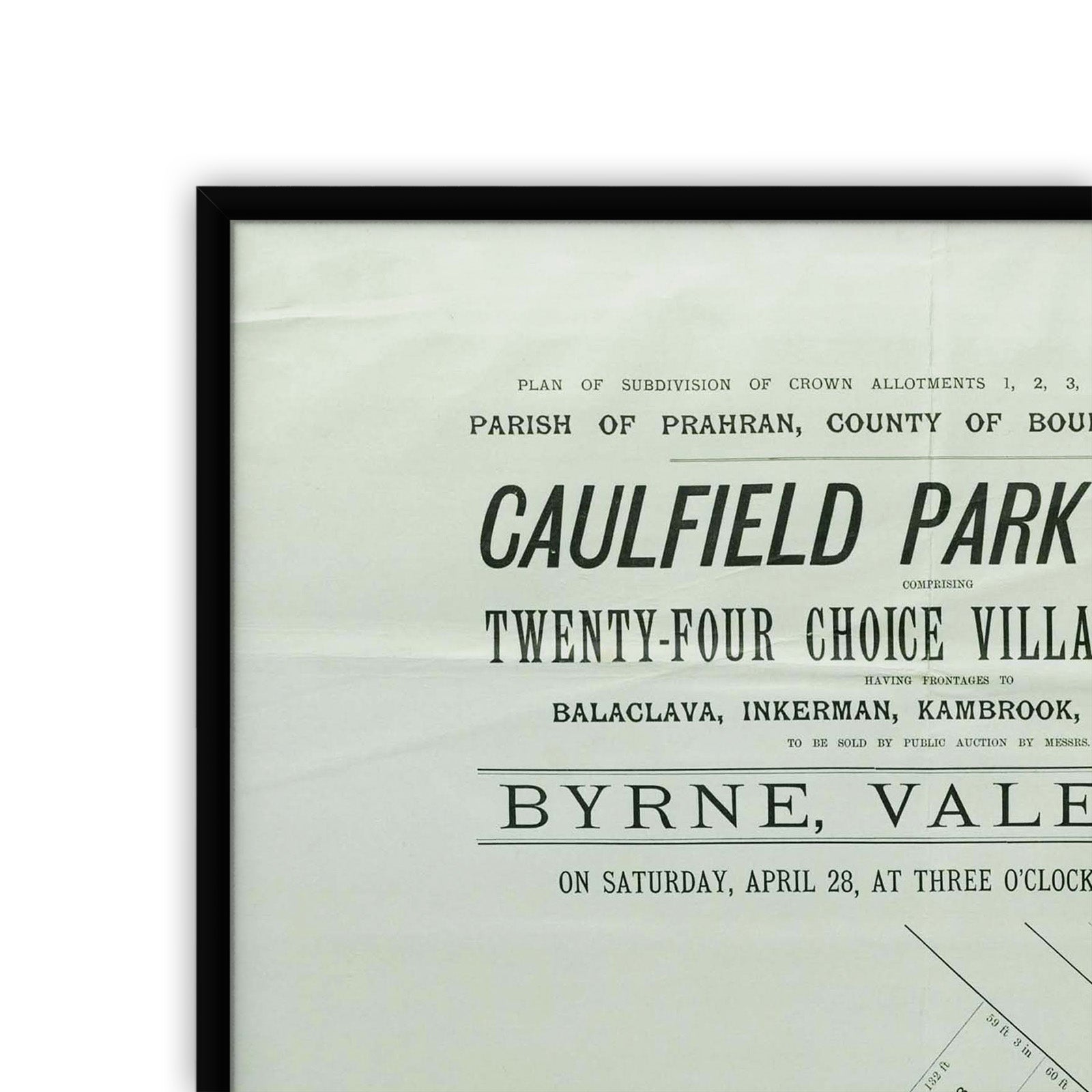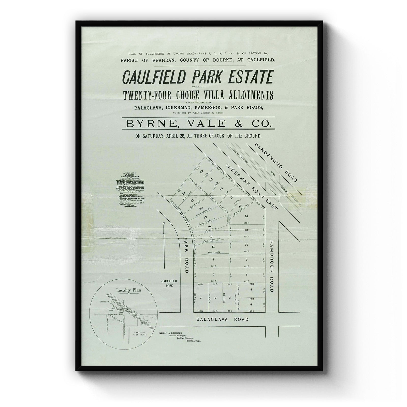 "To be sold by public auction by Messrs. Byrne, Vale & Co. on Saturday, April 28, at three o'clock, on the ground.";