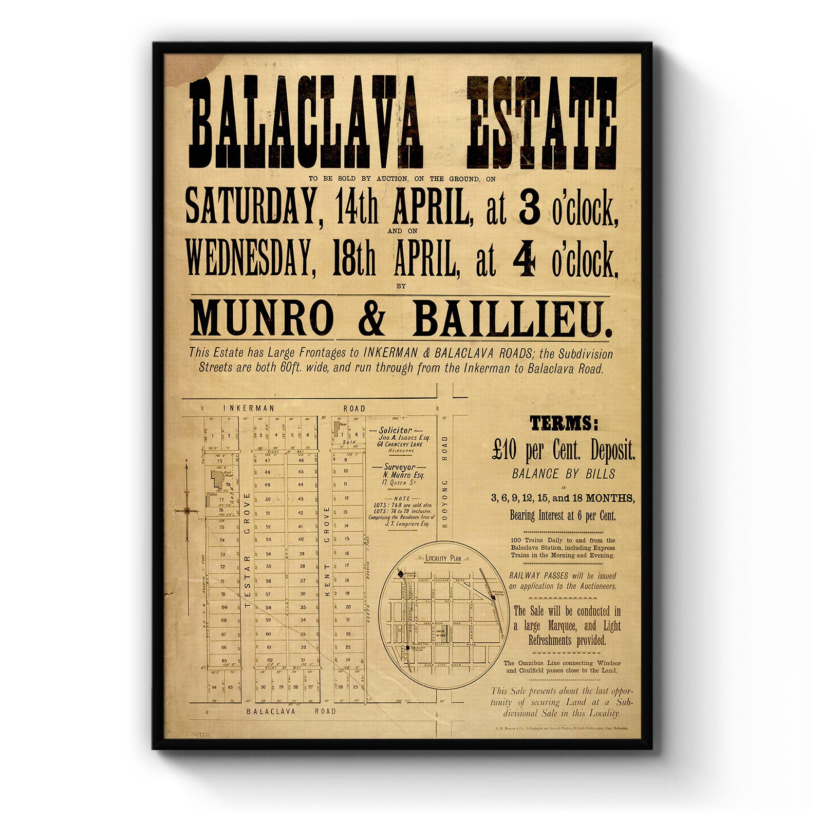 Balaclava Estate [cartographic material]. [1883 or 1888] Includes locality plan.