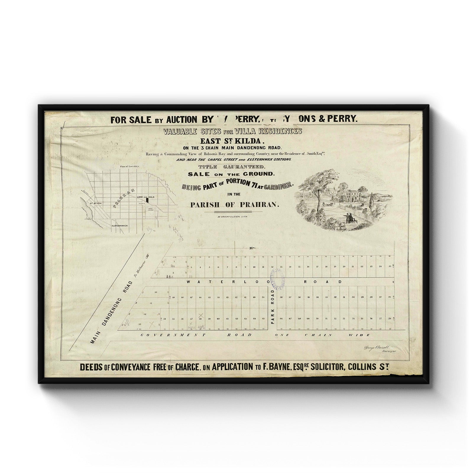 Valuable sites for villa residences East St Kilda [cartographic material]. [185-] Parish plan.; Parish of Prahran.