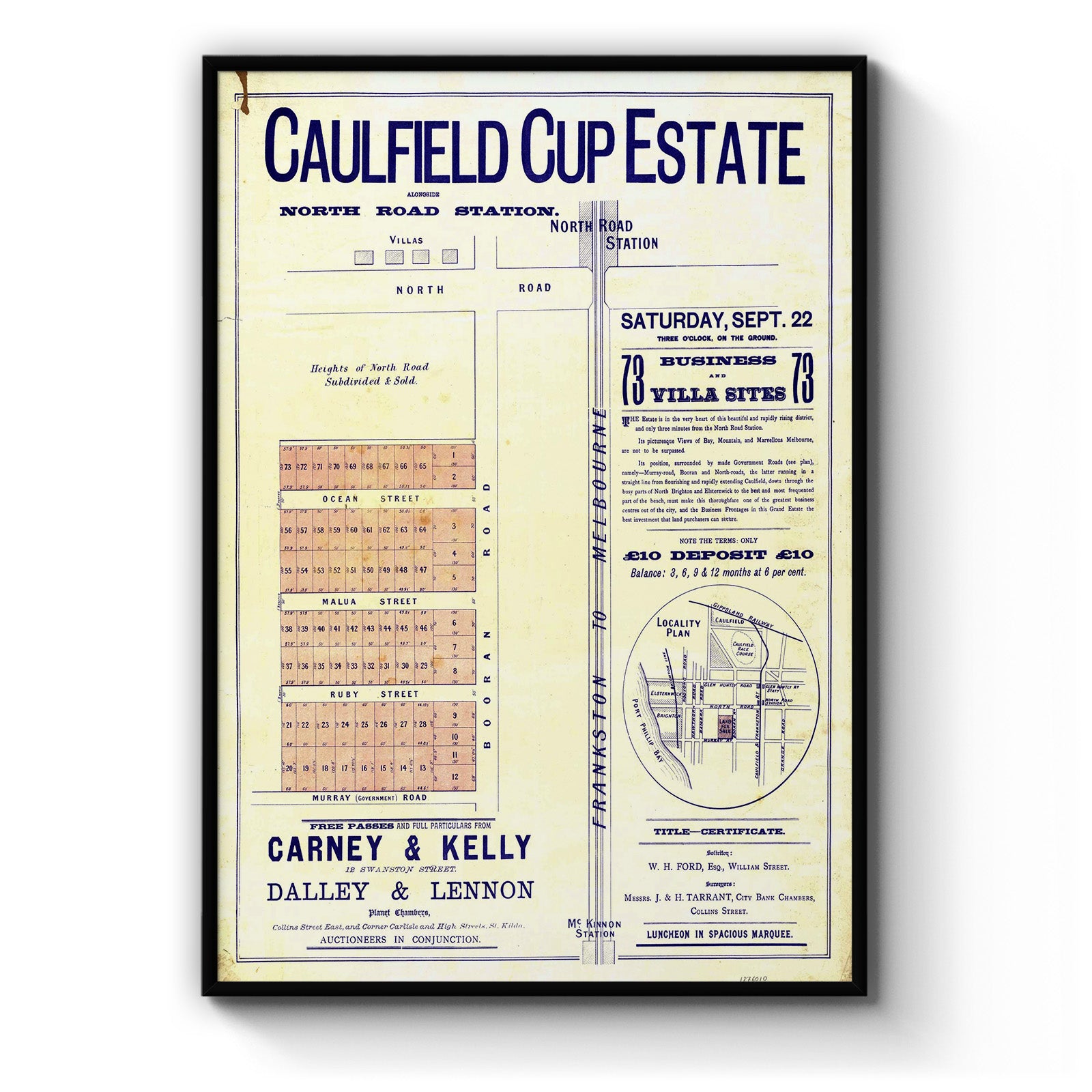Caulfield Cup Estate [cartographic material]. [1888?] Includes locality plan.