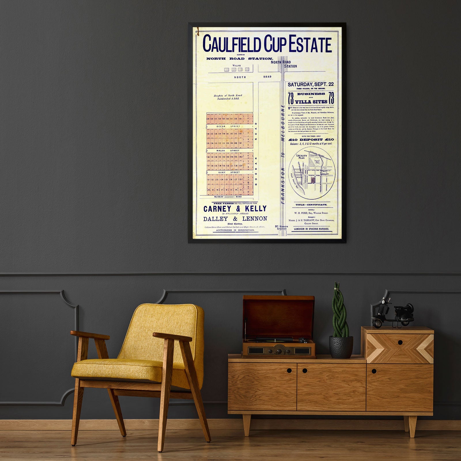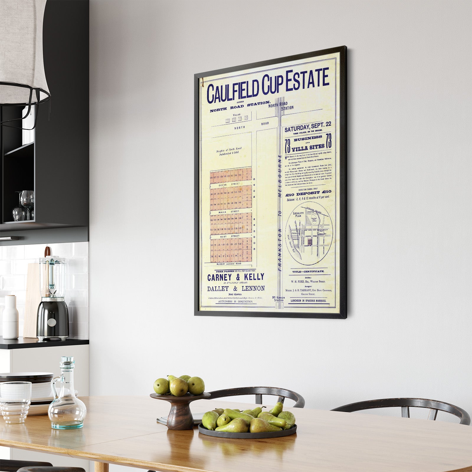 Recently moving to Harcourt and being interested in the history of the area, it seemed fitting to purchase a vintage map of the area which is displayed on our kitchen wall for us to study easily, identifying the block of land we bought. Nicely framed too.