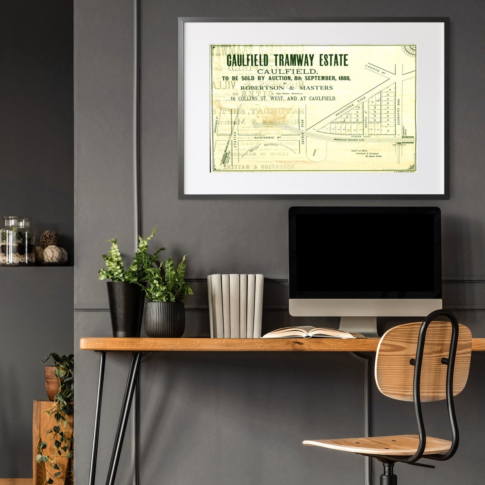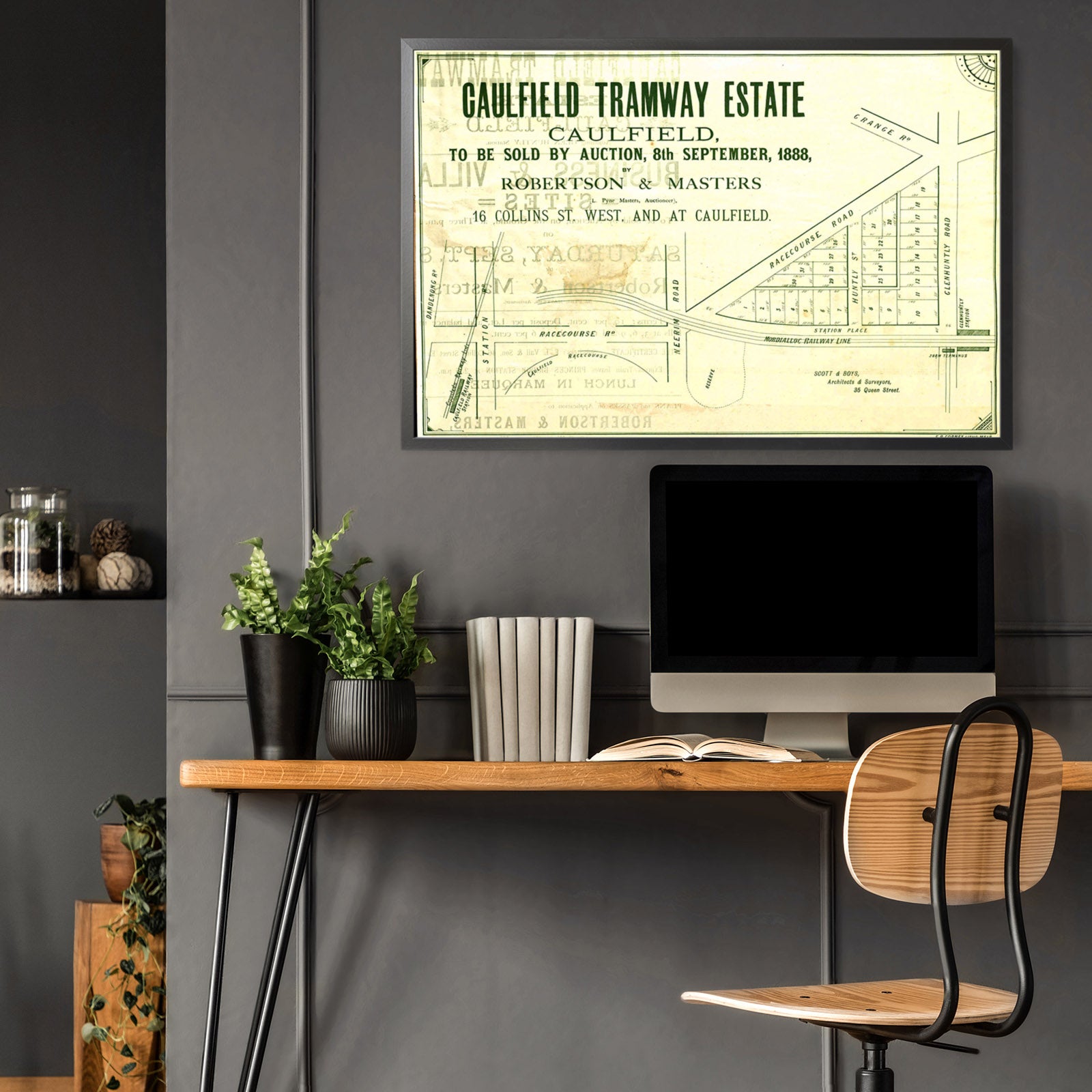 Recently moving to Harcourt and being interested in the history of the area, it seemed fitting to purchase a vintage map of the area which is displayed on our kitchen wall for us to study easily, identifying the block of land we bought. Nicely framed too.