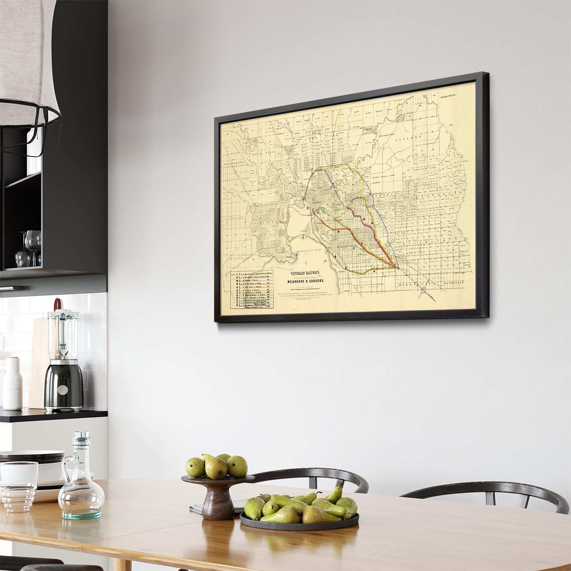 Recently moving to Harcourt and being interested in the history of the area, it seemed fitting to purchase a vintage map of the area which is displayed on our kitchen wall for us to study easily, identifying the block of land we bought. Nicely framed too.