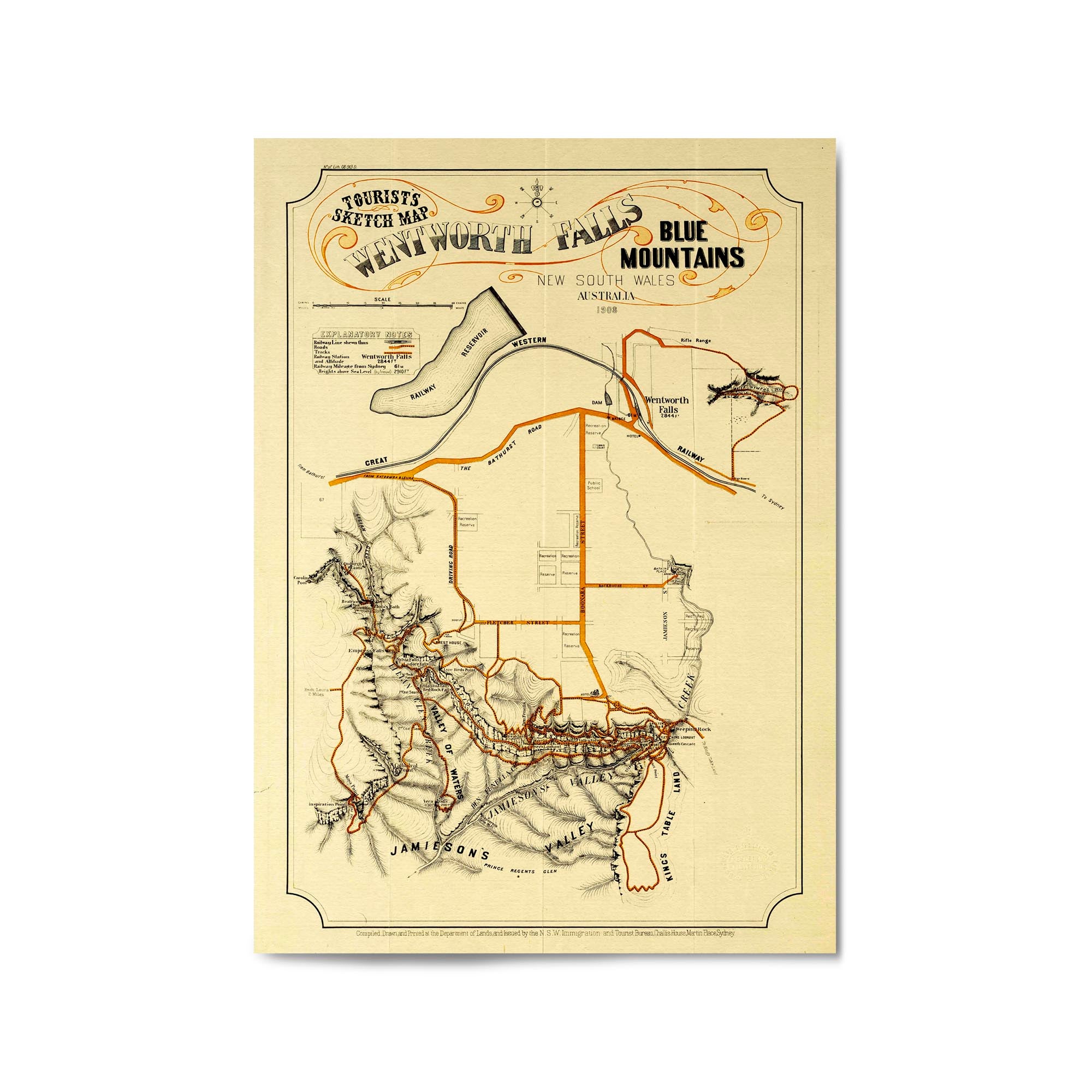 1908 Tourist Map of Wentworth Falls, The Blue Mountains, New South Wales