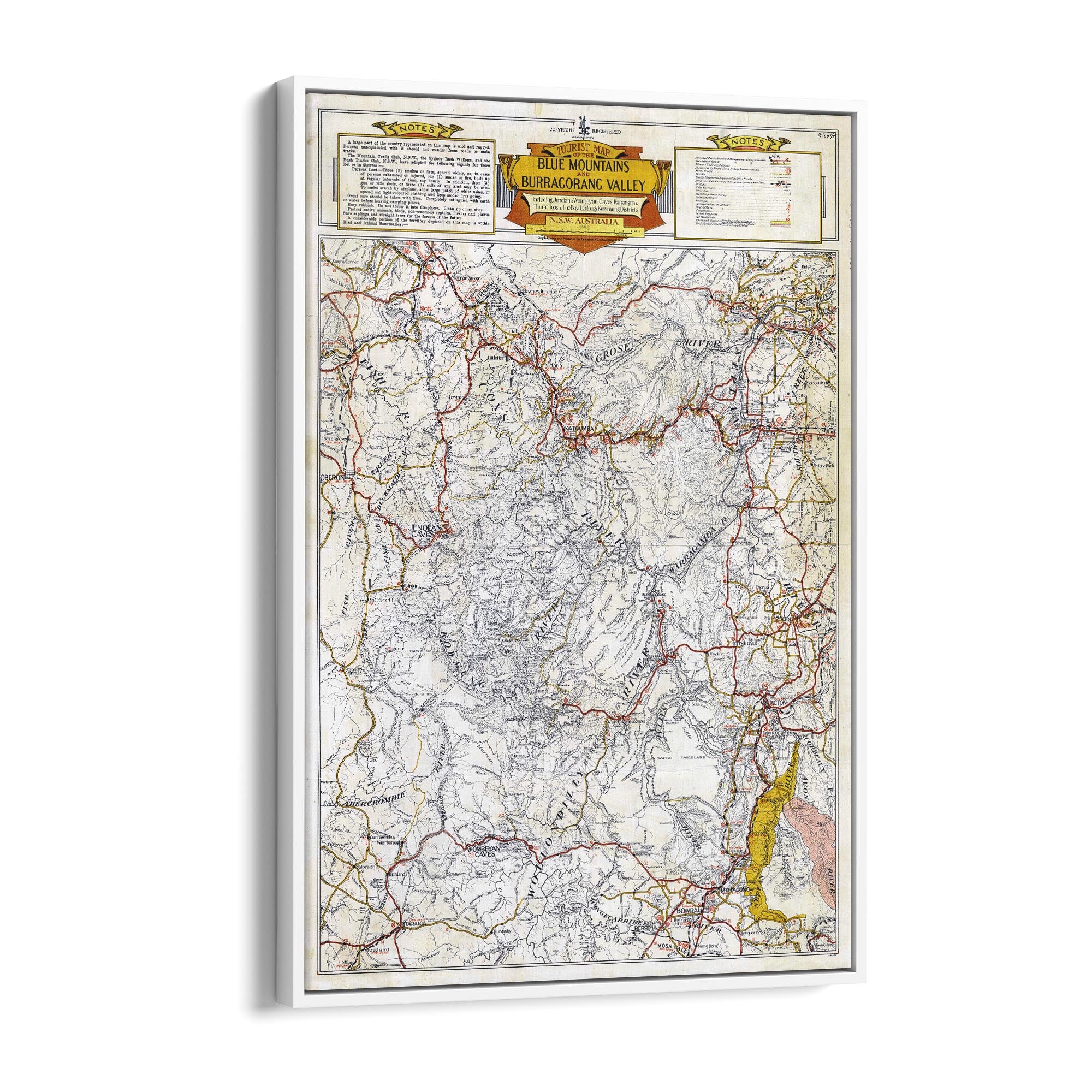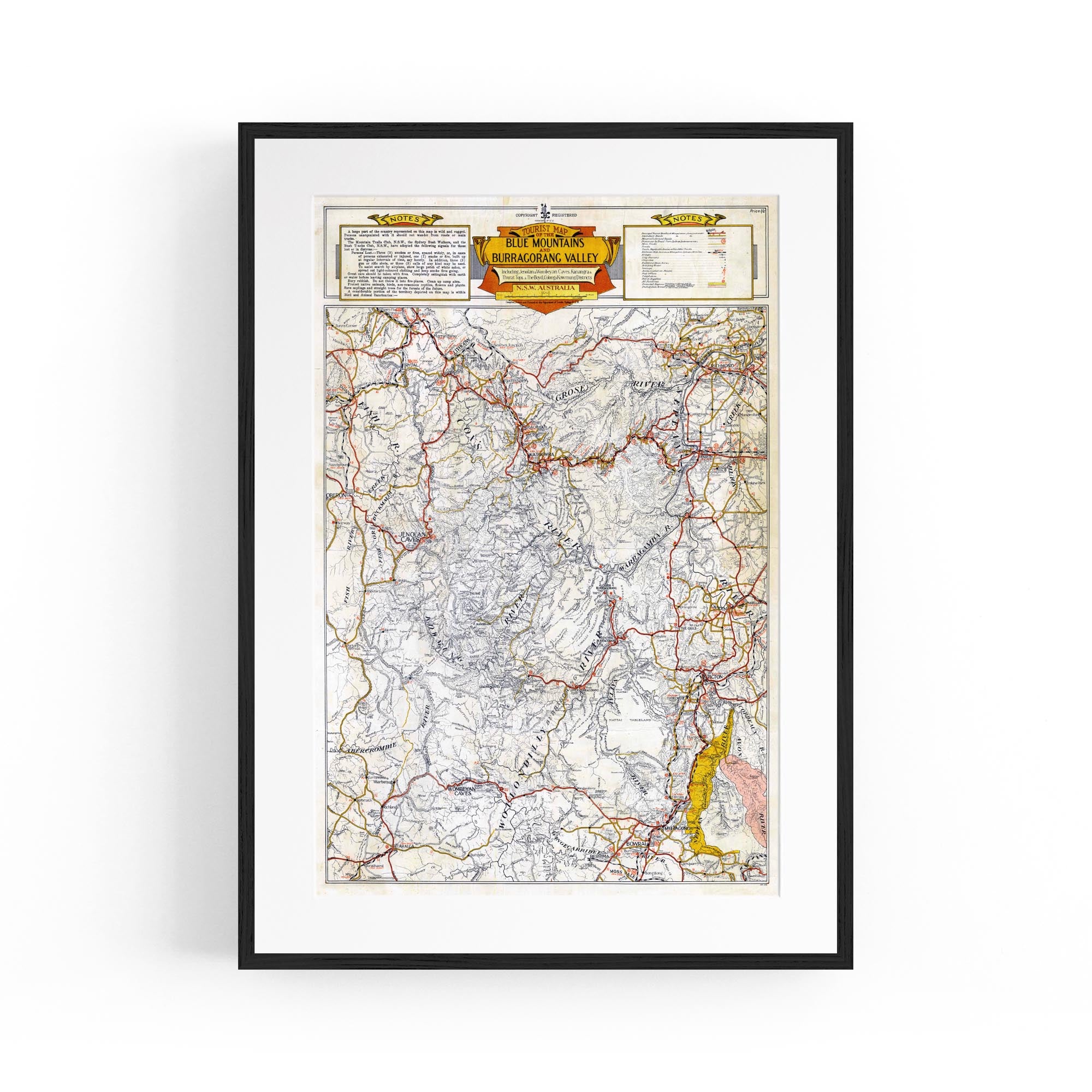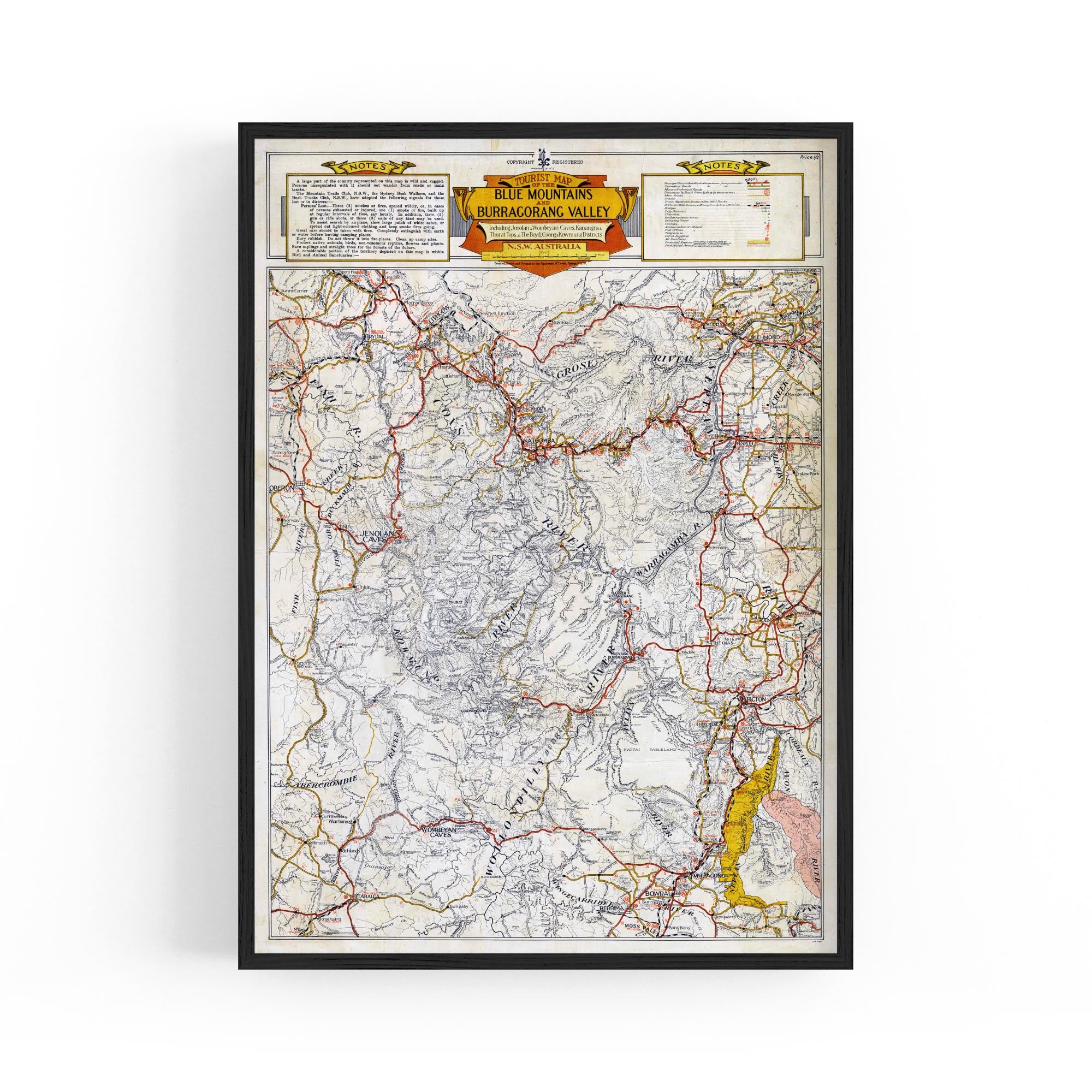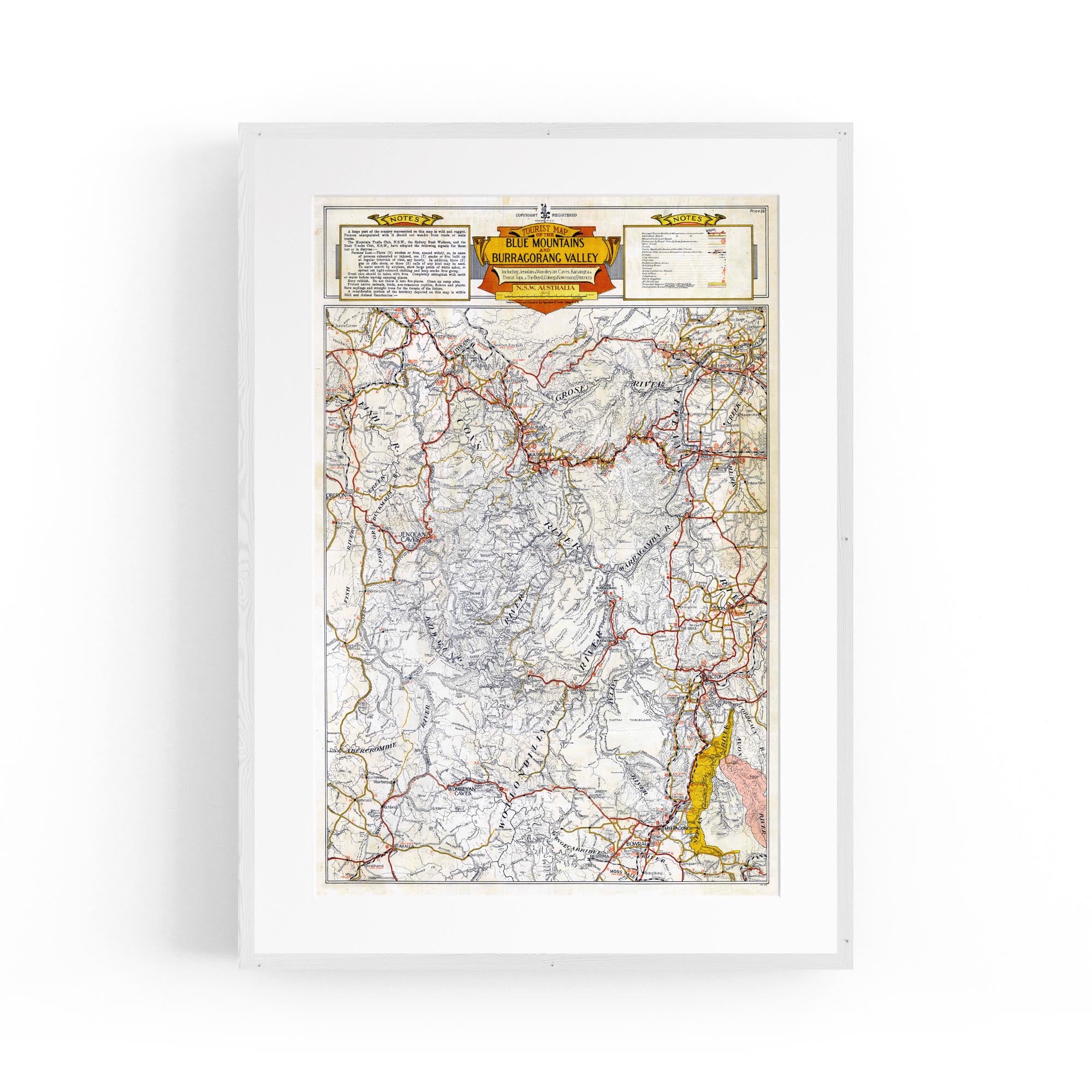 Tourist Map of Blue Mountains and Burragorang Valley, New South Wales, including Jenolan and Wombeyan Caves, Kanangra and Thurat Tops, and The Boyd, Colong, and Kowmung Districts of New South Wales. Shows roads, tracks, railways and buildings. Relief shown by hachures and elementary mountain drawing.