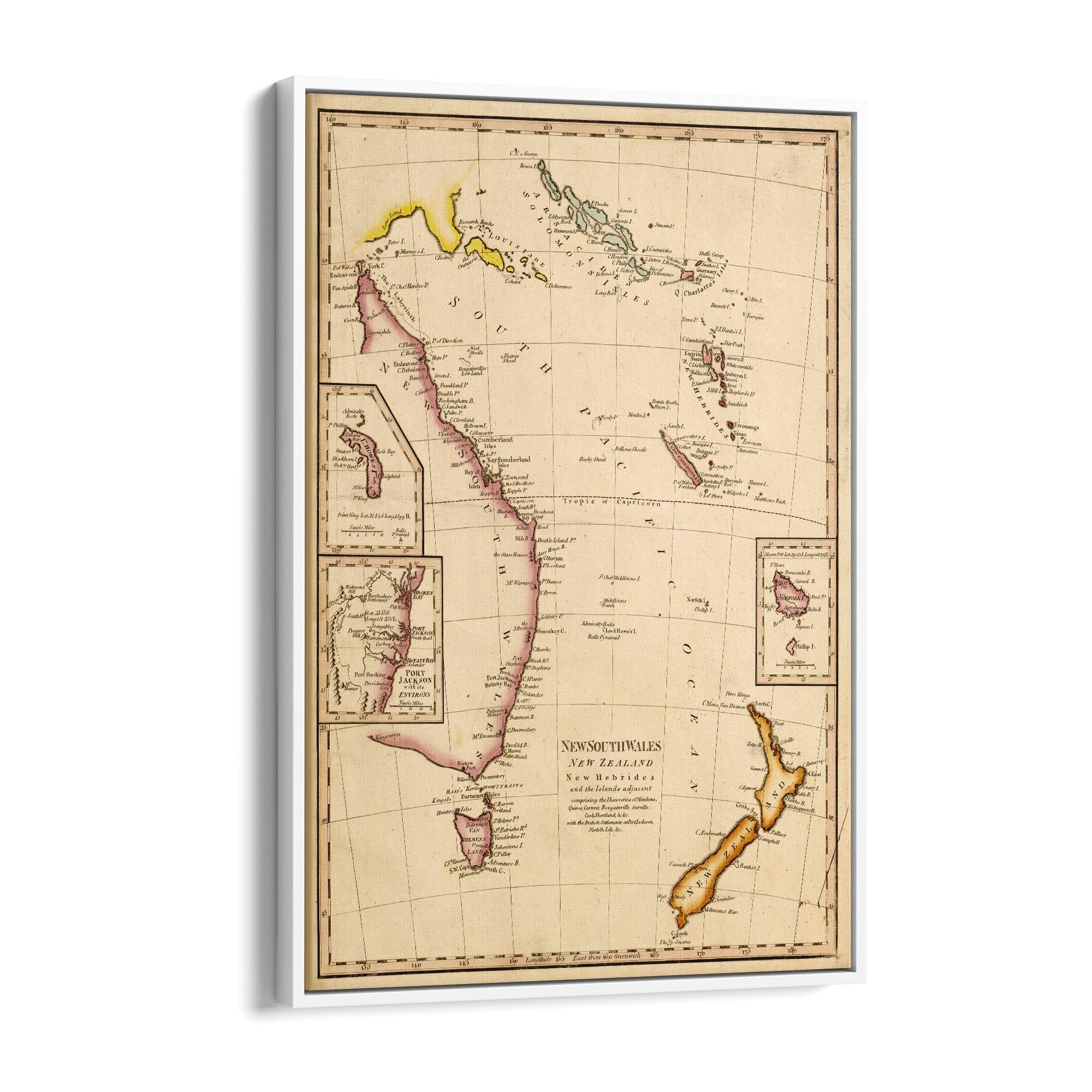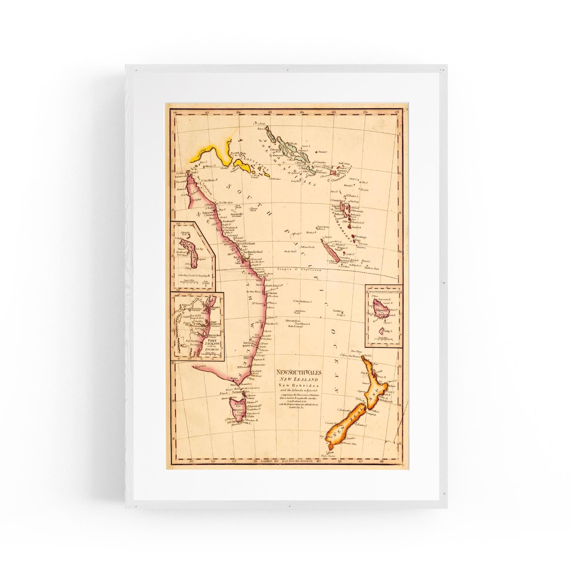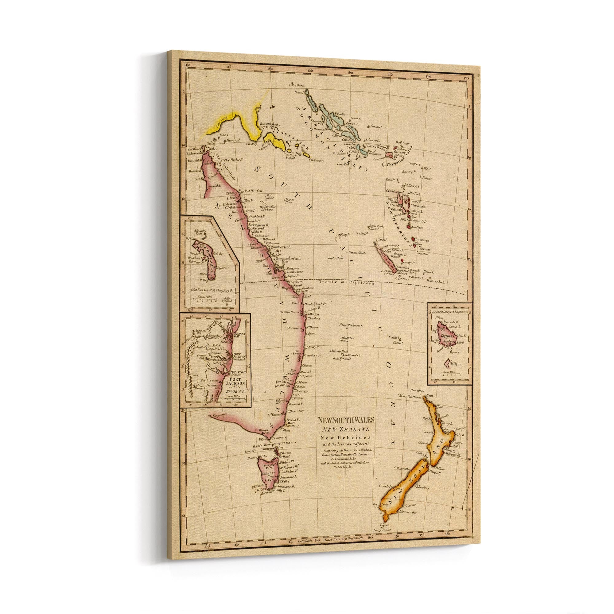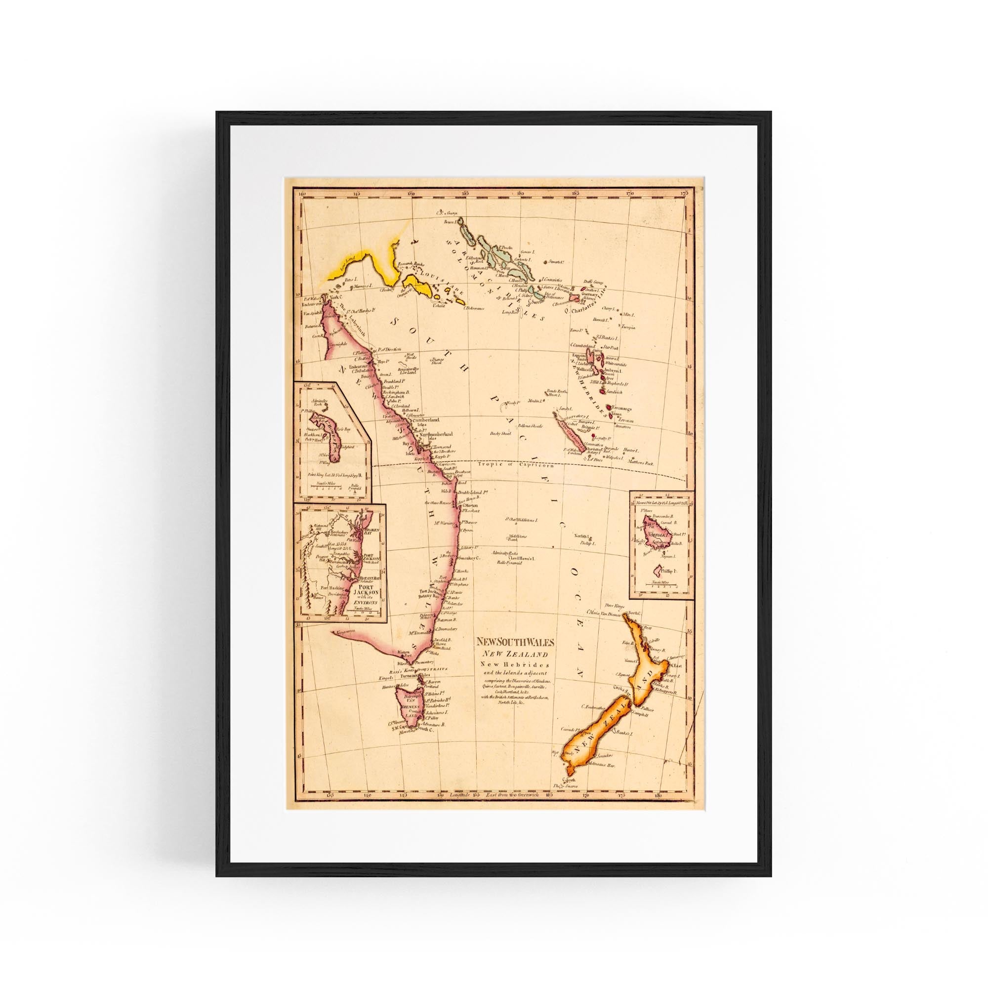 New South Wales, New Zealand, New Hebrides & New Caledonia and the islands adjacent, comprising the discoveries of Mendana, Quiros, Cartaret, Bouganville, Surville, Cook, Shortland with the British settlements at Port Jackson, Norfolk Isle, etc.