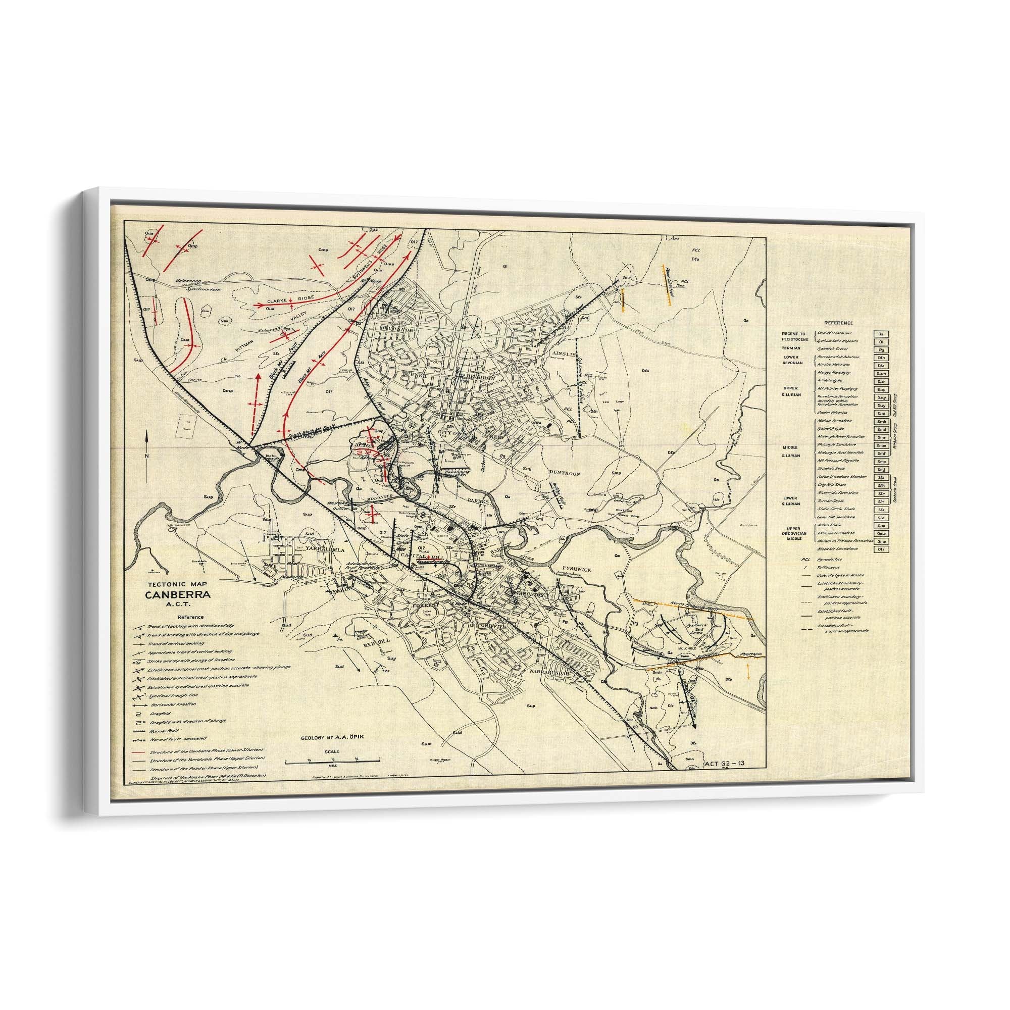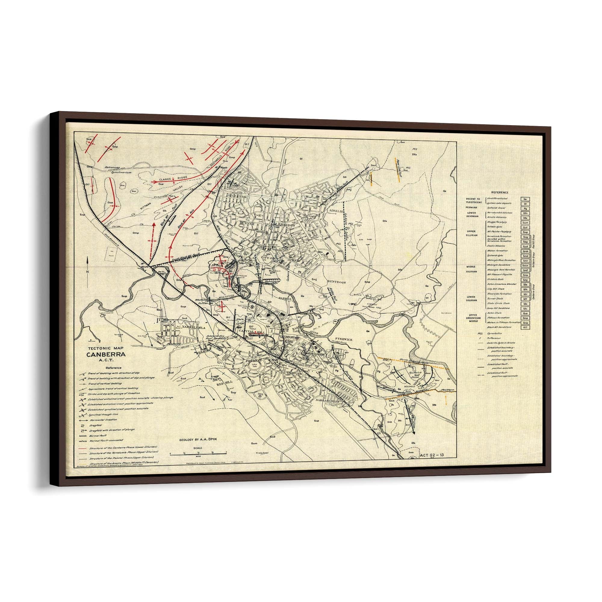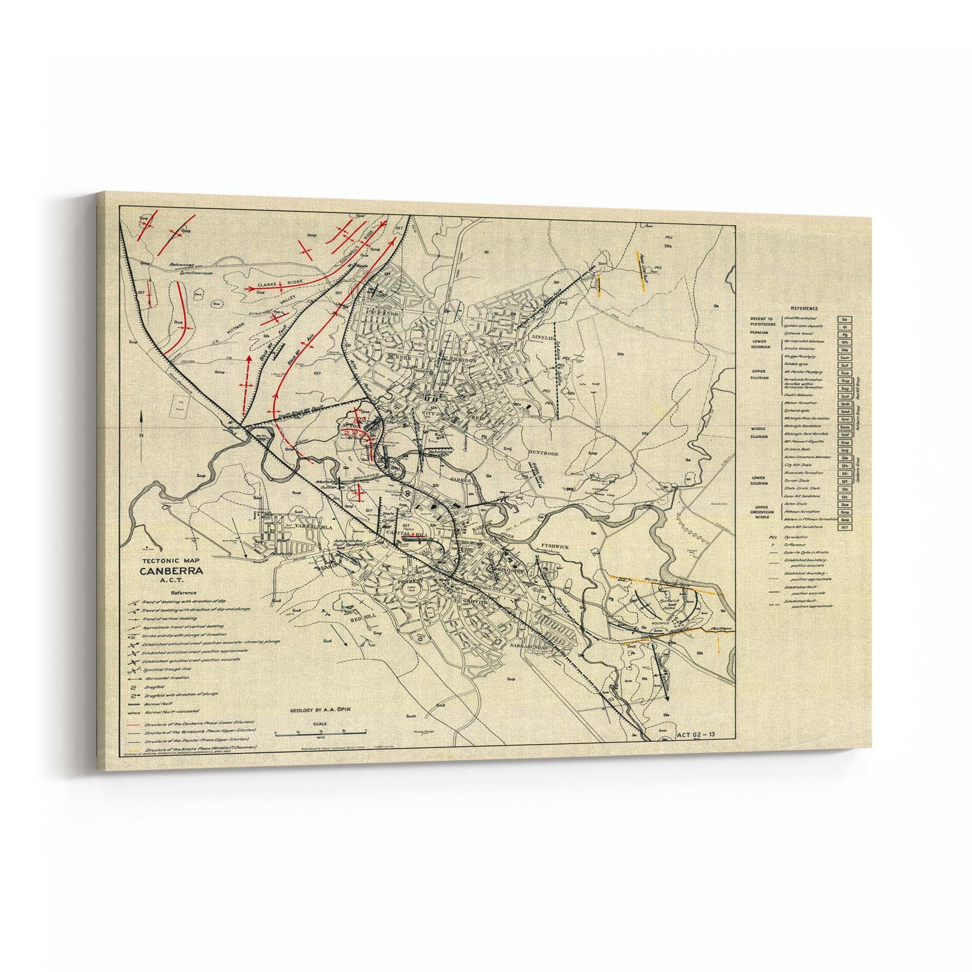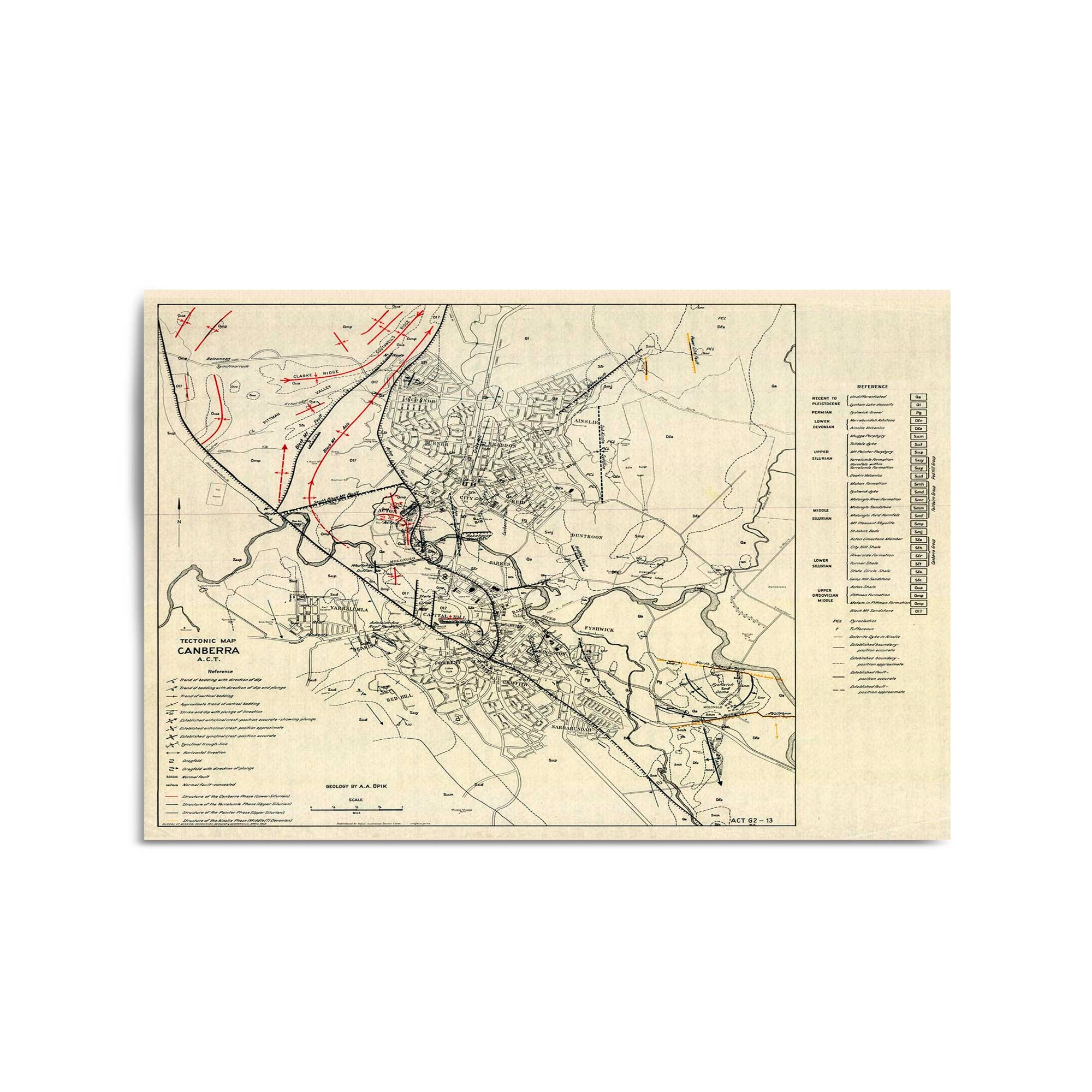1953 Tectonic Map of Canberra, Australian Capital Territory