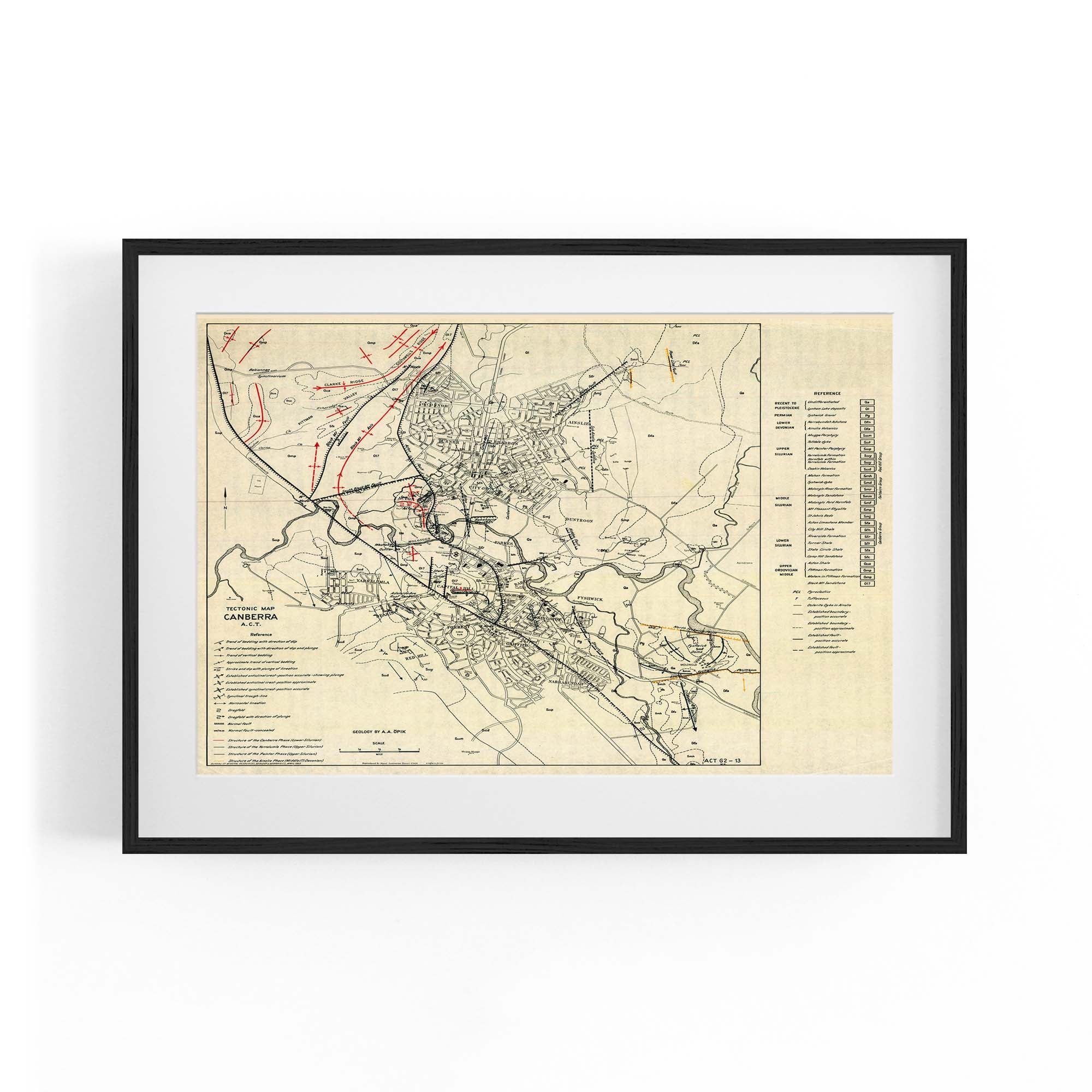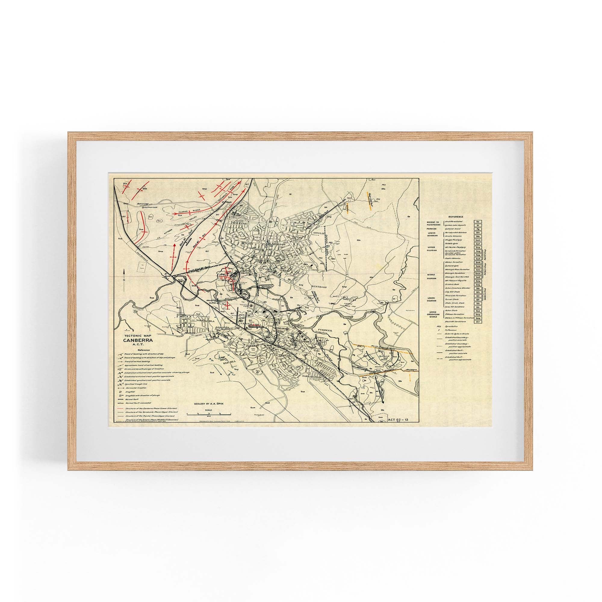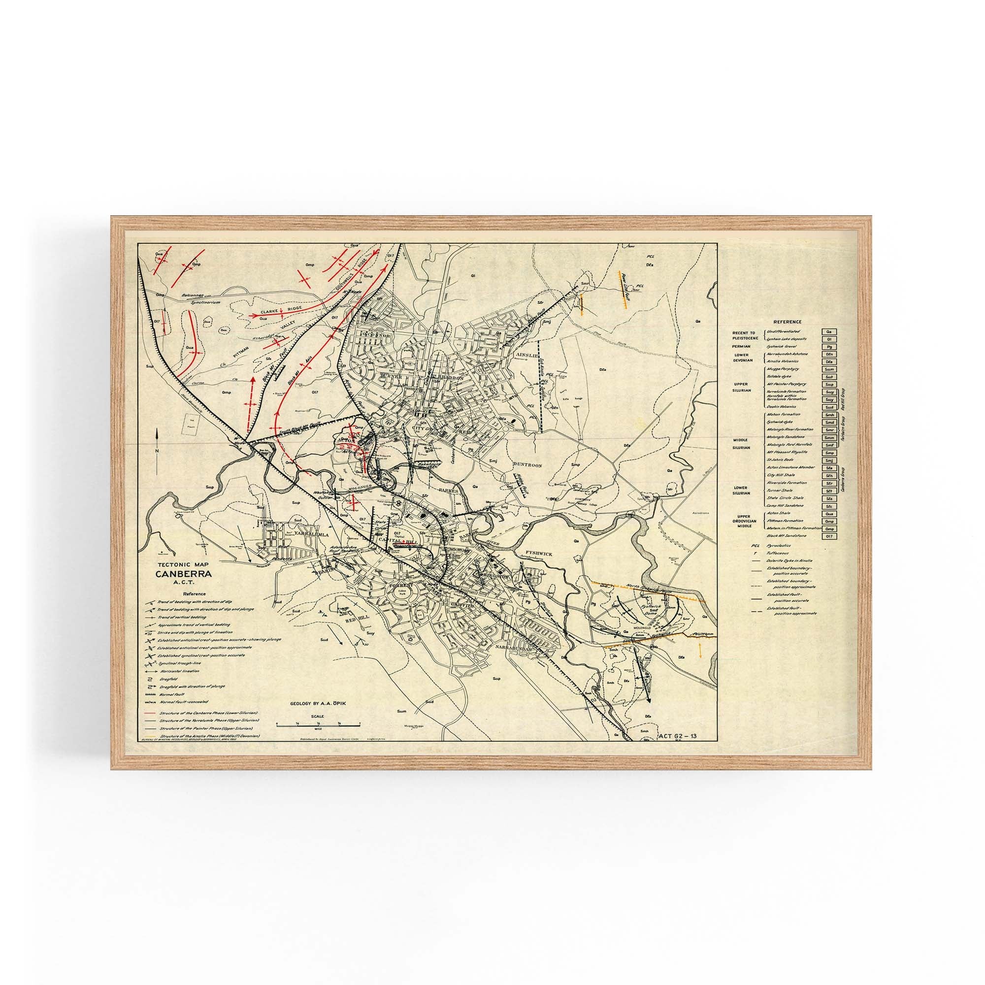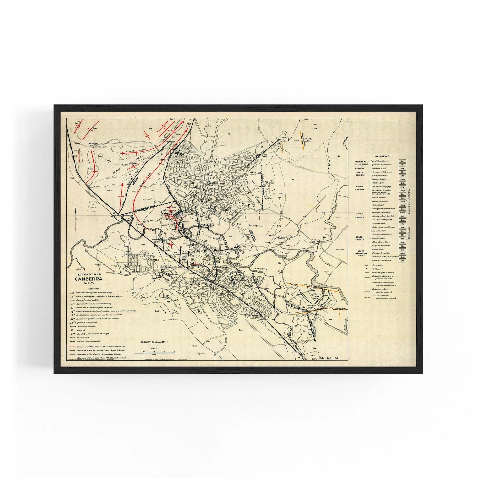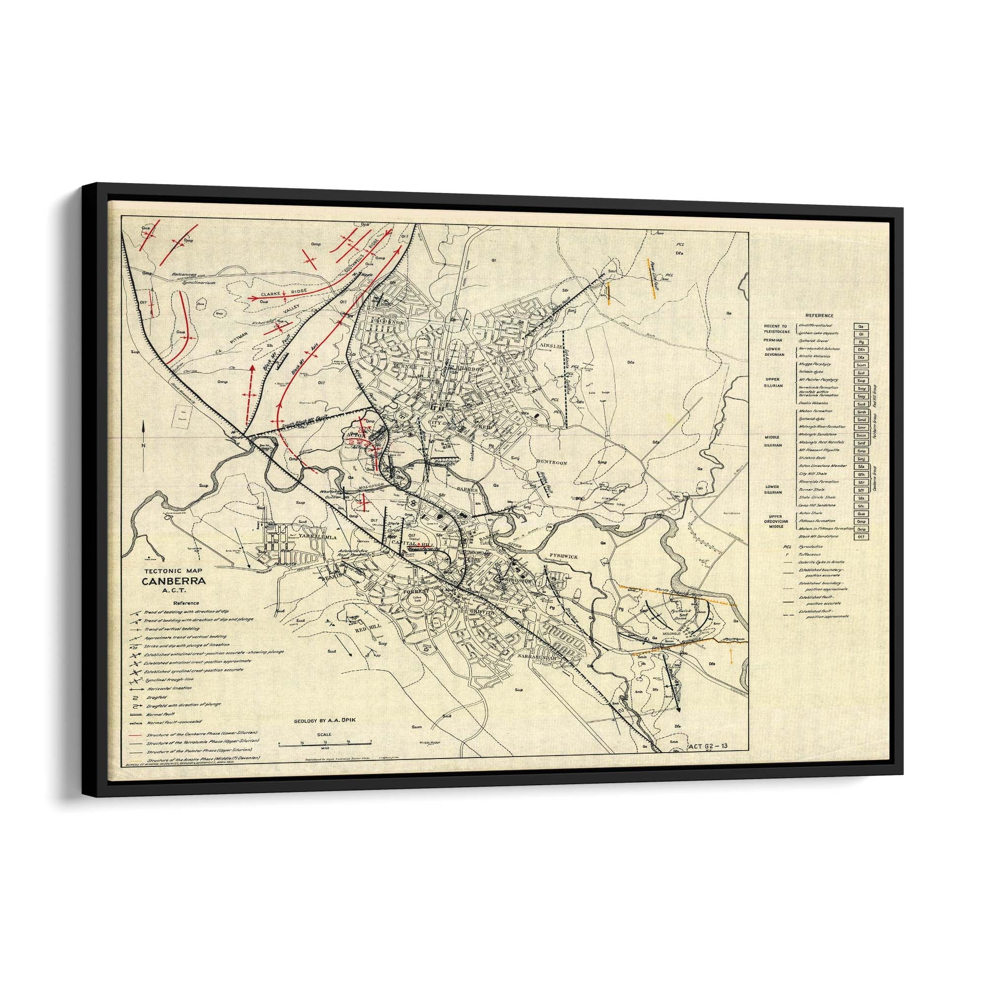 1953 Tectonic Map of Canberra, Australian Capital Territory