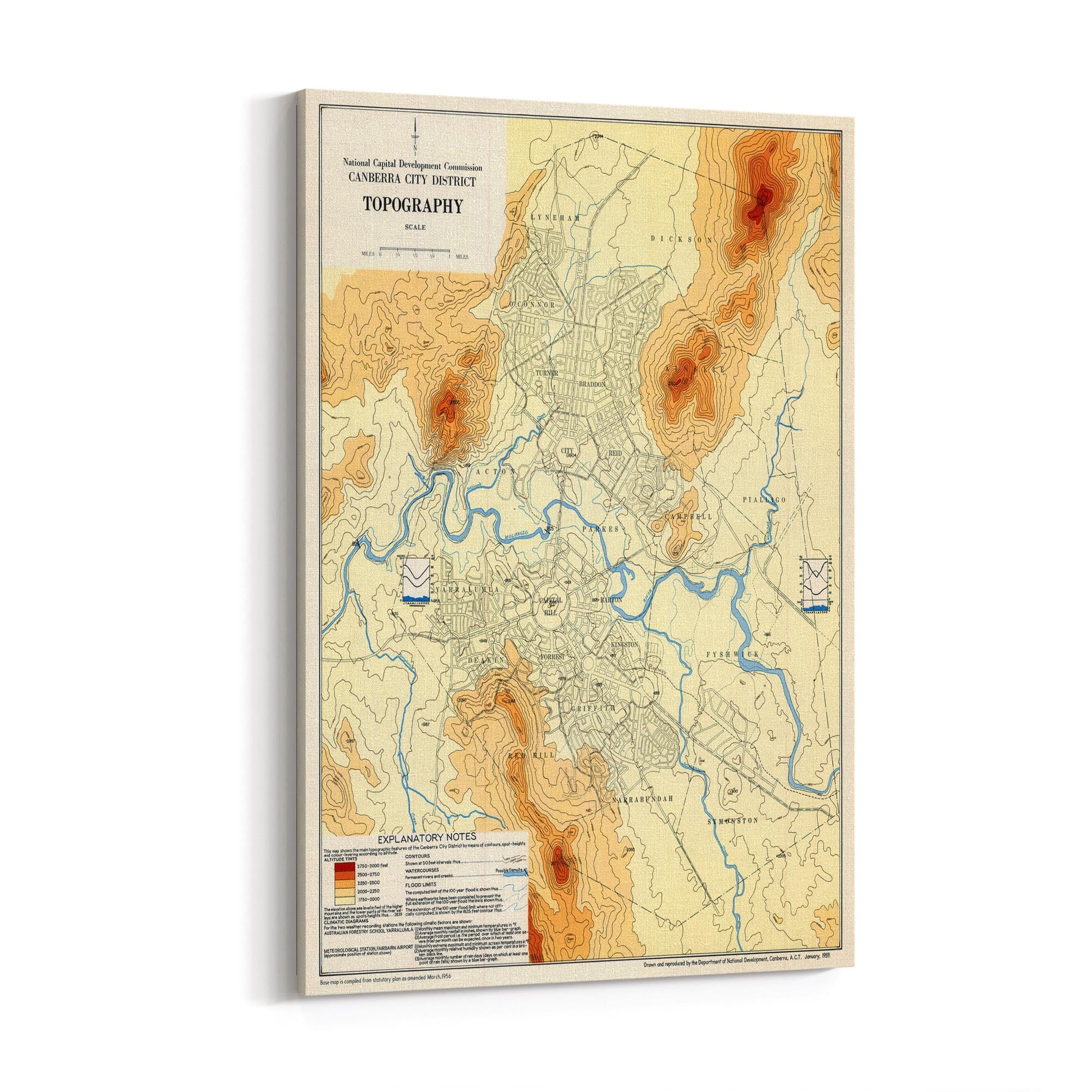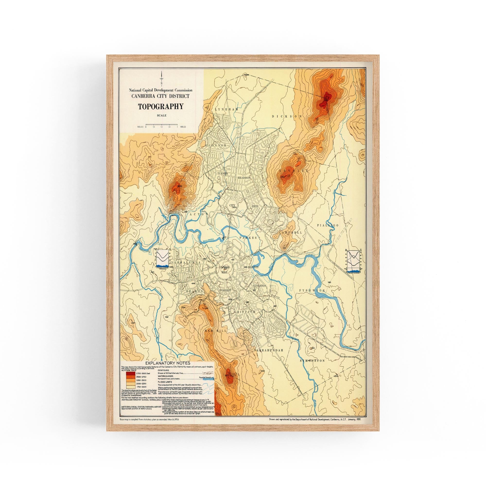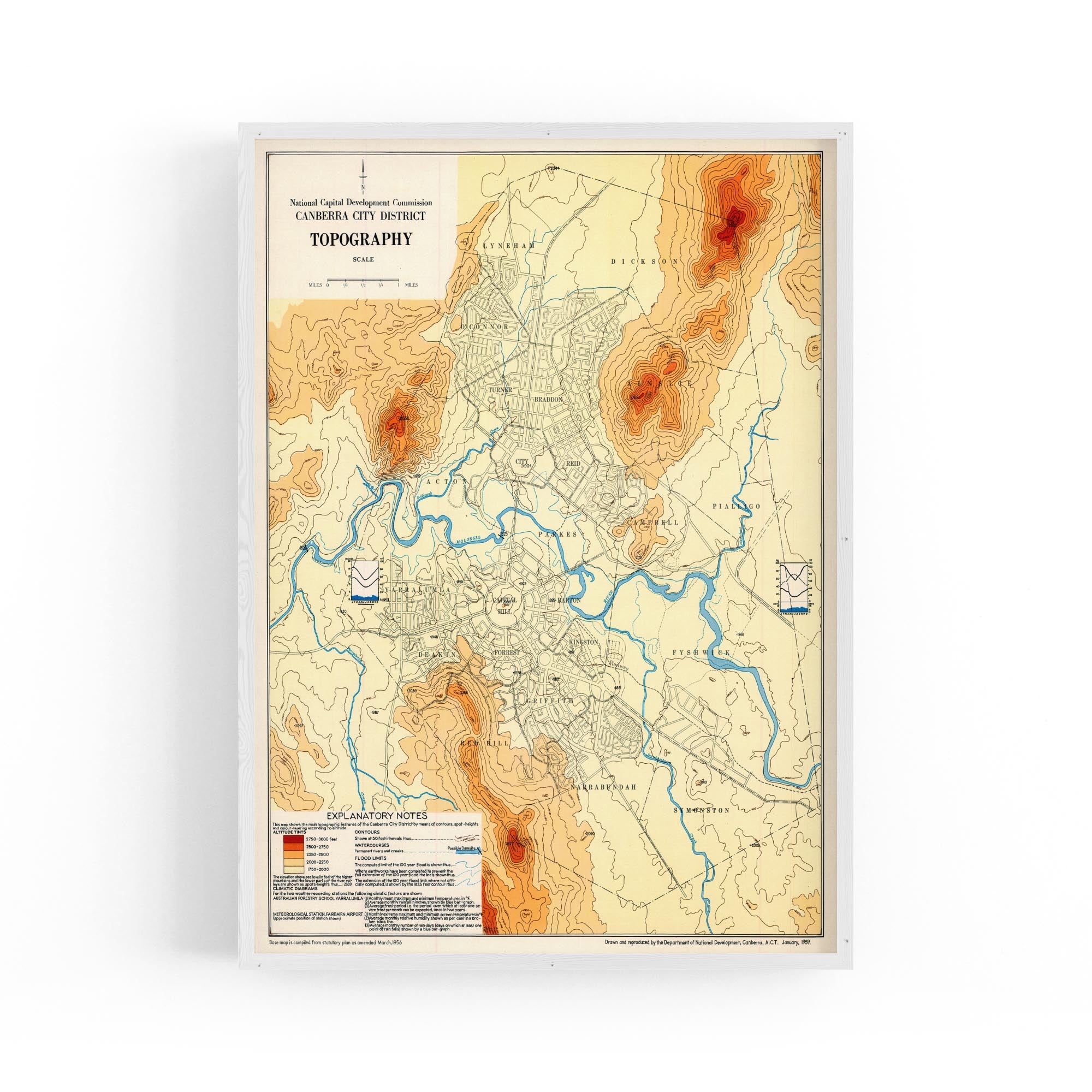 1956 Topographical Map of Canberra City District, Australian Capital Territory