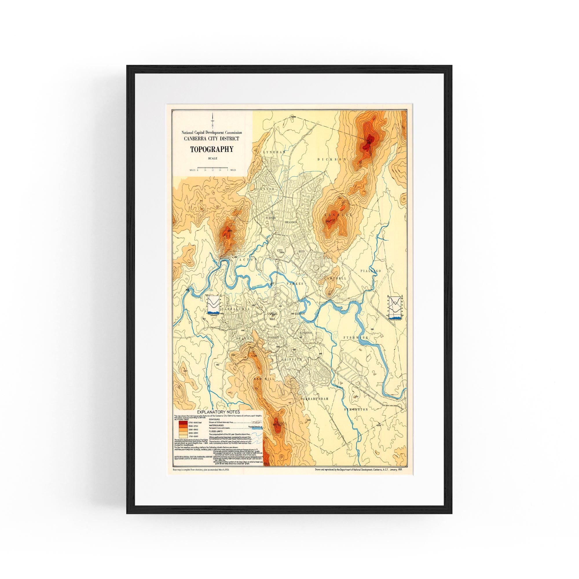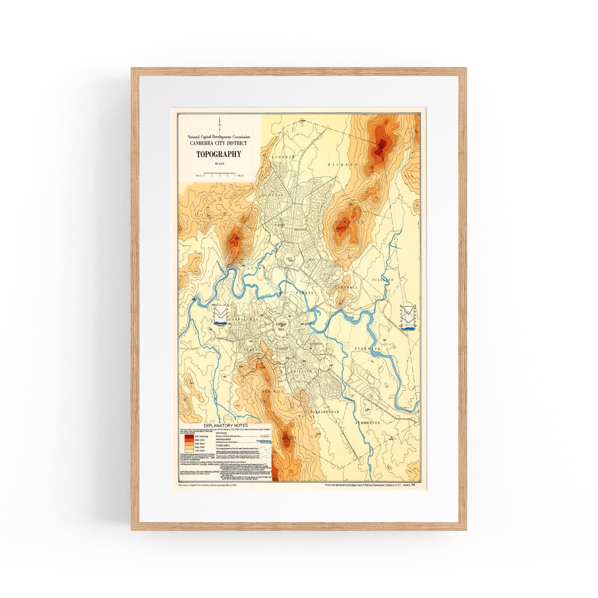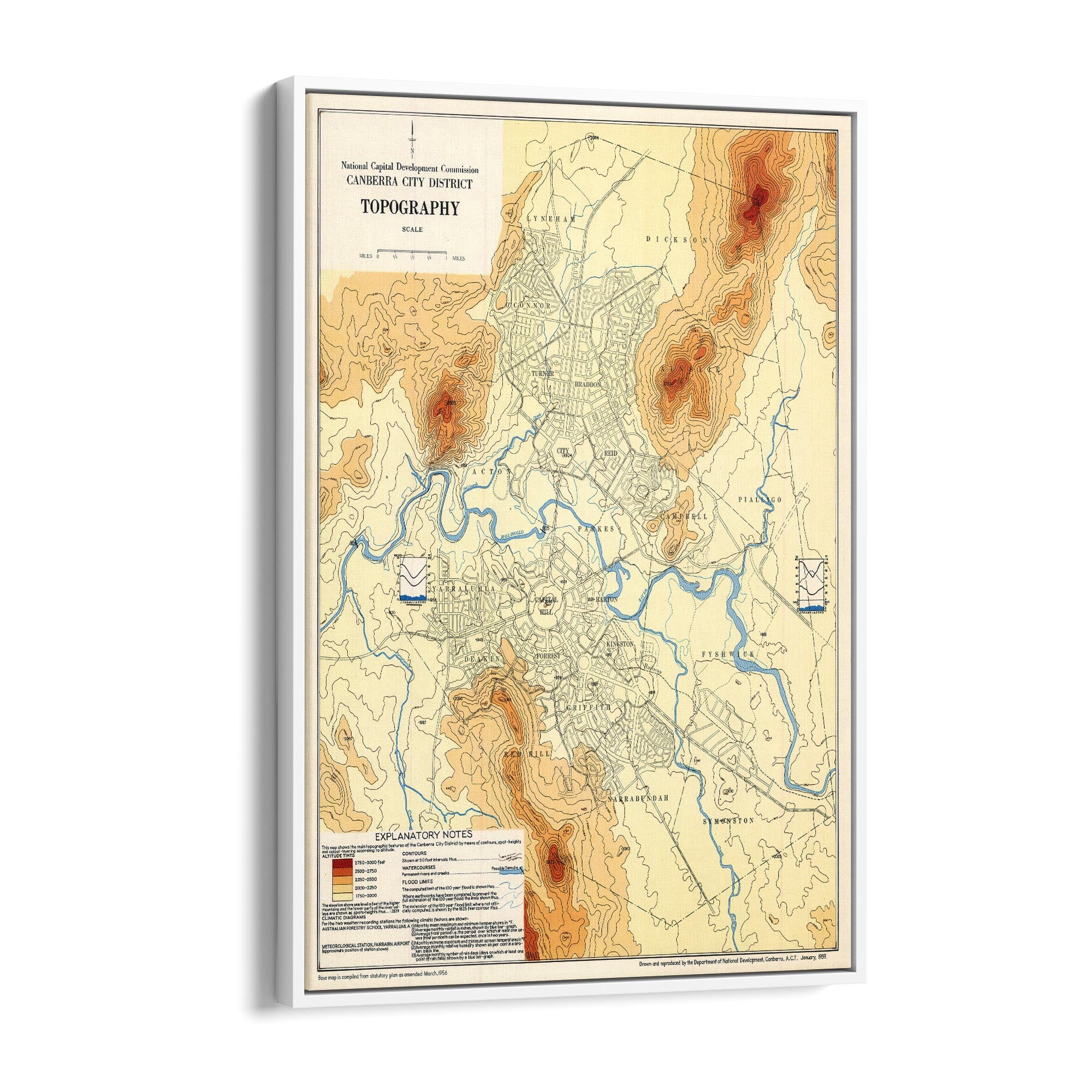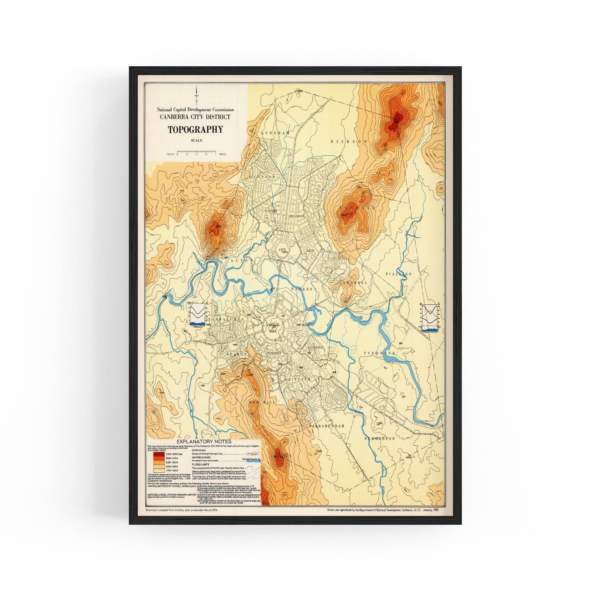 1956 Topographical Map of Canberra City District, Australian Capital Territory