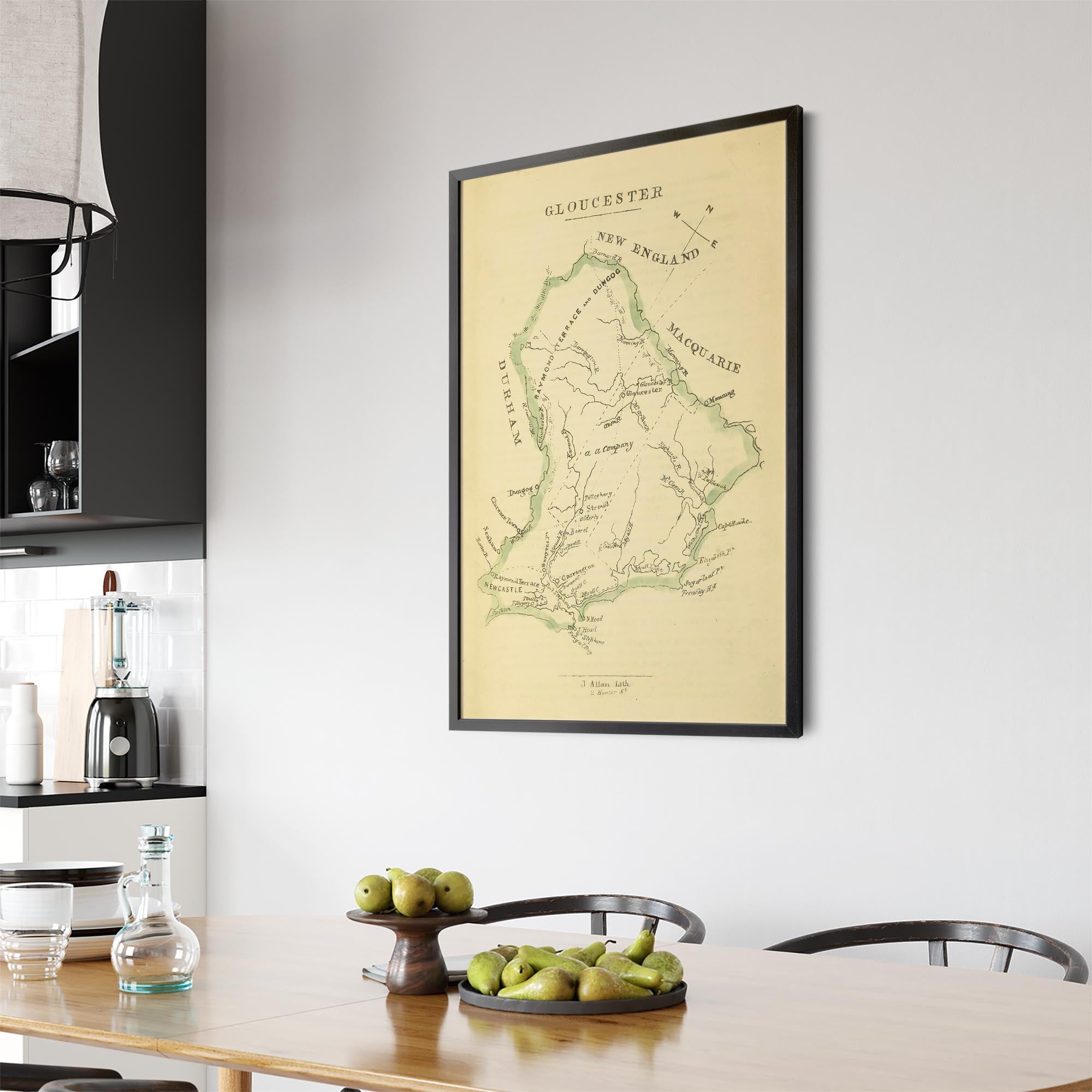 Recently moving to Harcourt and being interested in the history of the area, it seemed fitting to purchase a vintage map of the area which is displayed on our kitchen wall for us to study easily, identifying the block of land we bought. Nicely framed too.